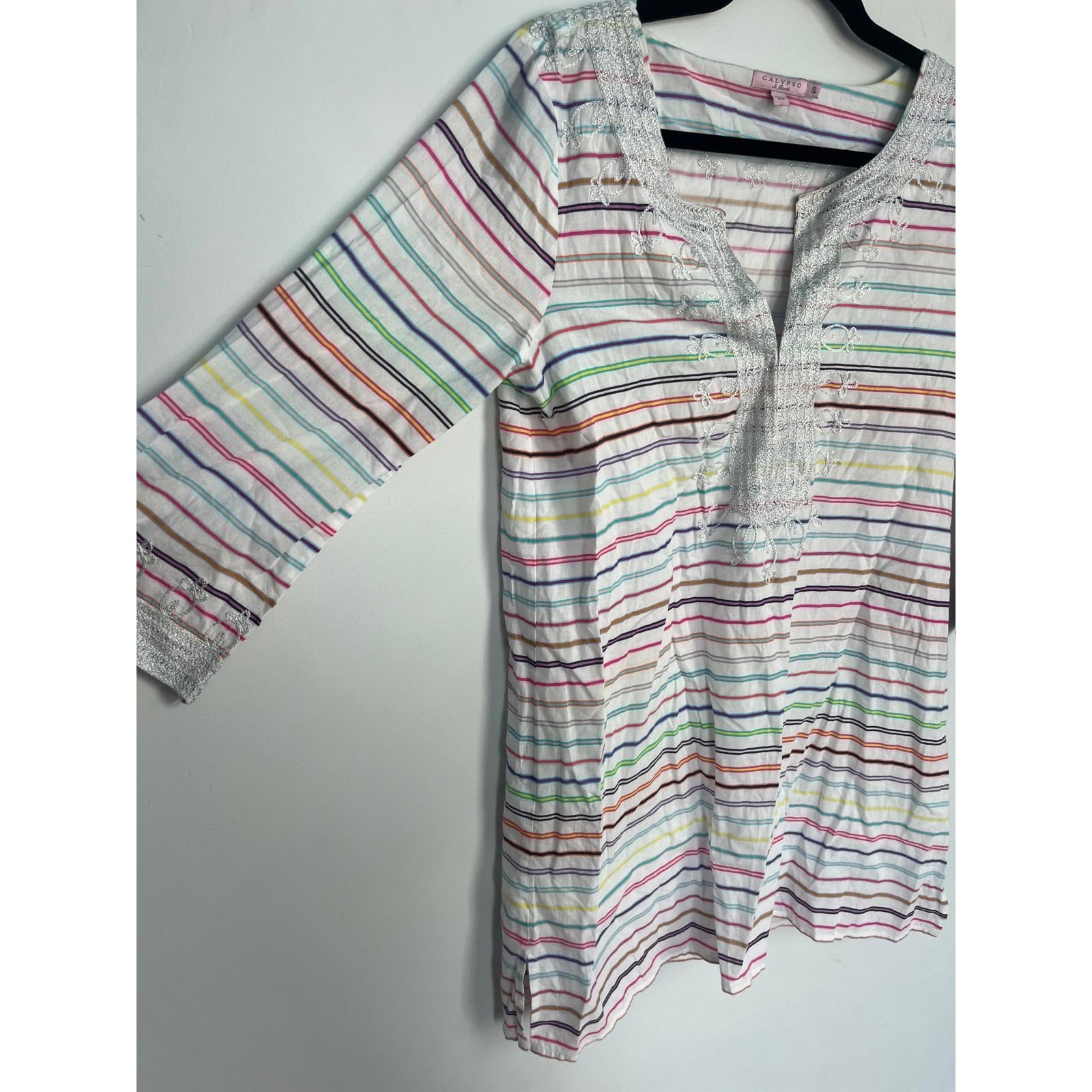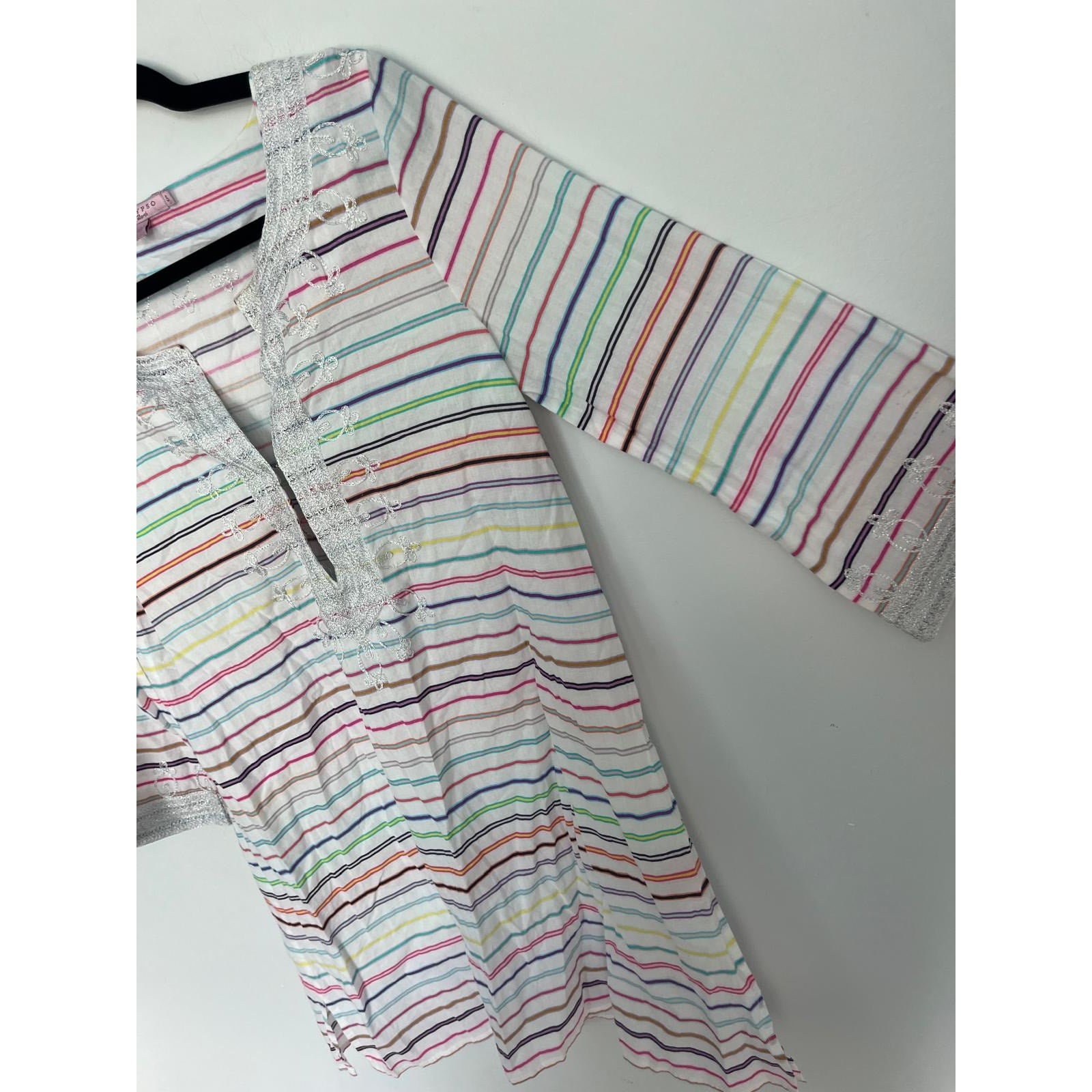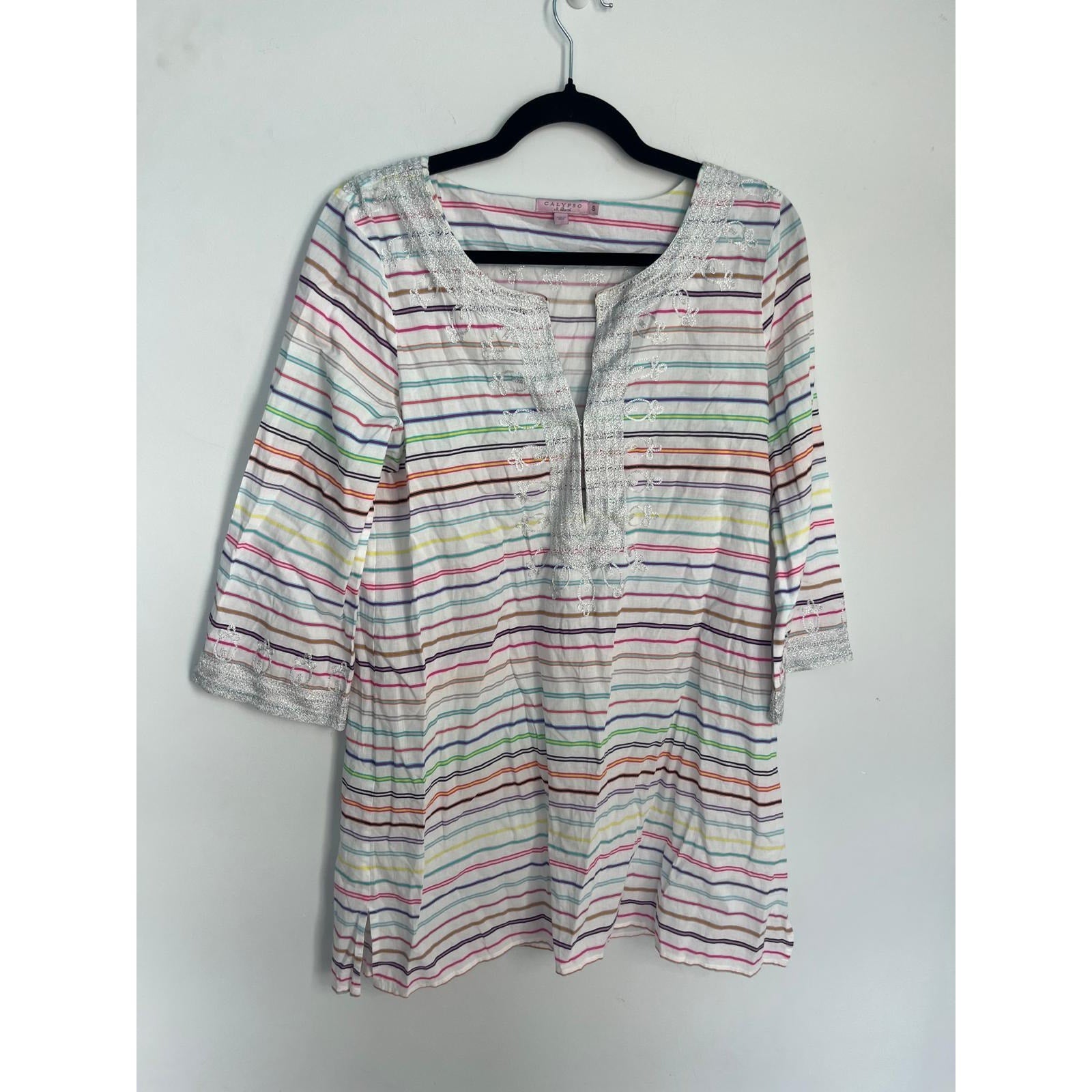 Calypso St Barth Tunic Top Women Small Striped Metallic Embroidered Boho