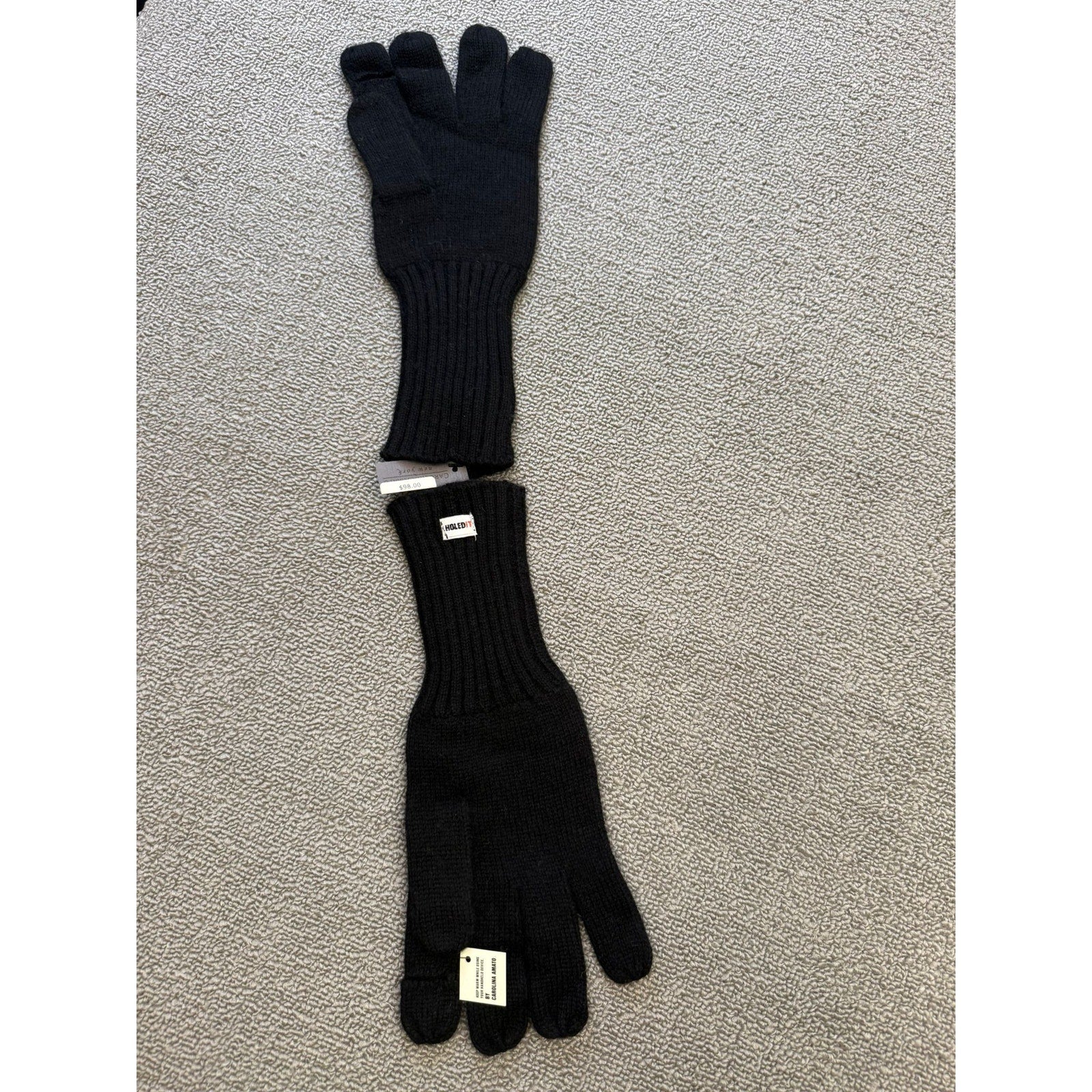 Carolina Amato Men One Size Black Holed It Cashmere Gloves