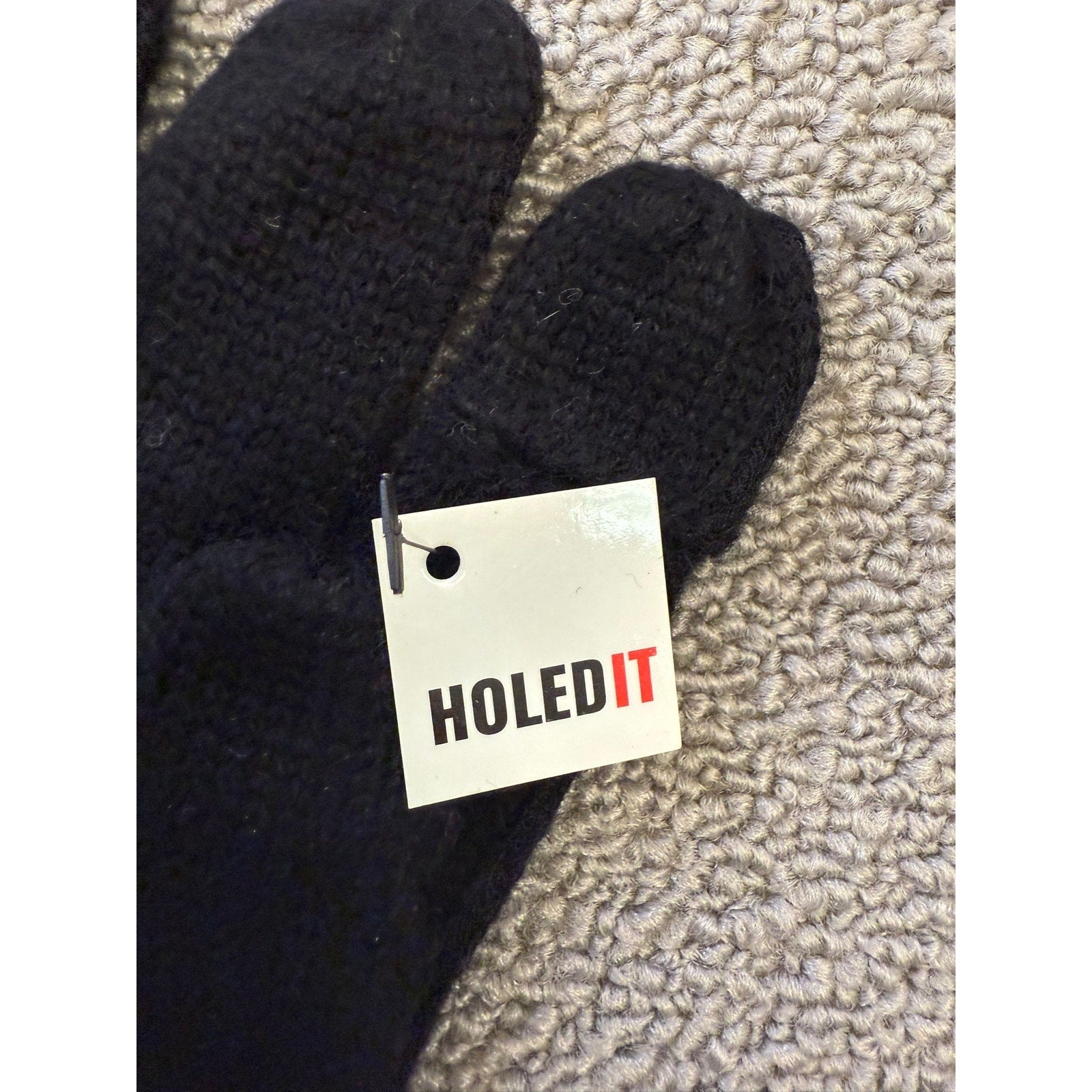 Holed It men’s classic black knit gloves made from soft cashmere. Full-finger style with ribbed cuffs for a secure fit. Comfortable, warm, and versatile for cold weather. One size fits most.