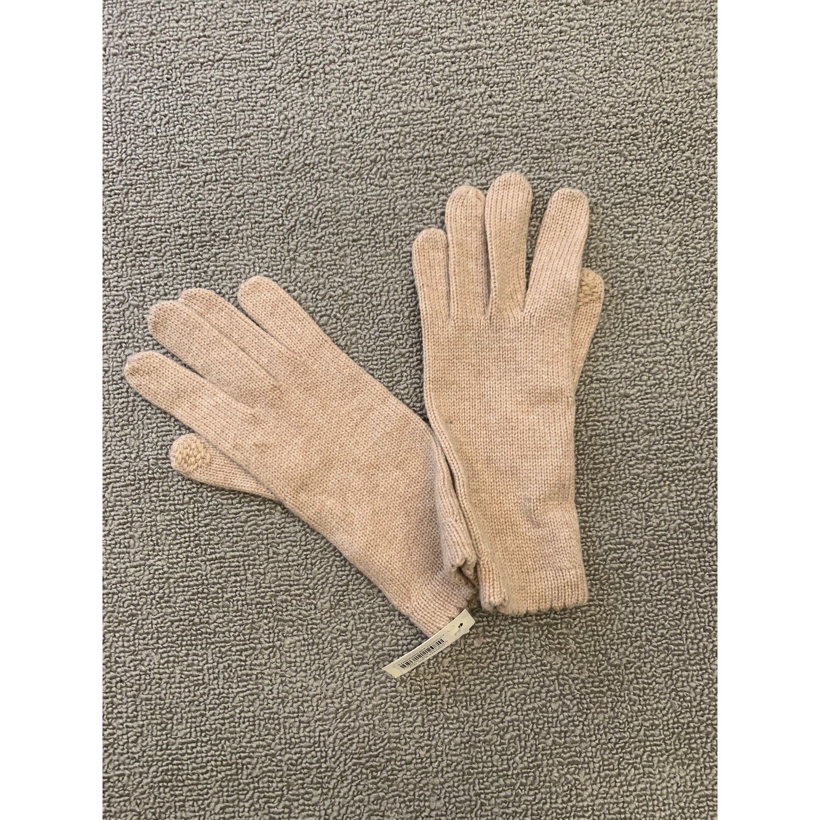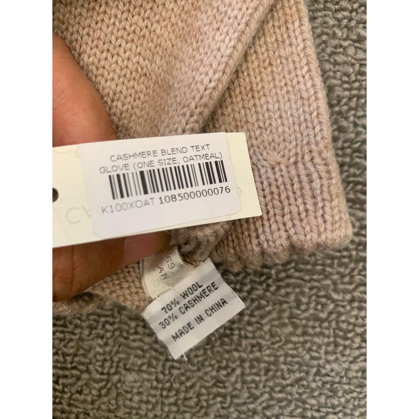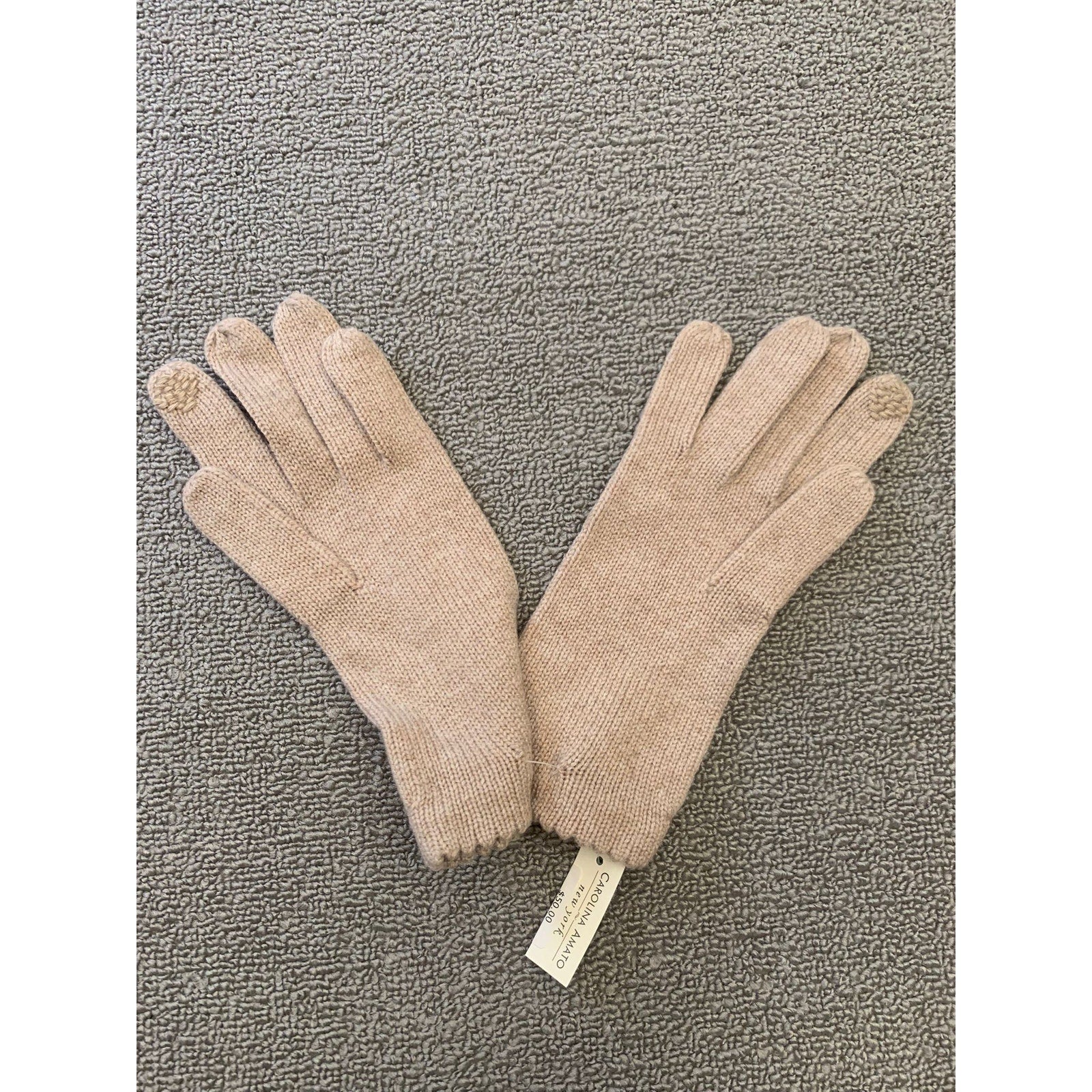 Carolina Amato Women One Size Beige Oatmeal Wool Cashmere Blend Knit Gloves