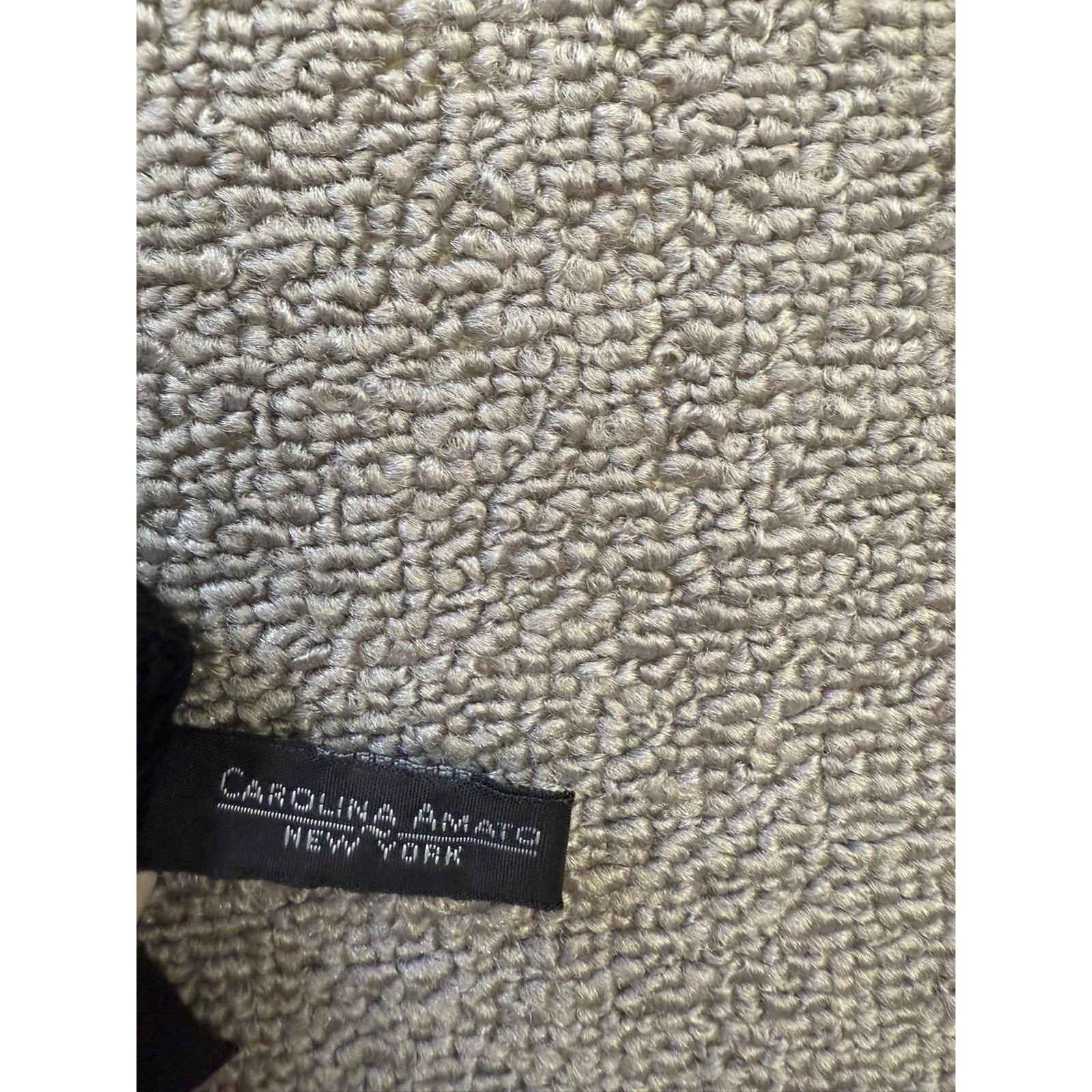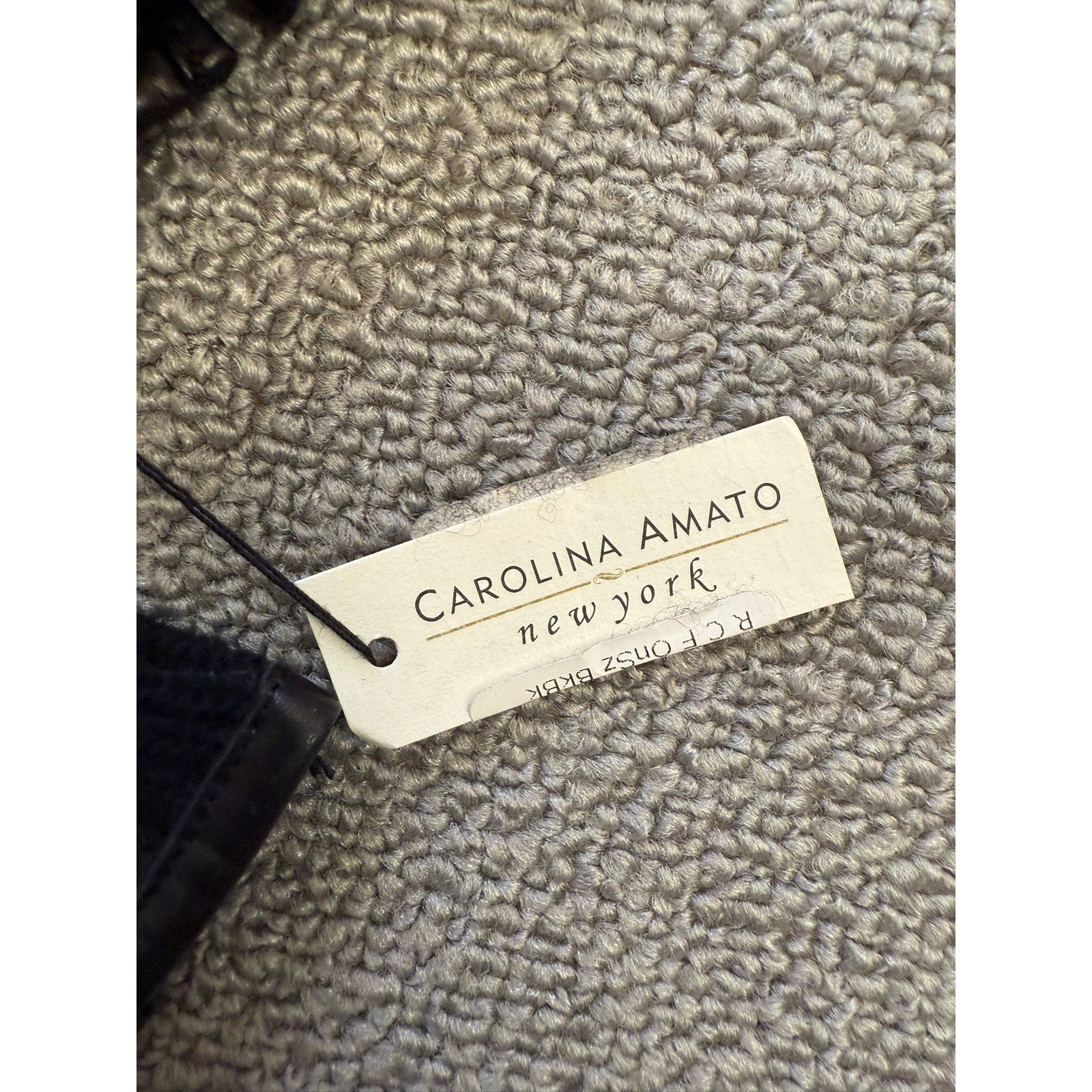 Elegant Carolina Amato New York women’s long black fingerless gloves crafted from 100% cashmere with lambskin trim. Sleek and cozy design with extended length for warmth and chic style.