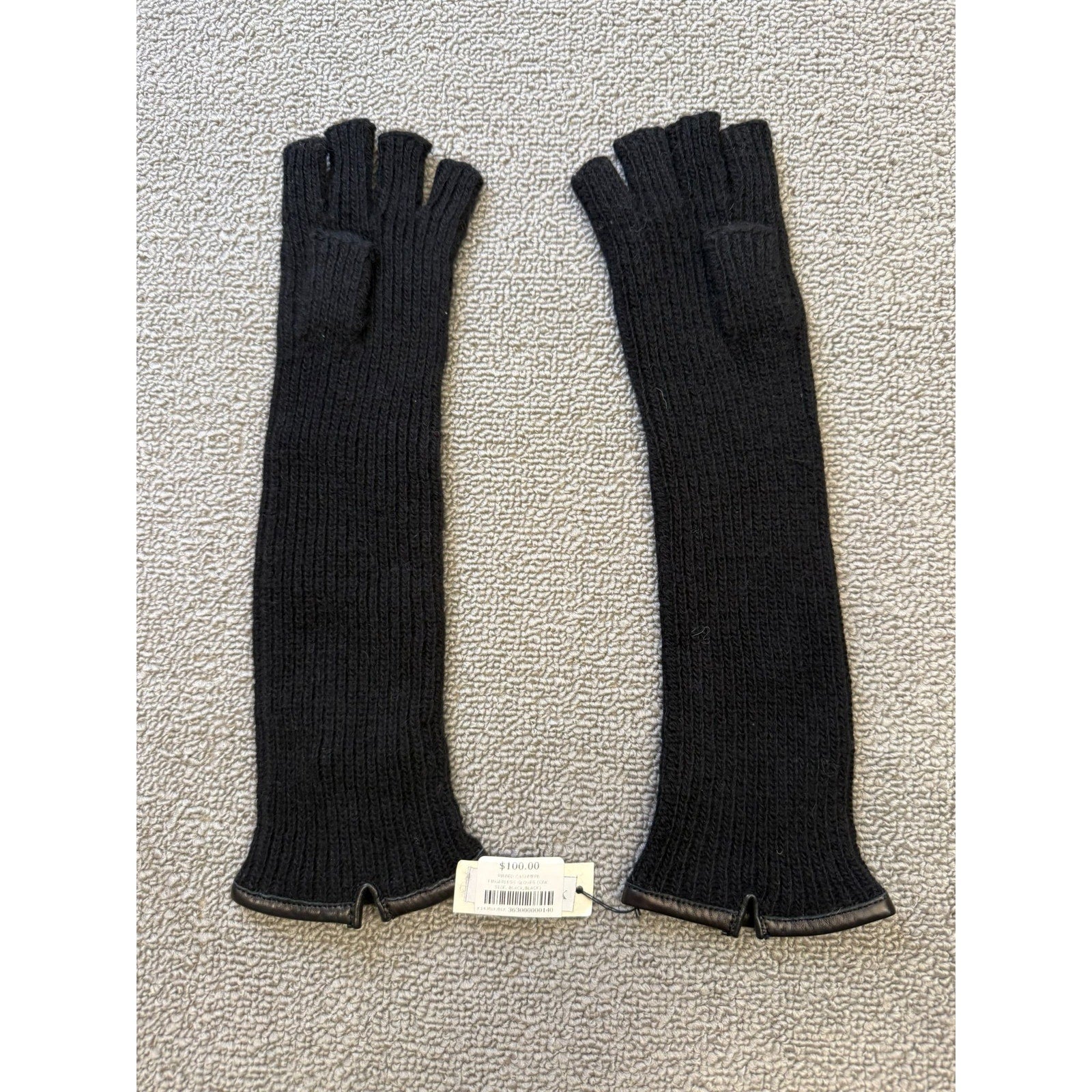 Carolina Amato Women One Size Black Cashmere Lambskin Fingerless Gloves