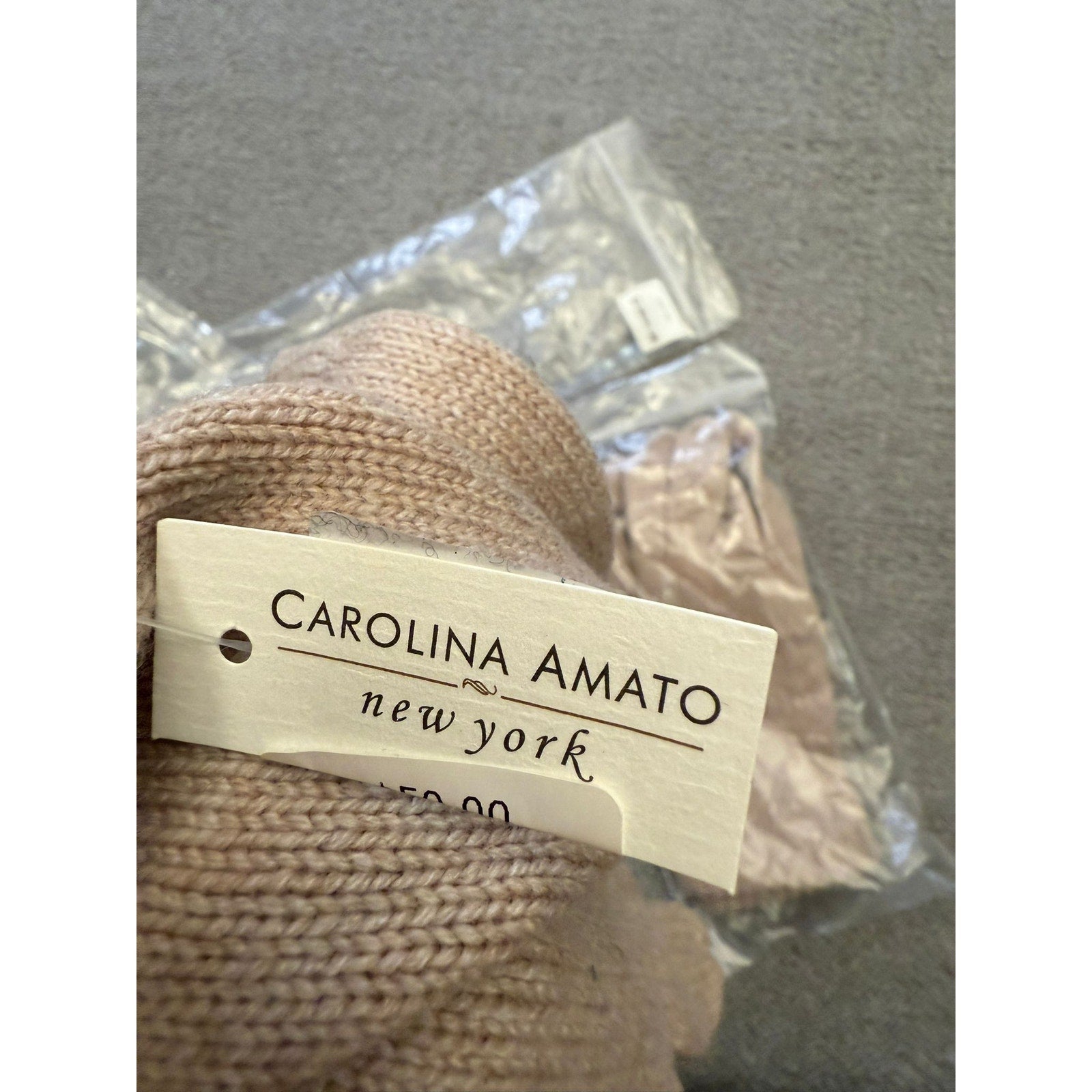 Carolina Amato New York women’s knit gloves in neutral beige. Crafted from cashmere, offering lightweight warmth and a soft luxurious feel. Elegant minimalist design, perfect for cold-weather wear. One size fits most.