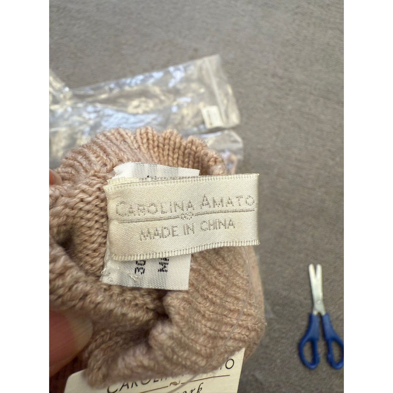 Carolina Amato Women's One Size Beige Wool Cashmere Blend Knit Gloves NWT
