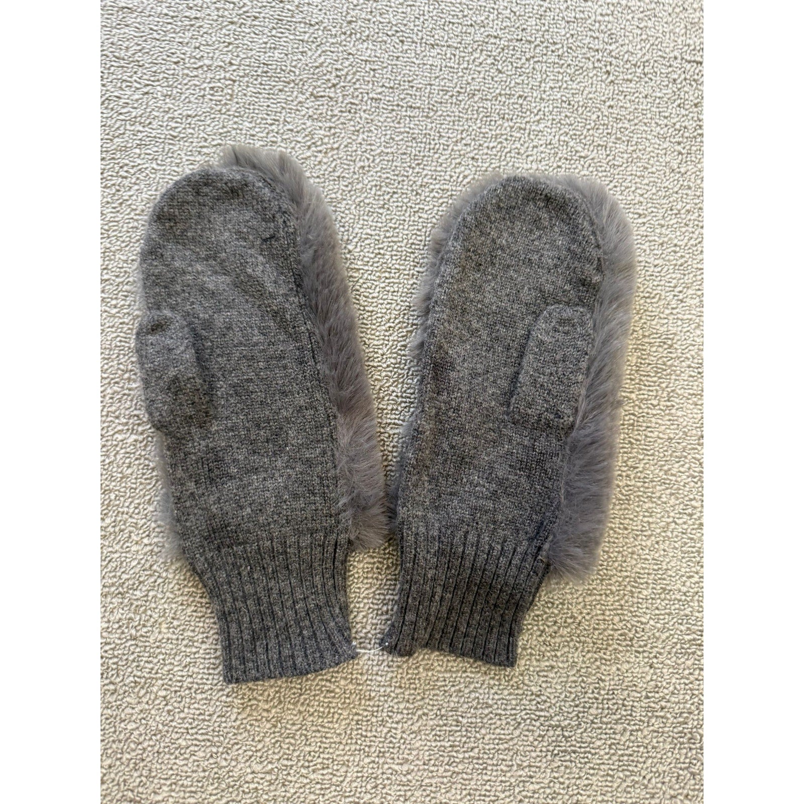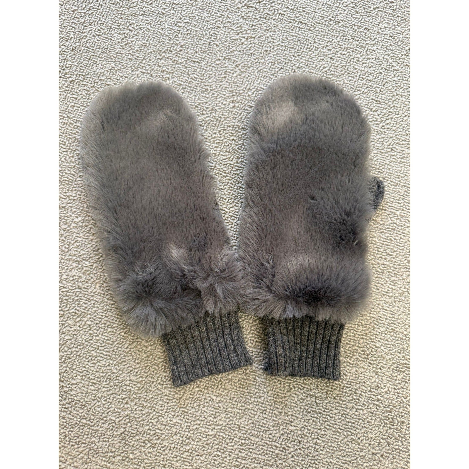 Carolina Amato Women's One Size Gray Faux Fur Wool Cashmere Blend Mittens