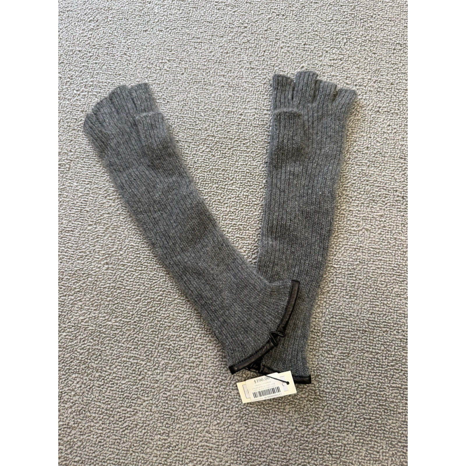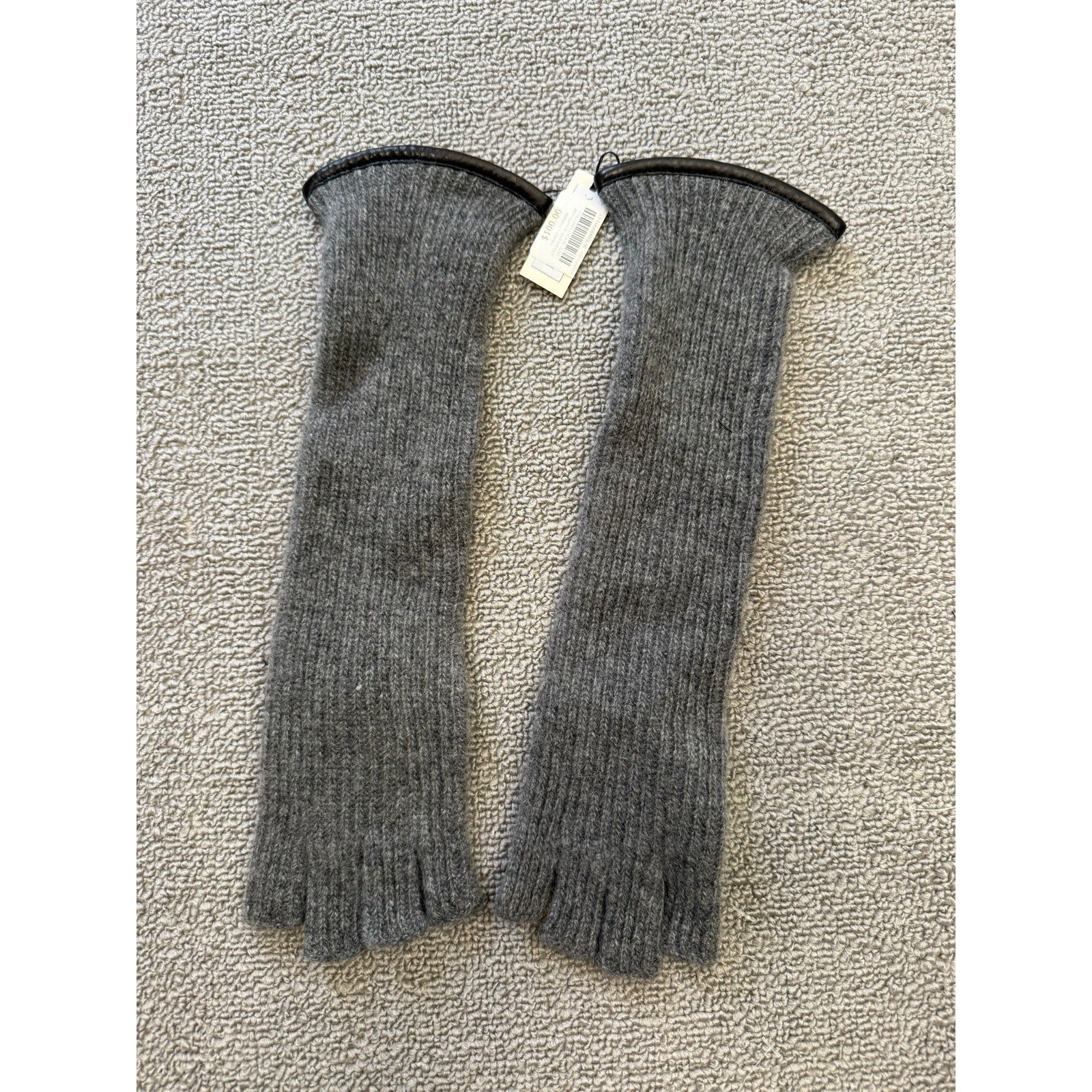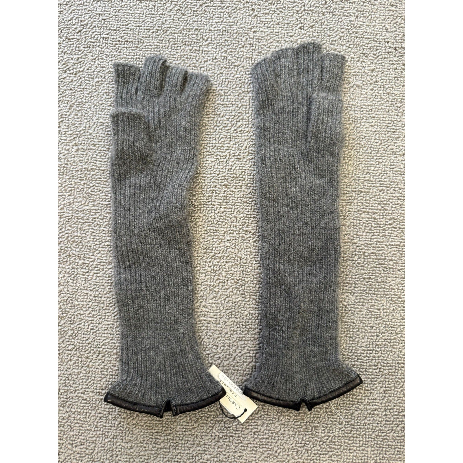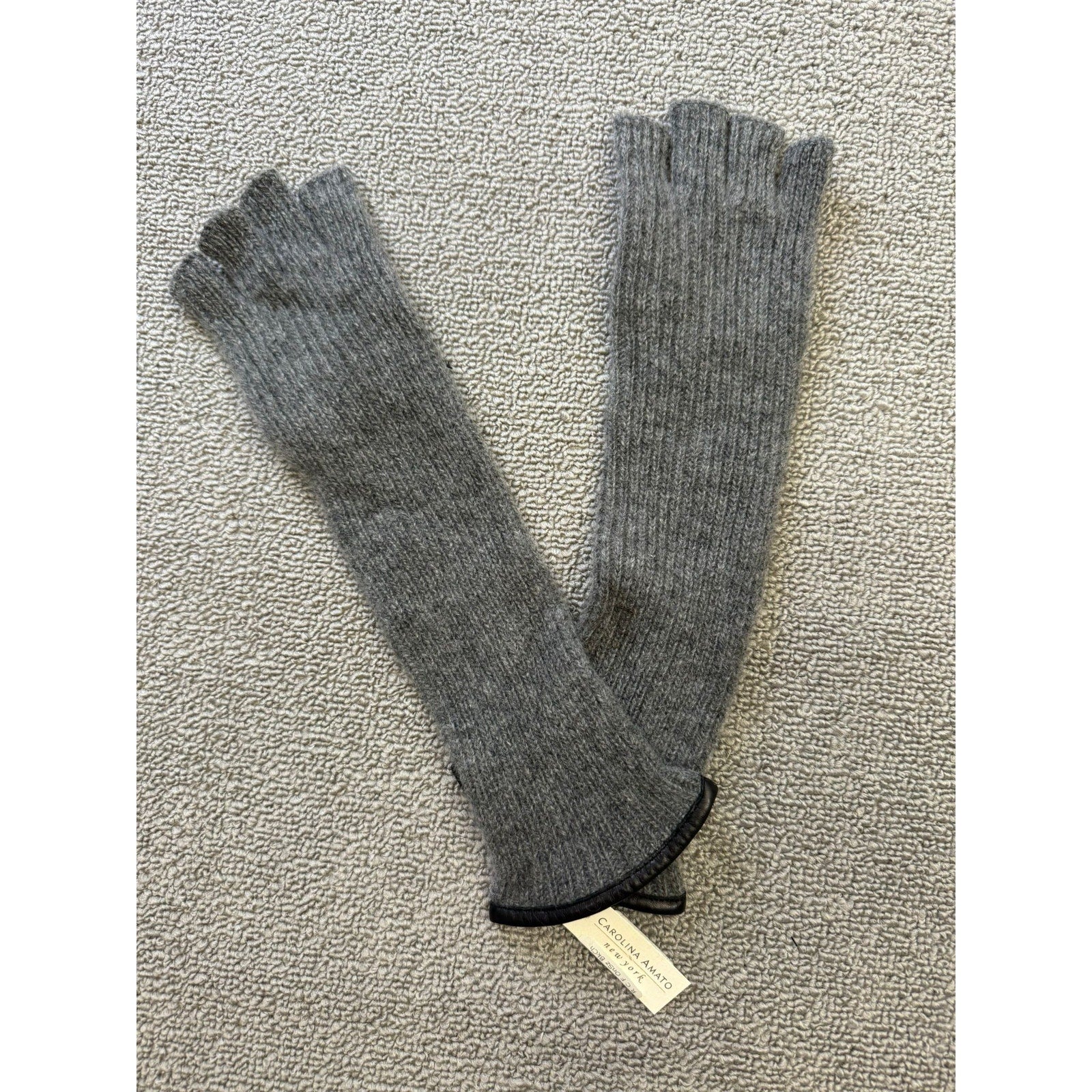 Carolina Amato Women's One Size Long Ribbed Cashmere Fingerless Gloves NWT