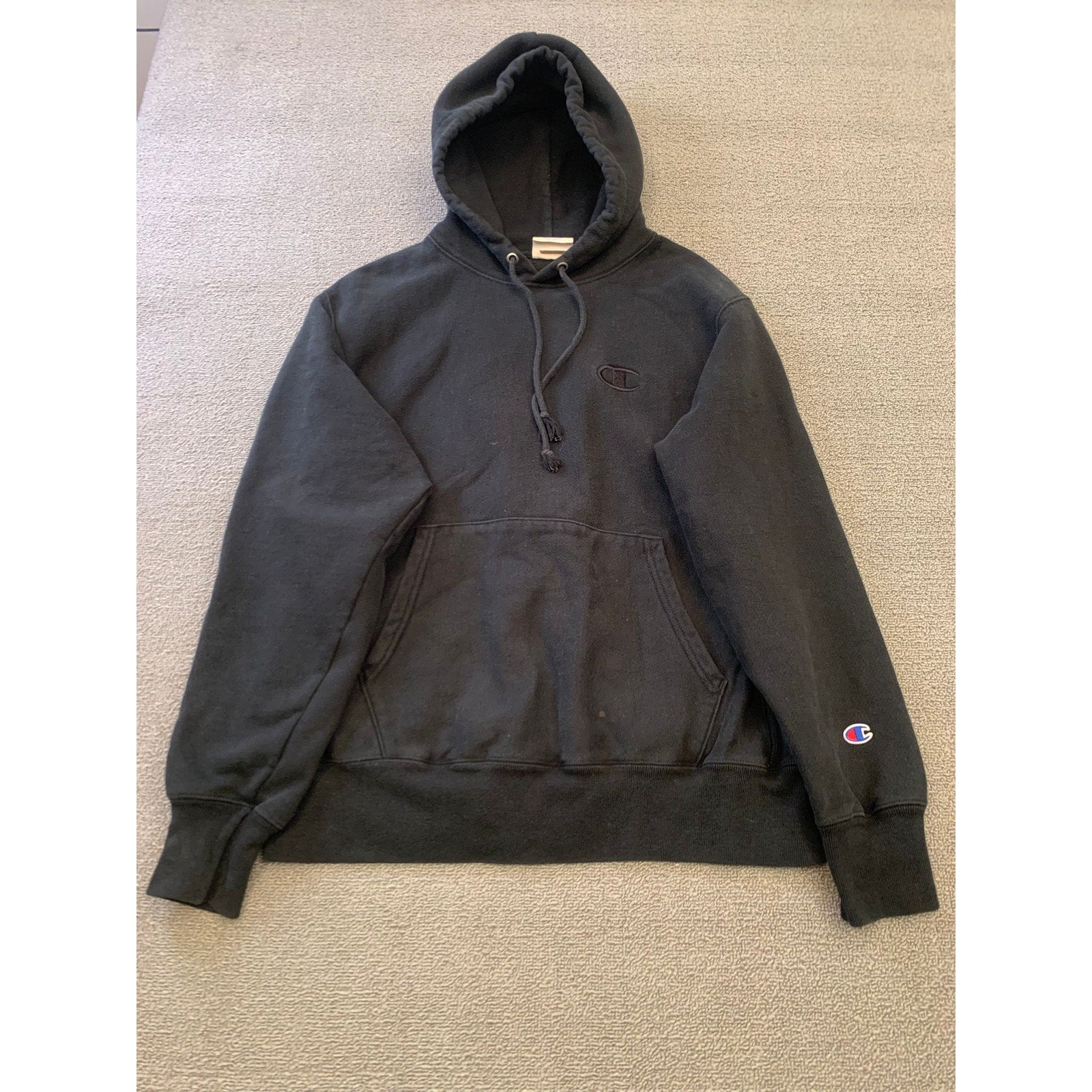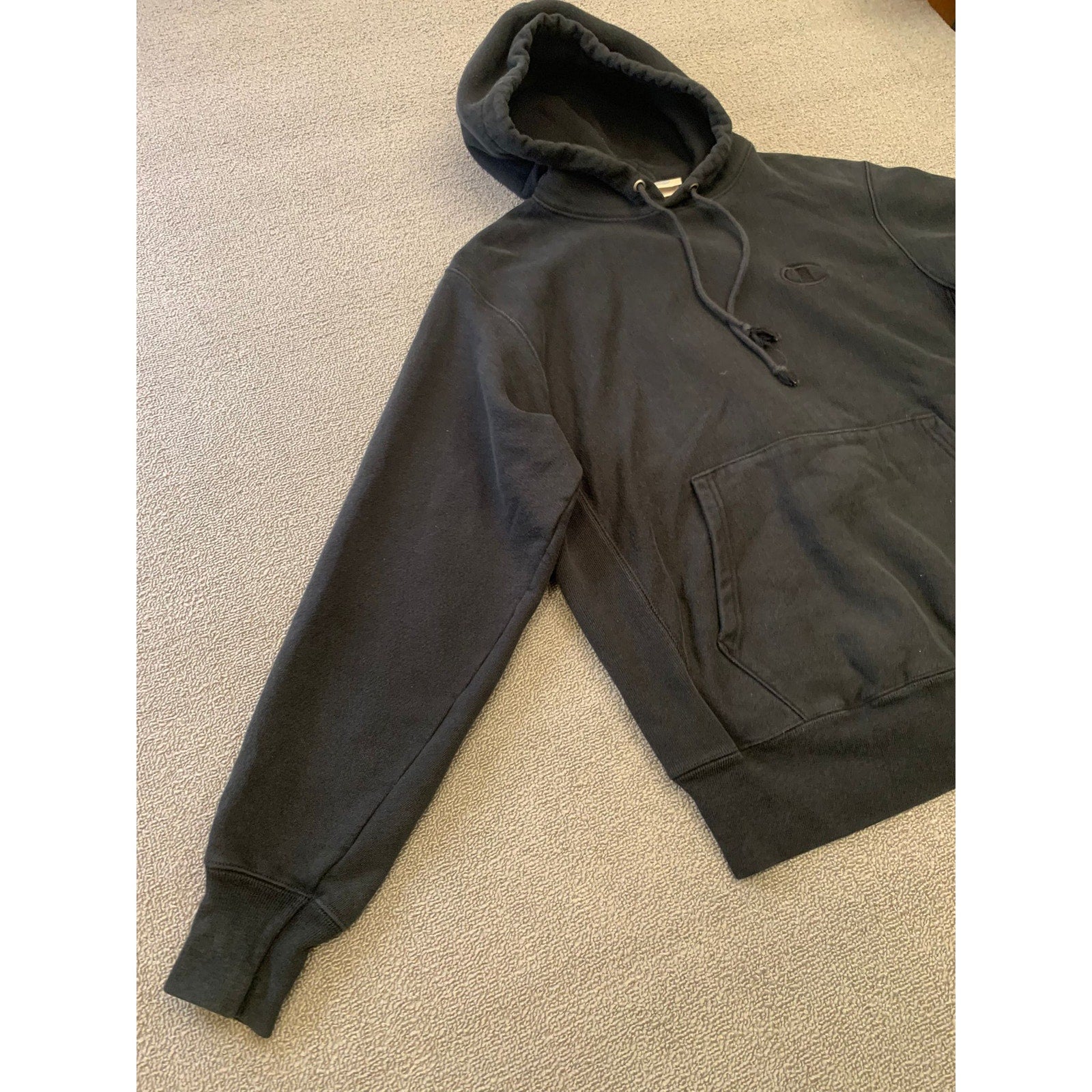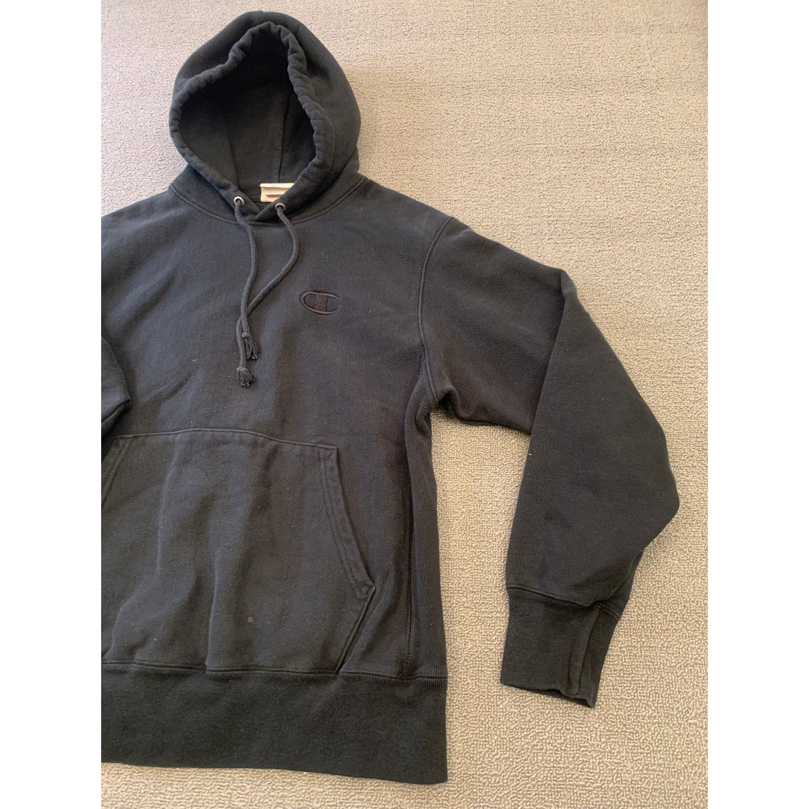Champion Men Medium Black Reverse Weave Hoodie Sweatshirt