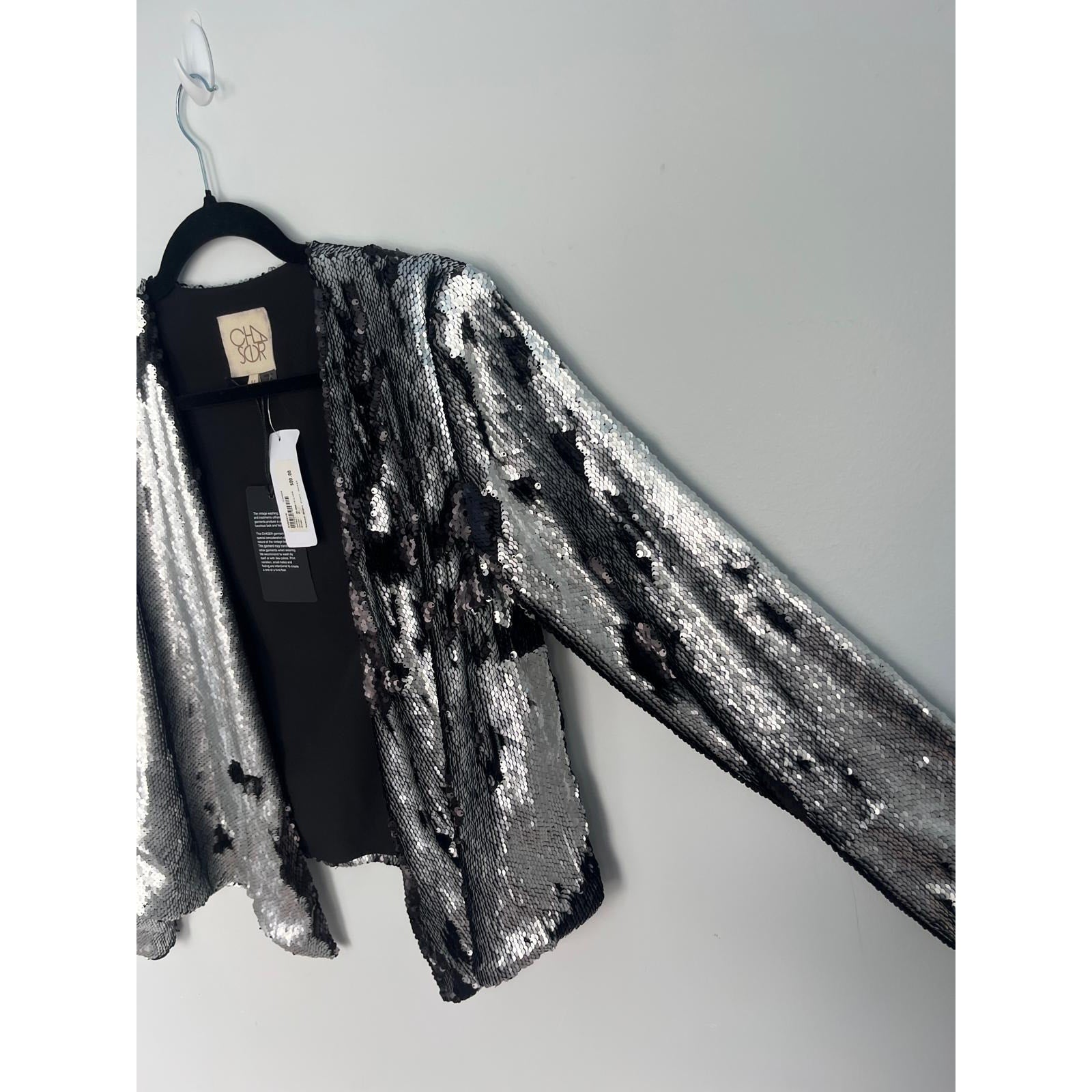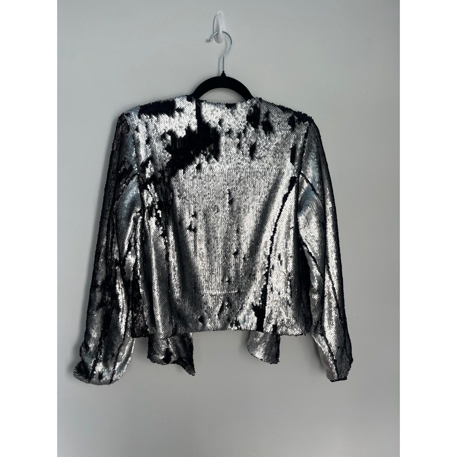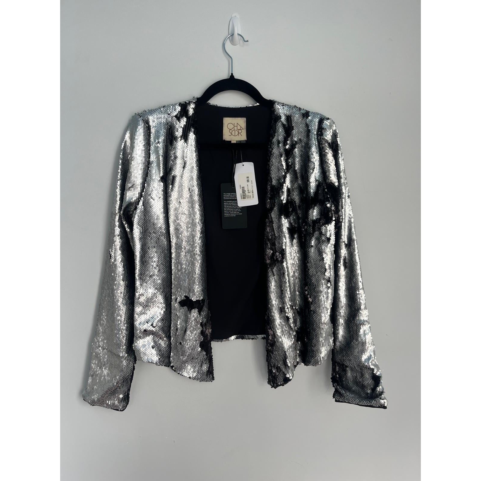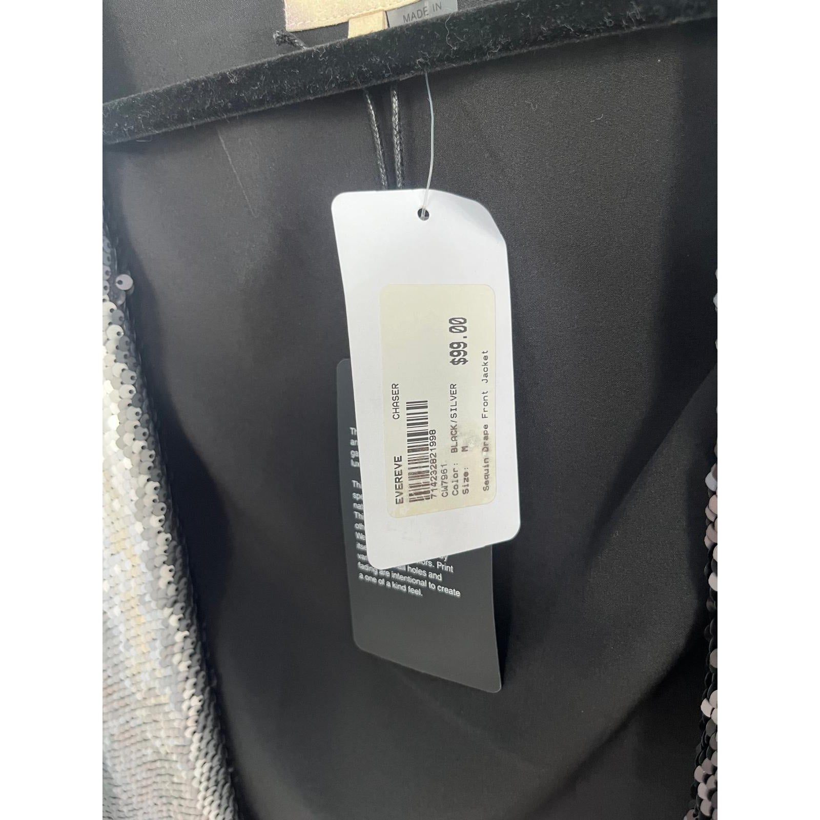 Chaser Sequin Jacket Women Medium Silver Black Open Front Party Blazer NWT