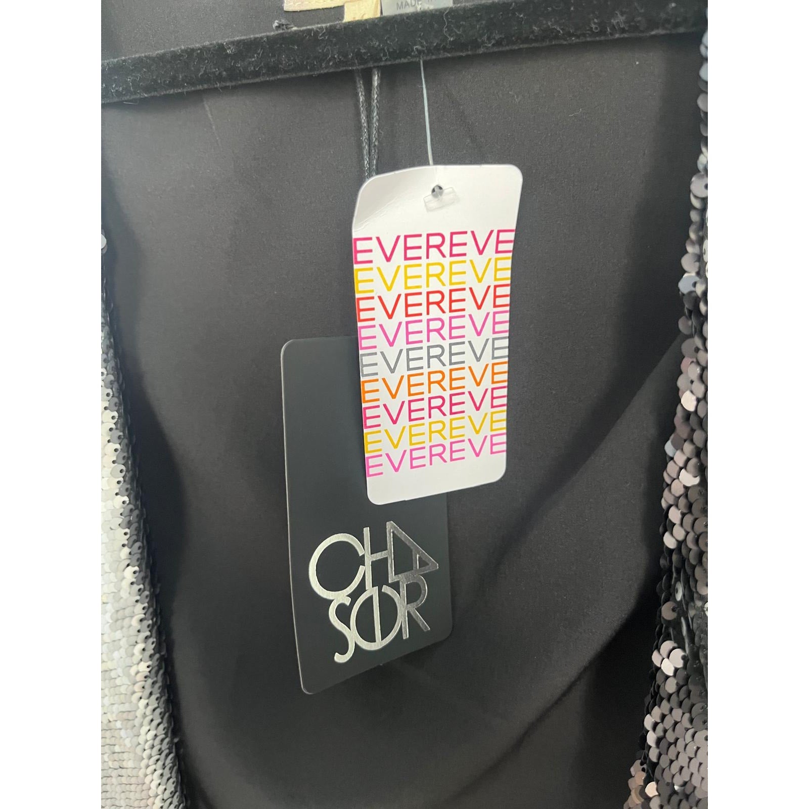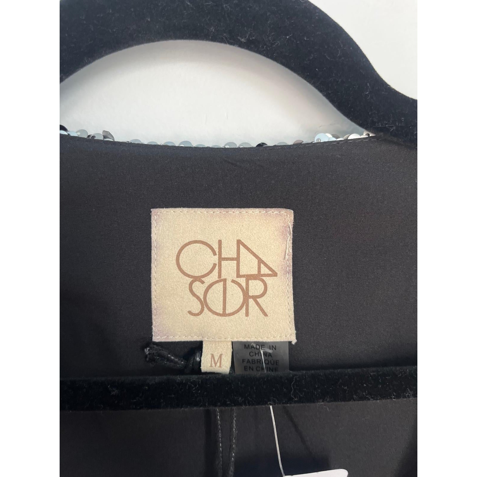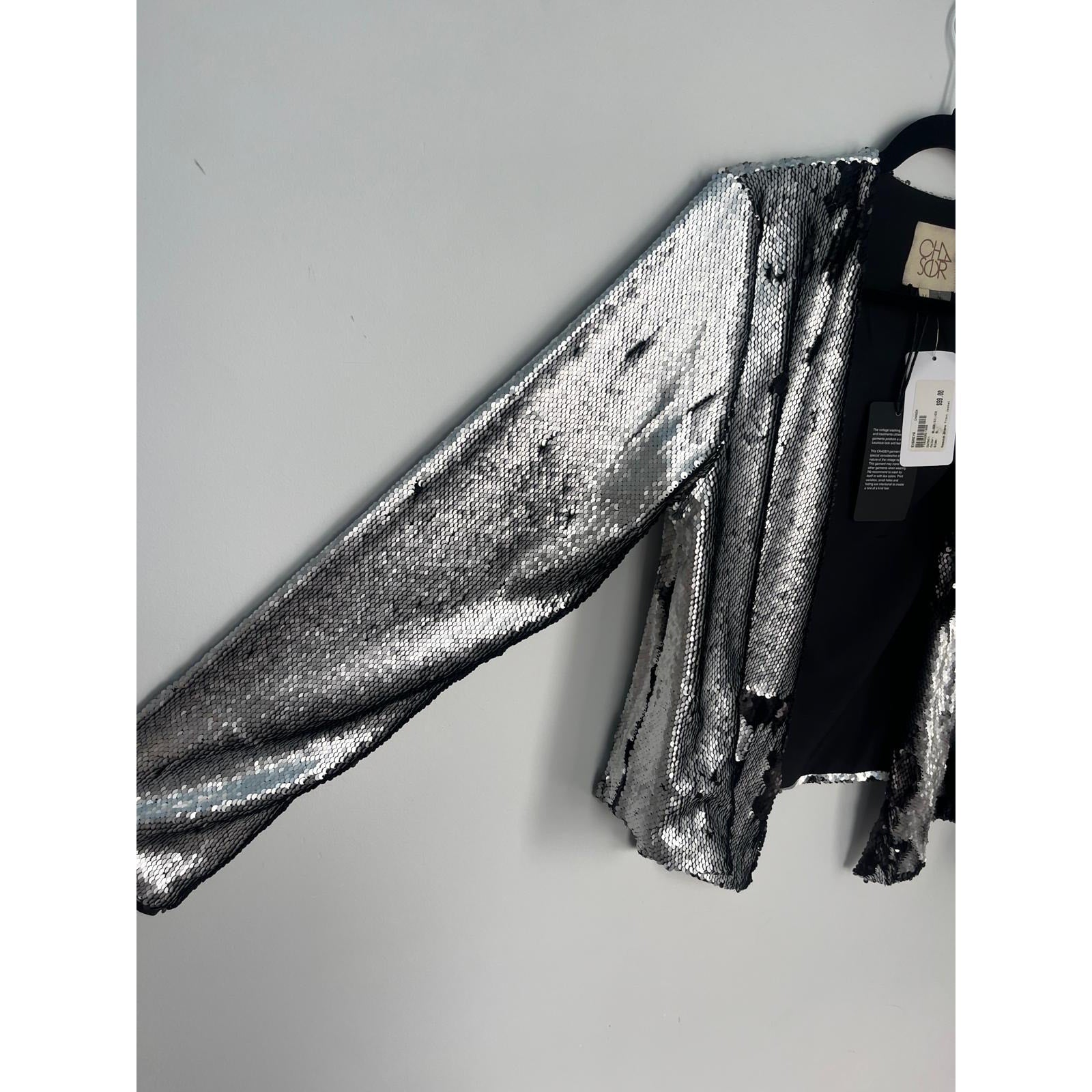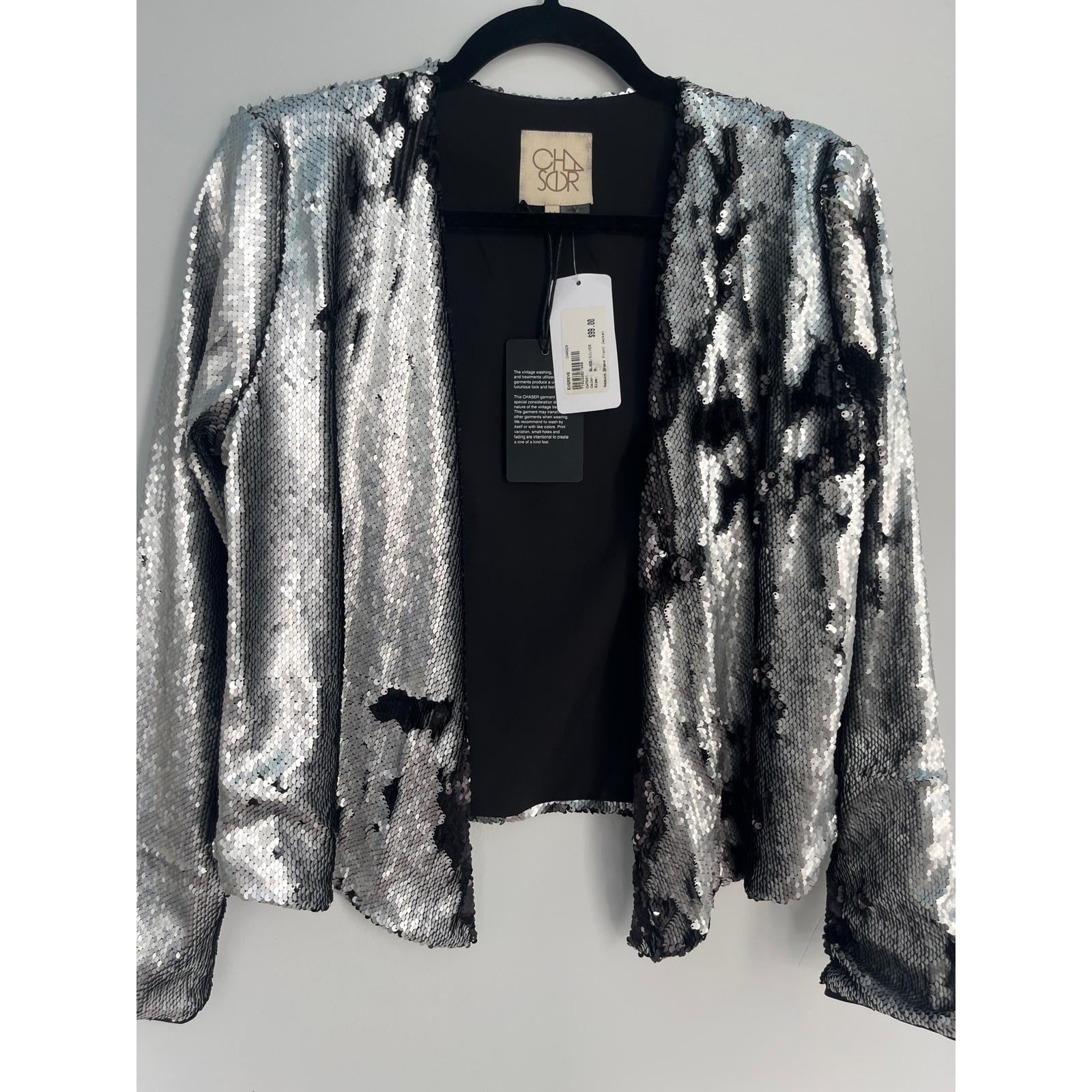 Chaser Sequin Jacket Women Medium Silver Black Open Front Party Blazer NWT