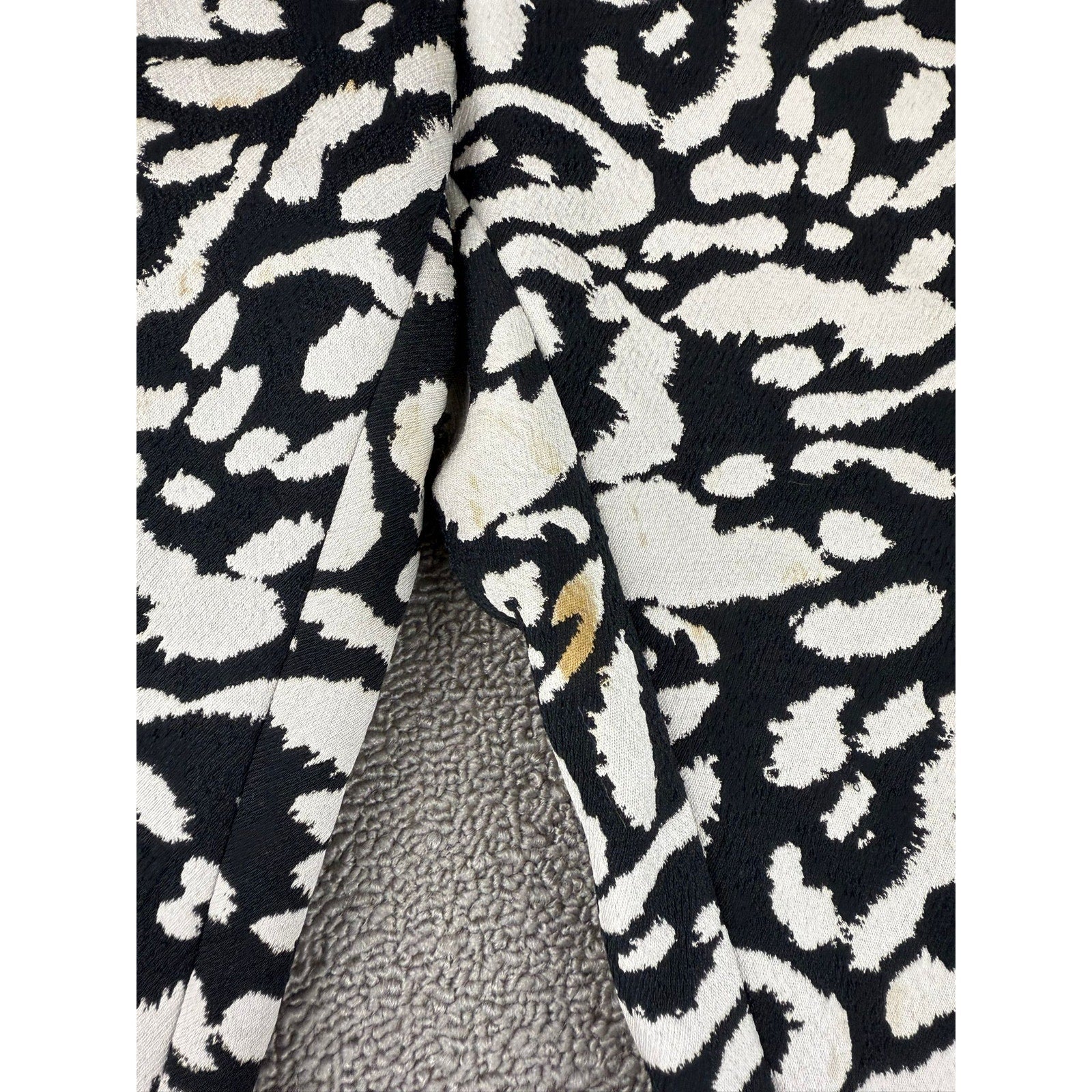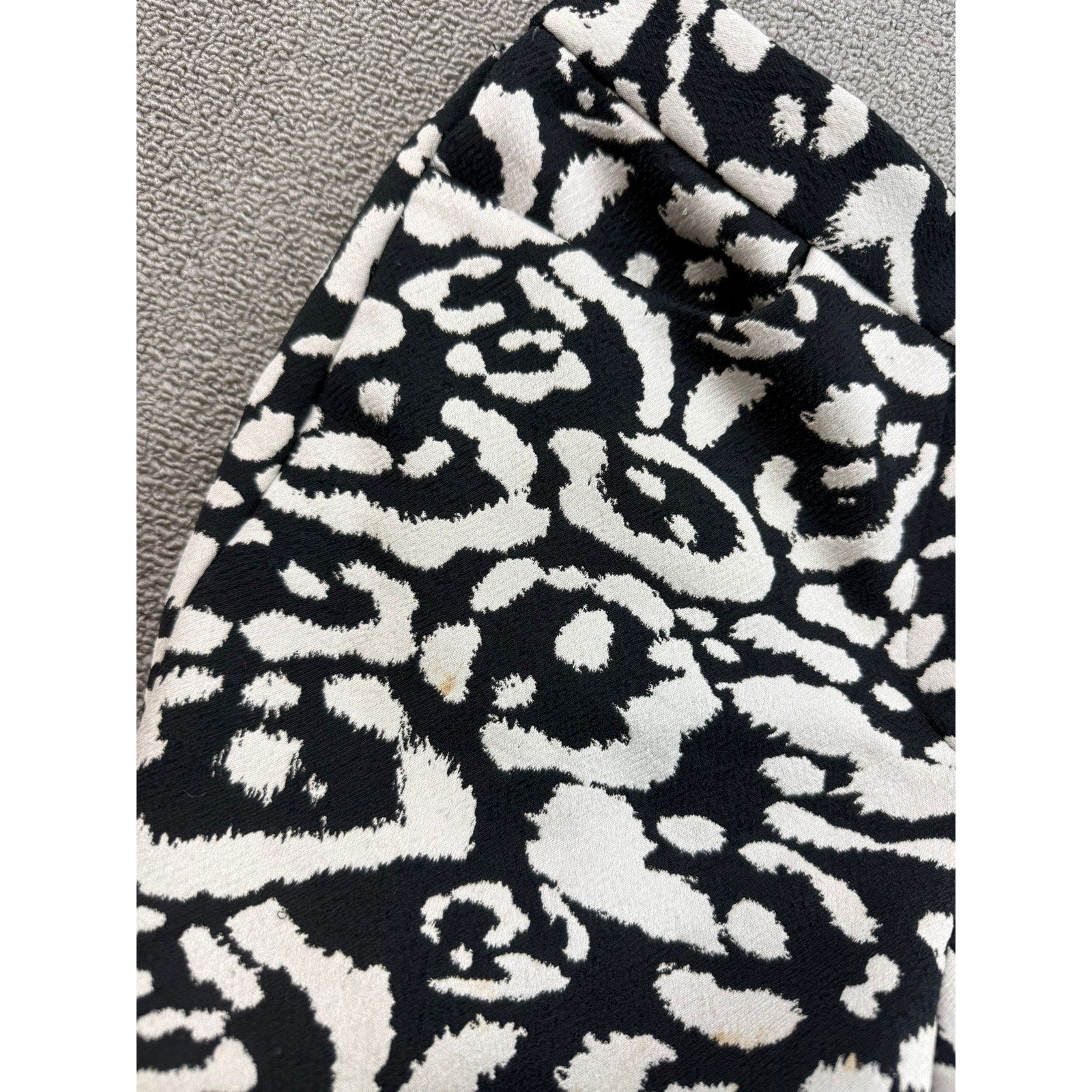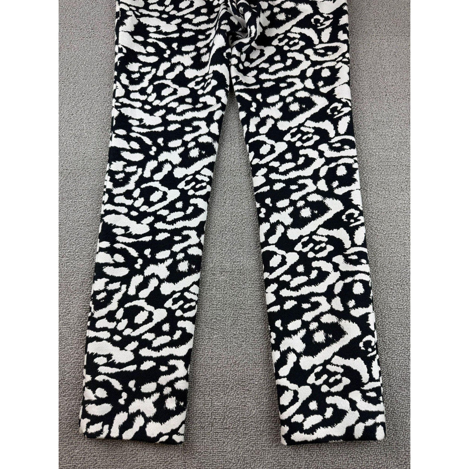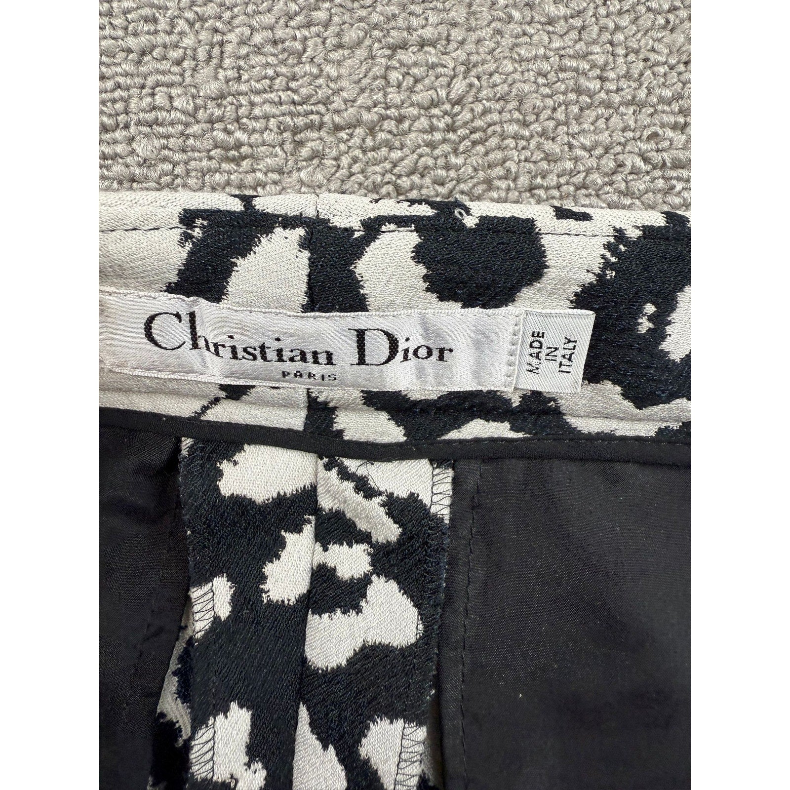 Striking Christian Dior trousers in eye-catching black and white animal print knit fabric, made in Italy. These pants feature a slim, straight-leg silhouette, flat front, and a luxurious jacquard knit texture—perfect for vintage couture stylings or bold fashion statements.