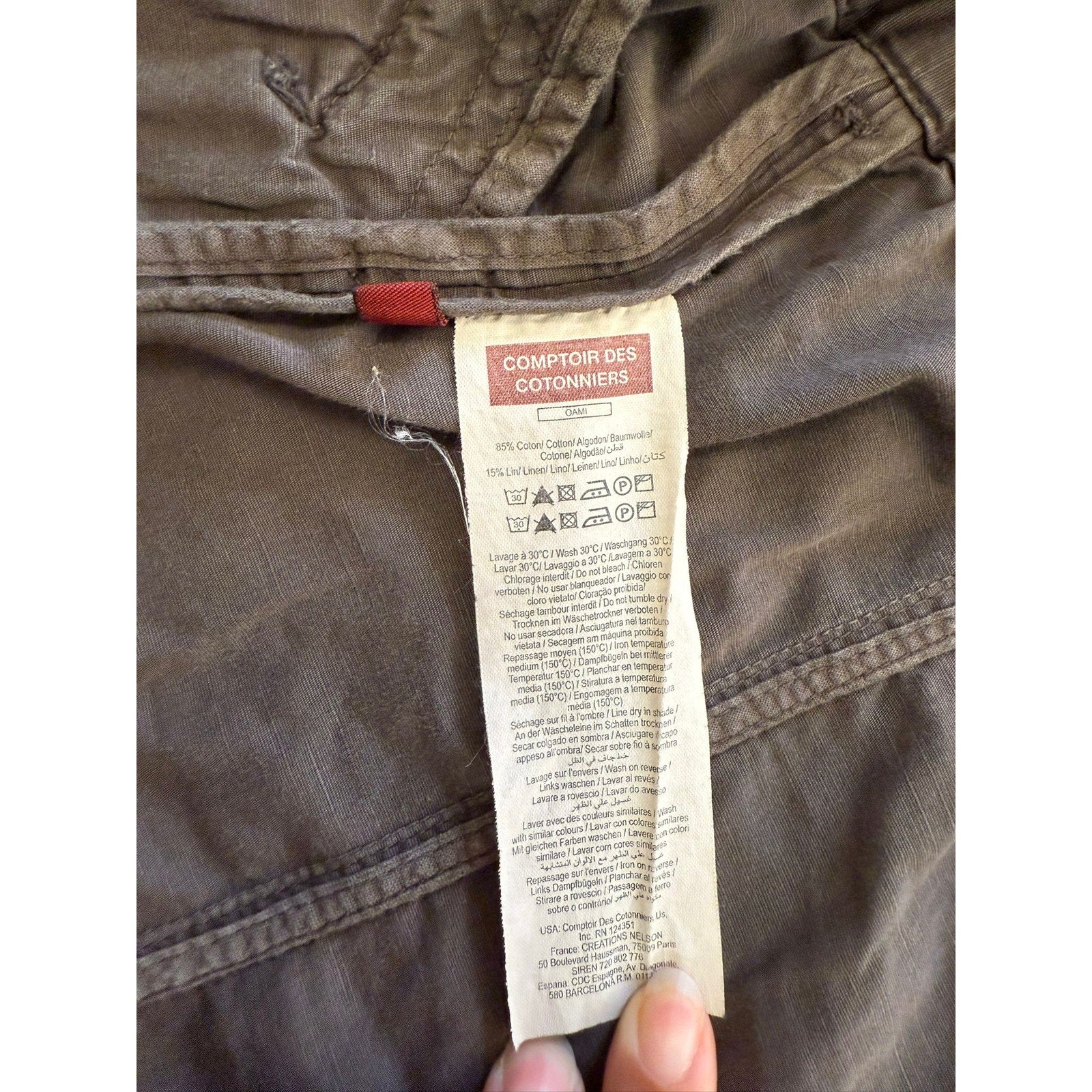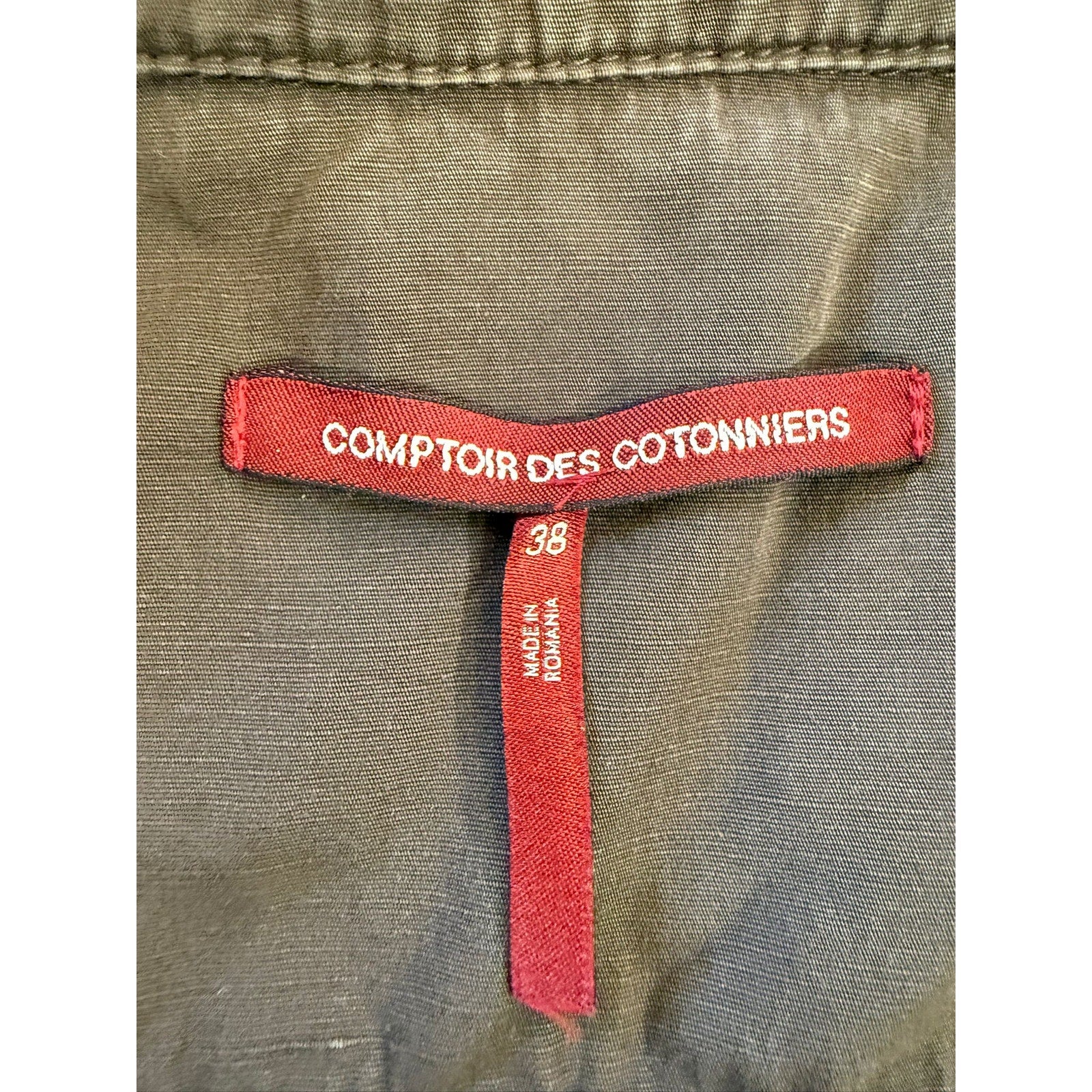 Effortless Comptoir des Cotonniers utility-style field jacket in brown cotton blend with flap pockets, drawstring/elasticated waist, epaulets, and full-length sleeves—classic French contemporary style for transitional seasons.