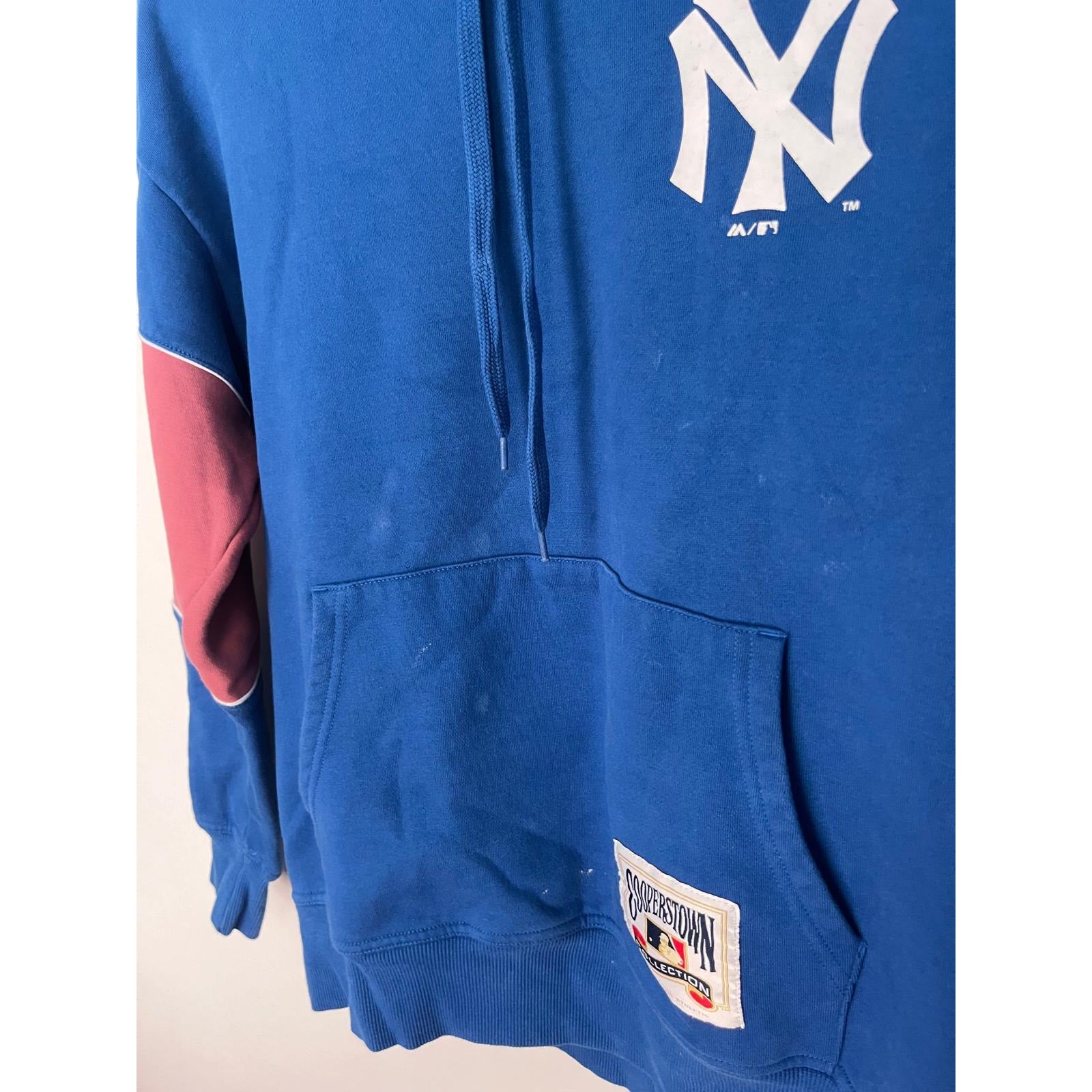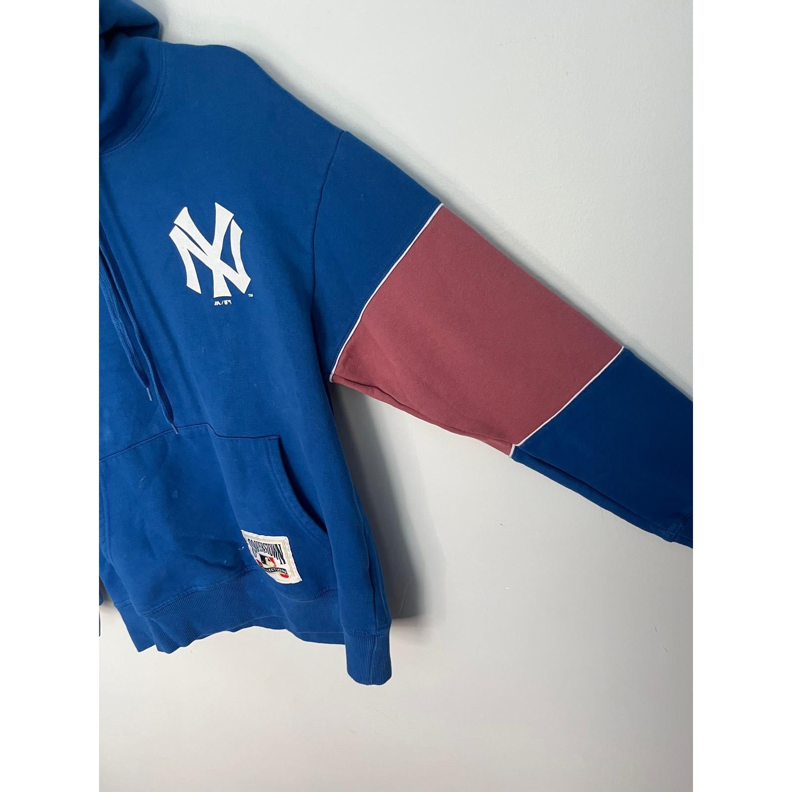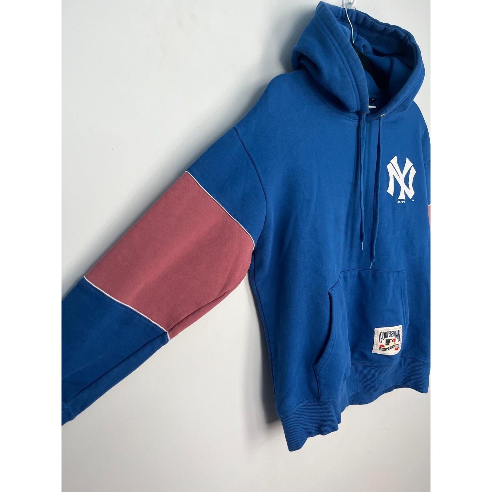 Cooperstown Collection Yankees Hoodie Women M Blue Pink Colorblock MLB Pullover