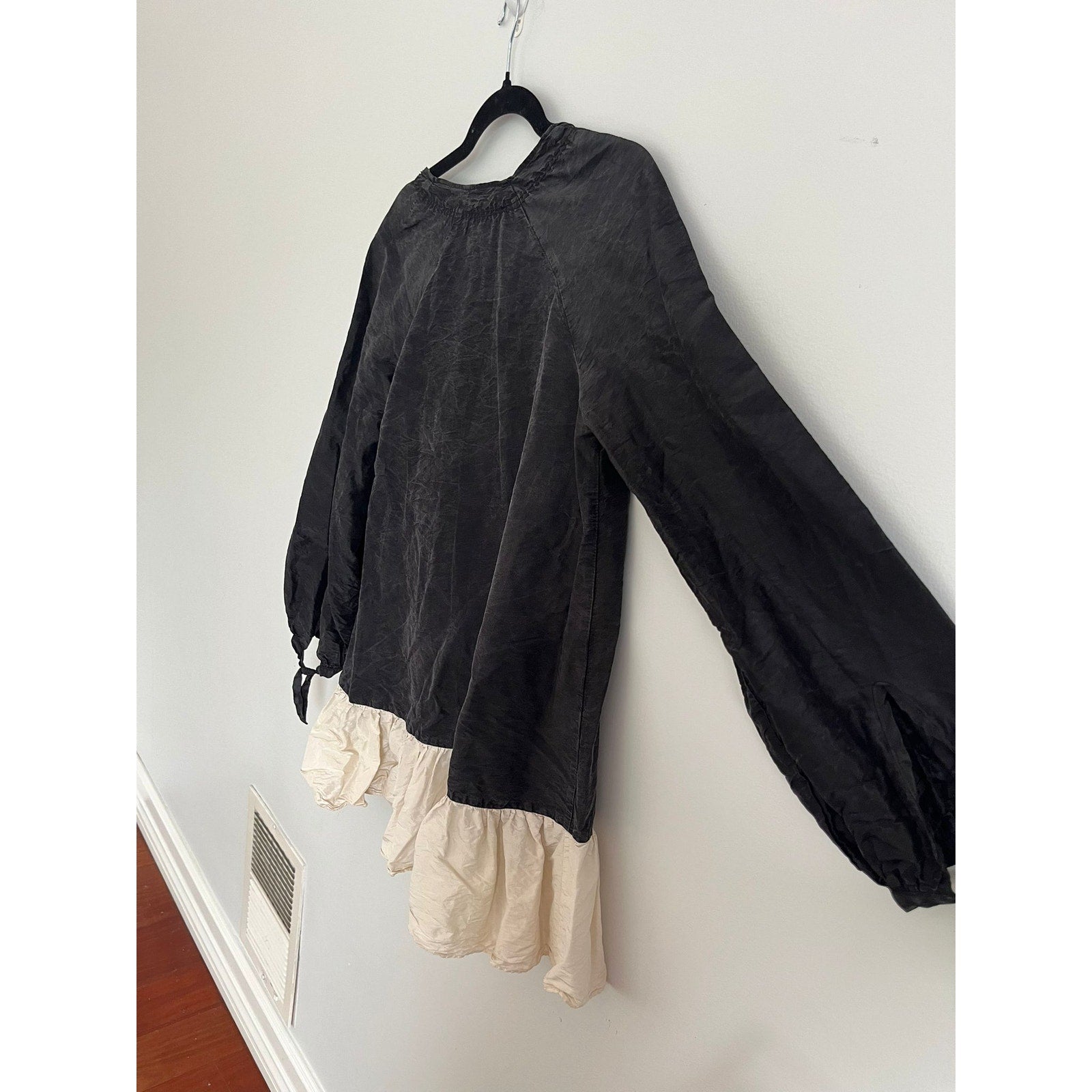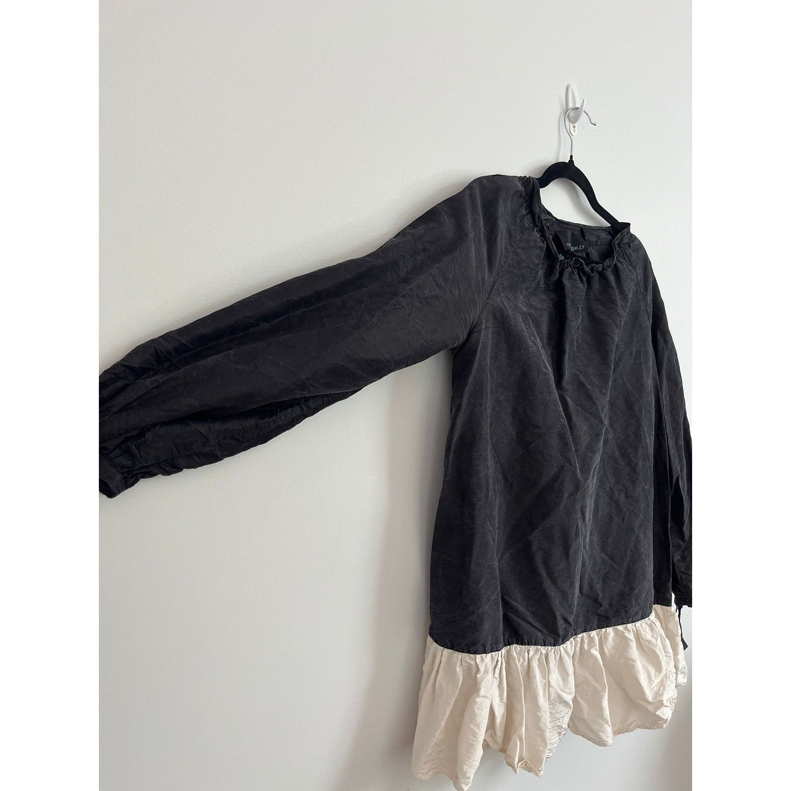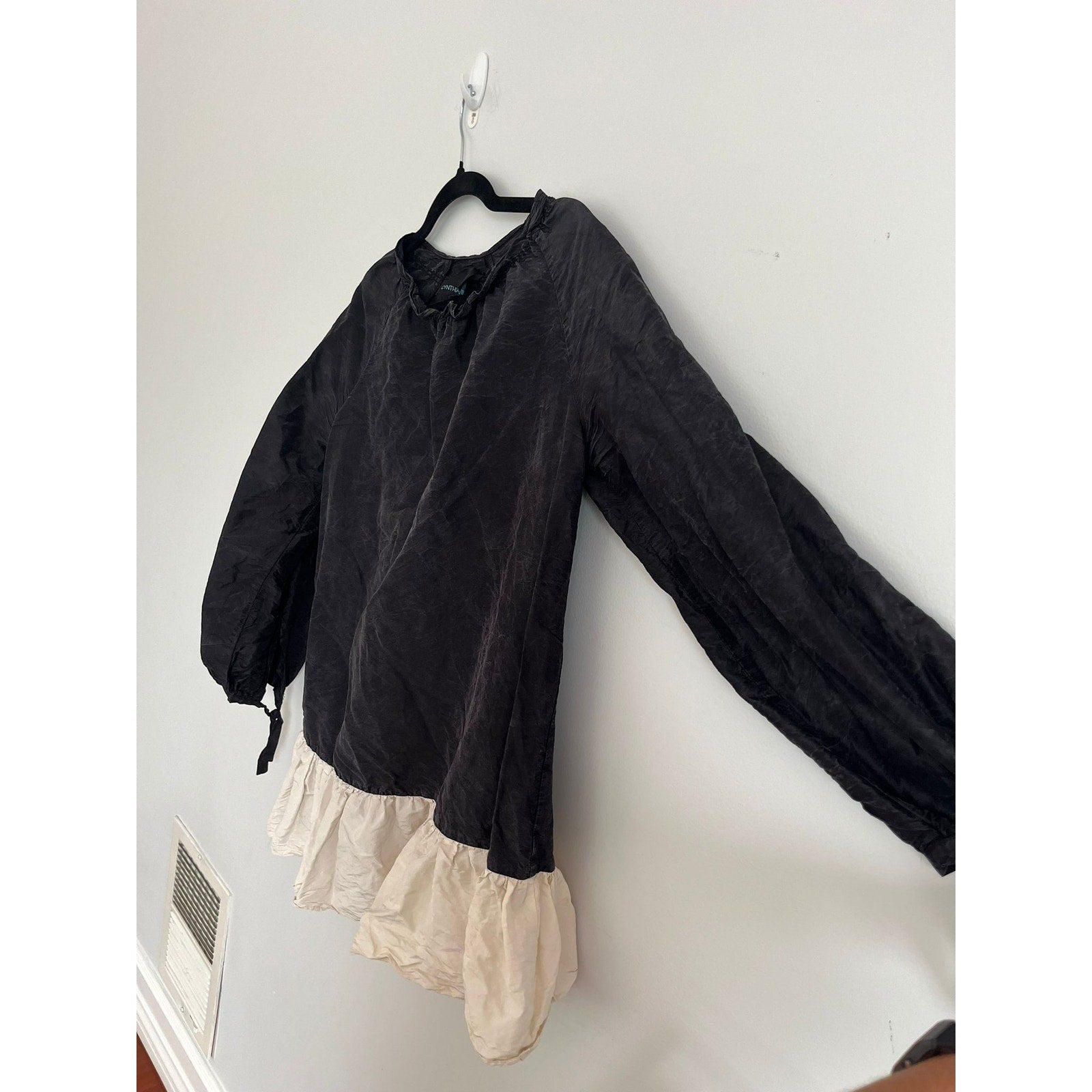 Cynthia Rowley Dress Women XS Black Long Sleeve Ruffle Hem Puff Cuffs Crinkle