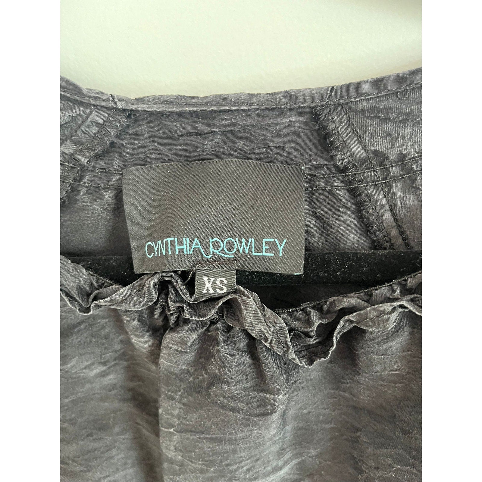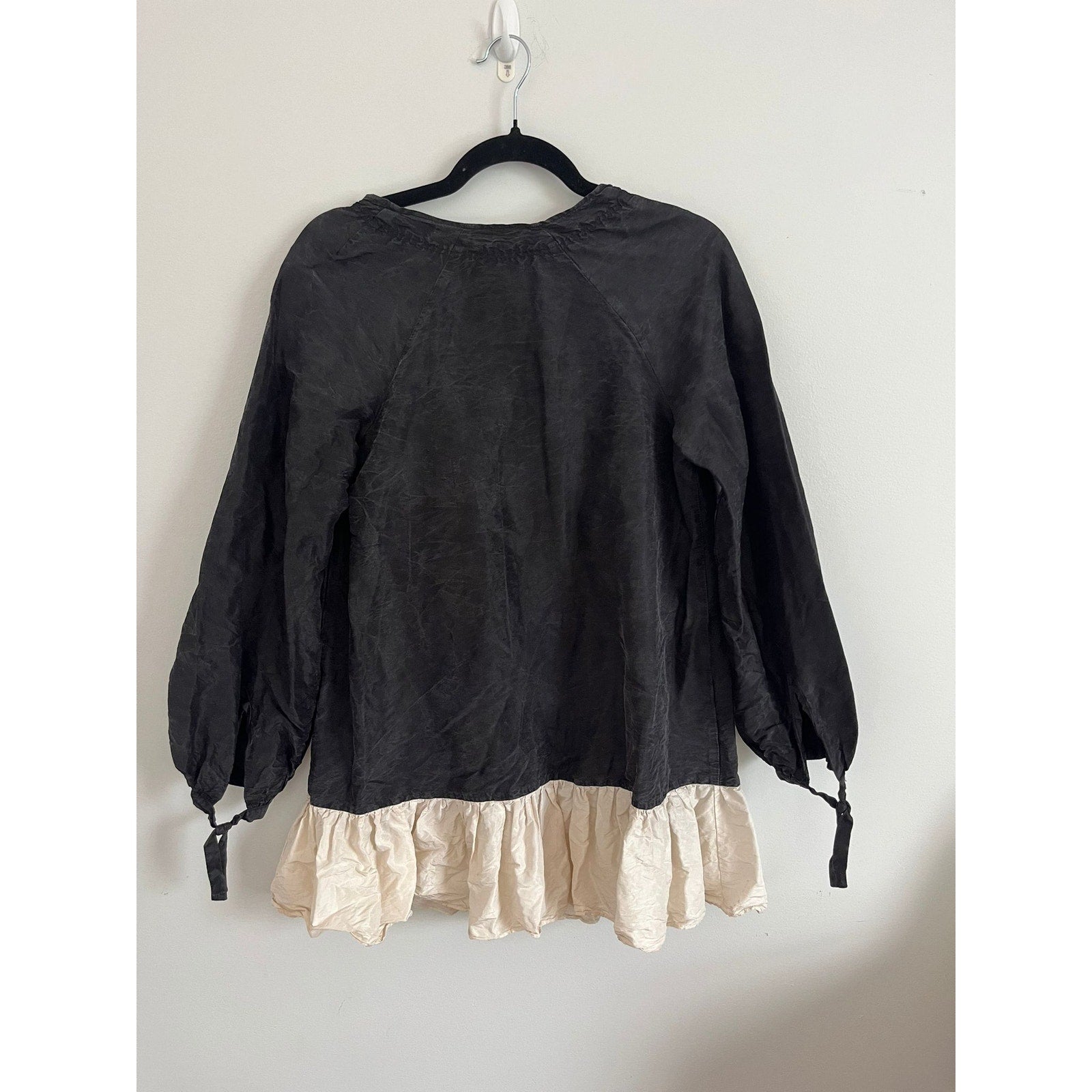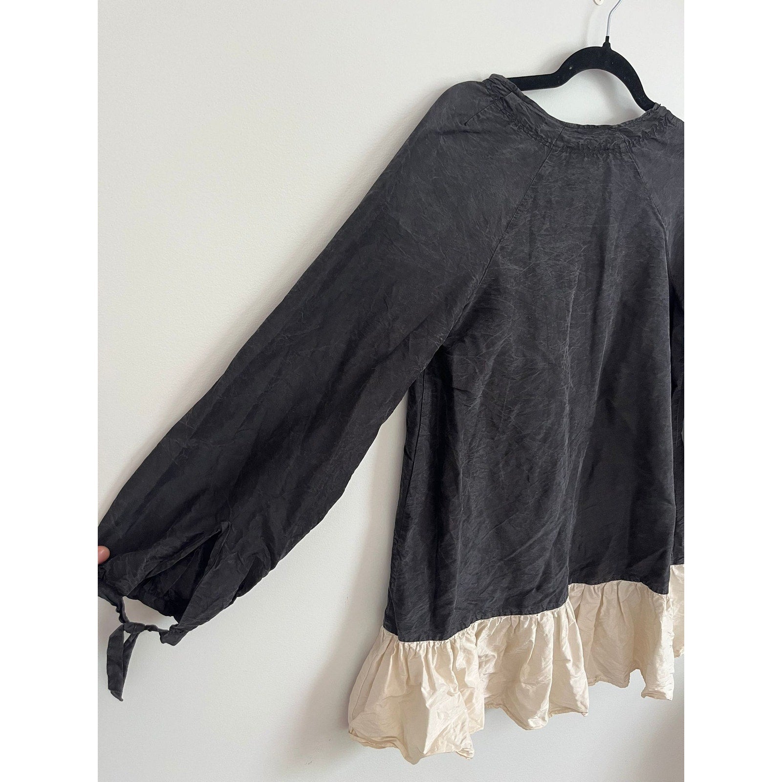 Cynthia Rowley Dress Women XS Black Long Sleeve Ruffle Hem Puff Cuffs Crinkle