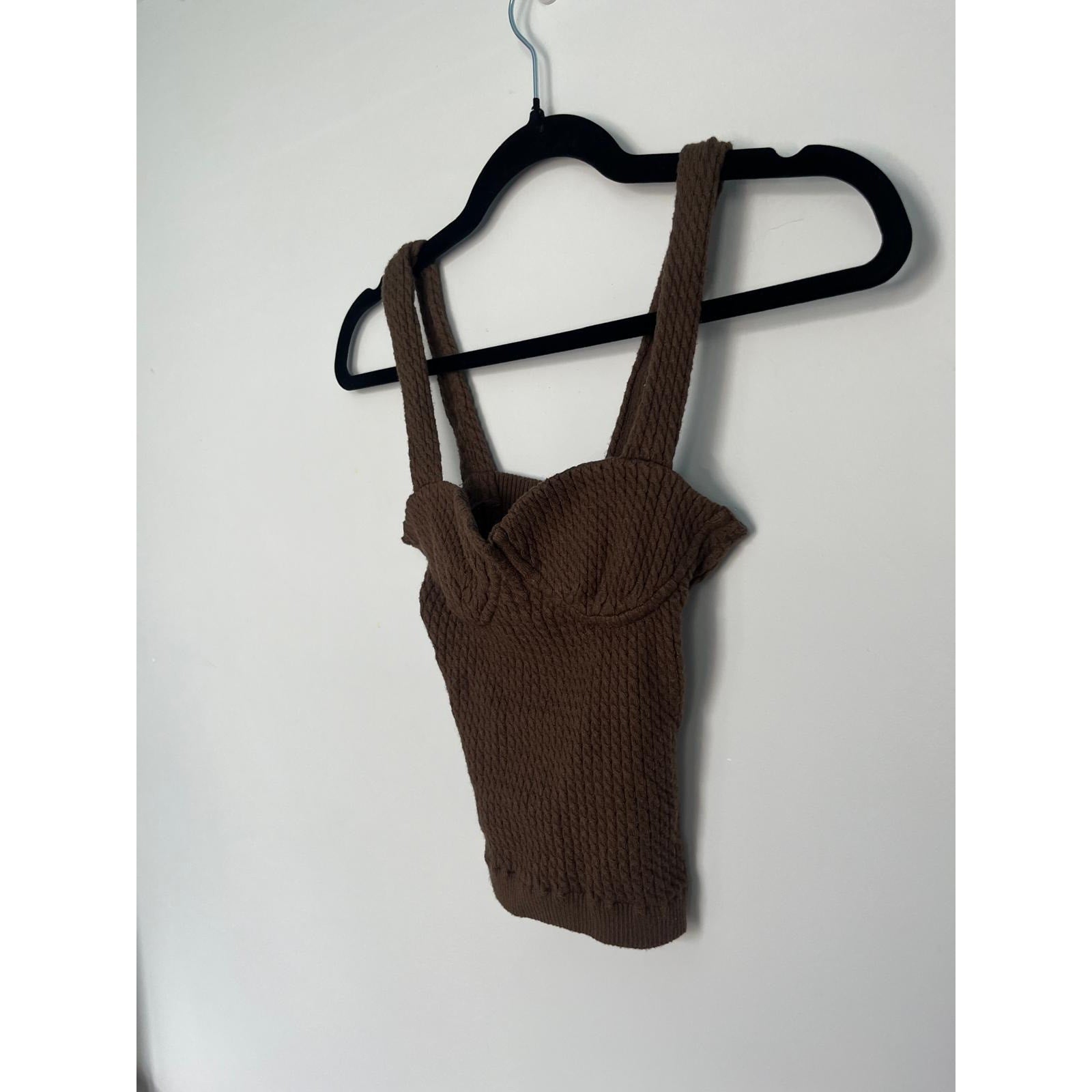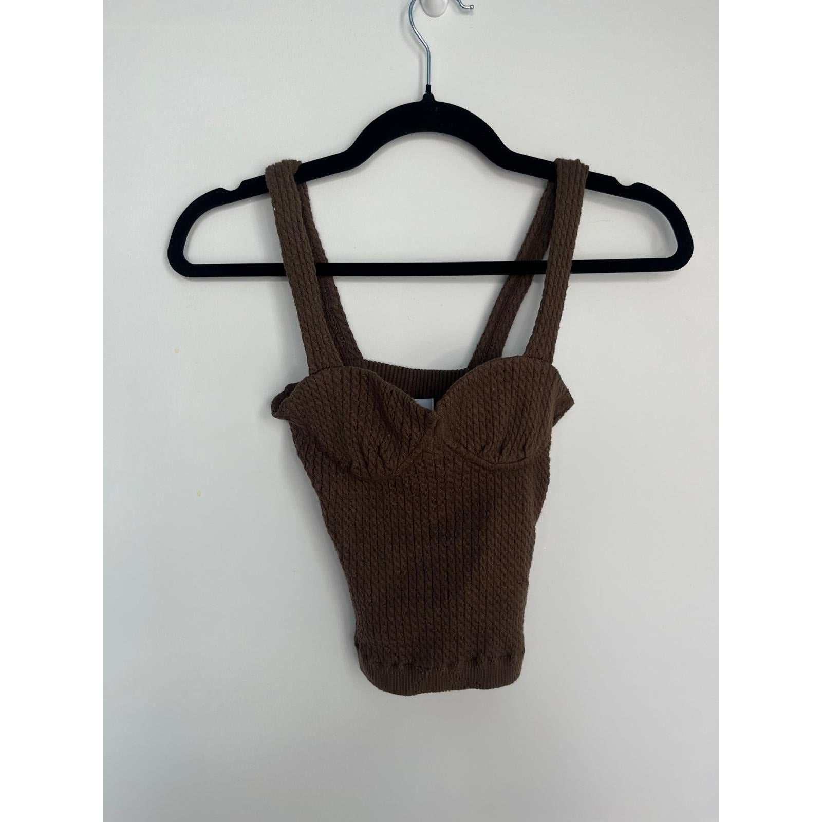 Danielle Bernstein Knit Tank Top Women XS Brown Cable Textured Bustier Style