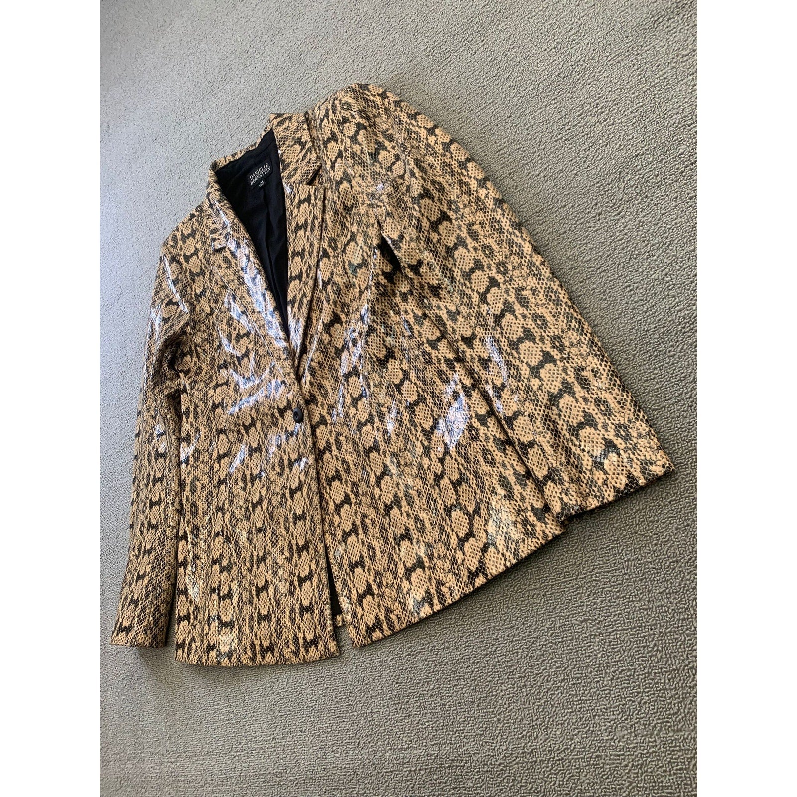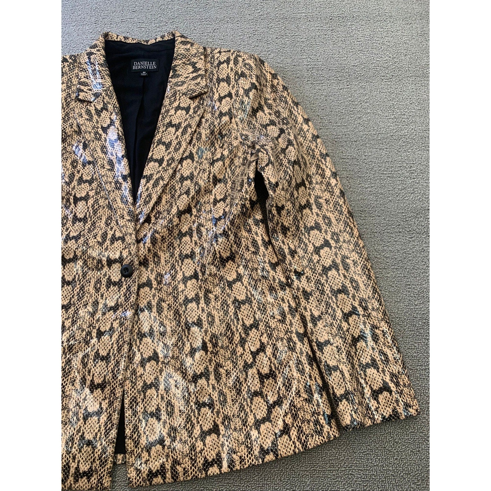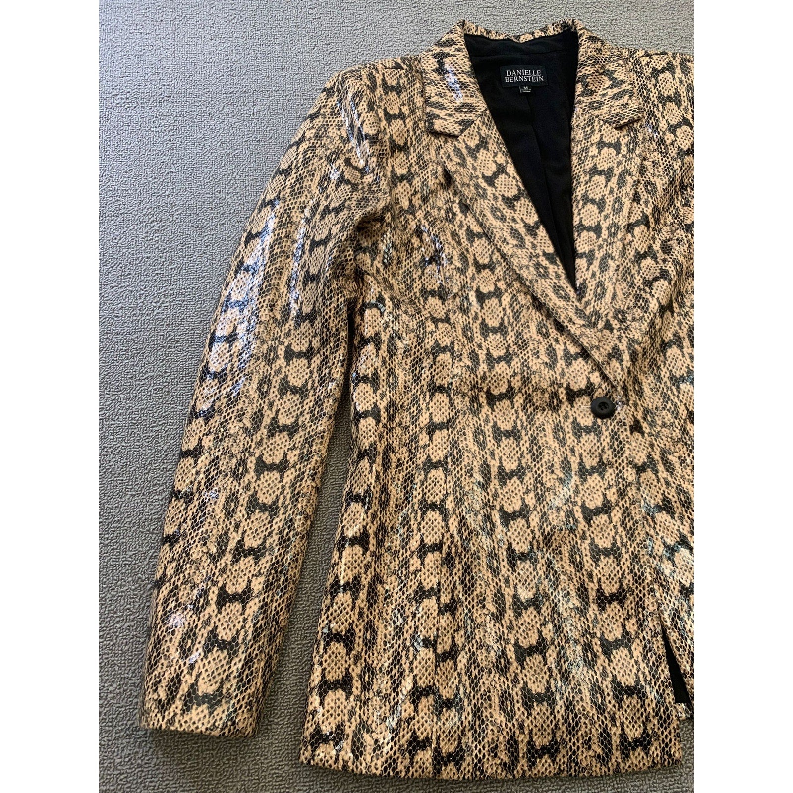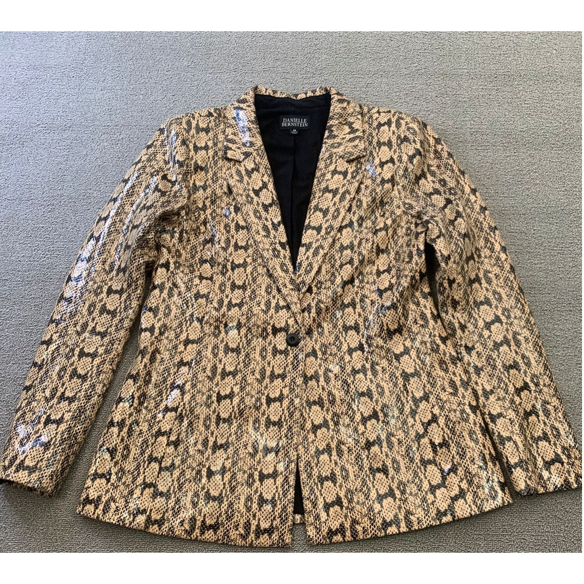 Danielle Bernstein Women's M Snake Print Tan Brown Black Blazer Faux Snake Skin
