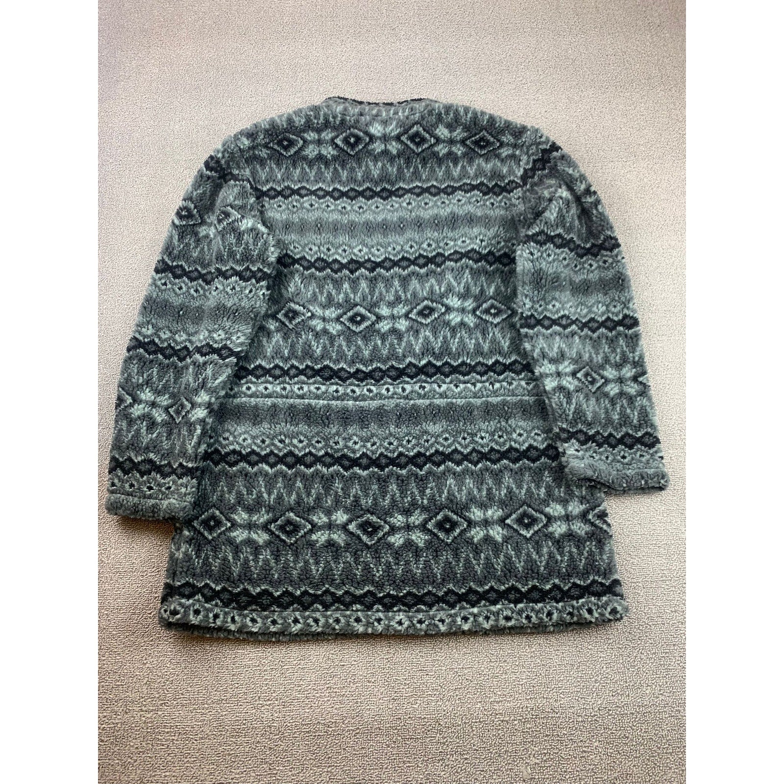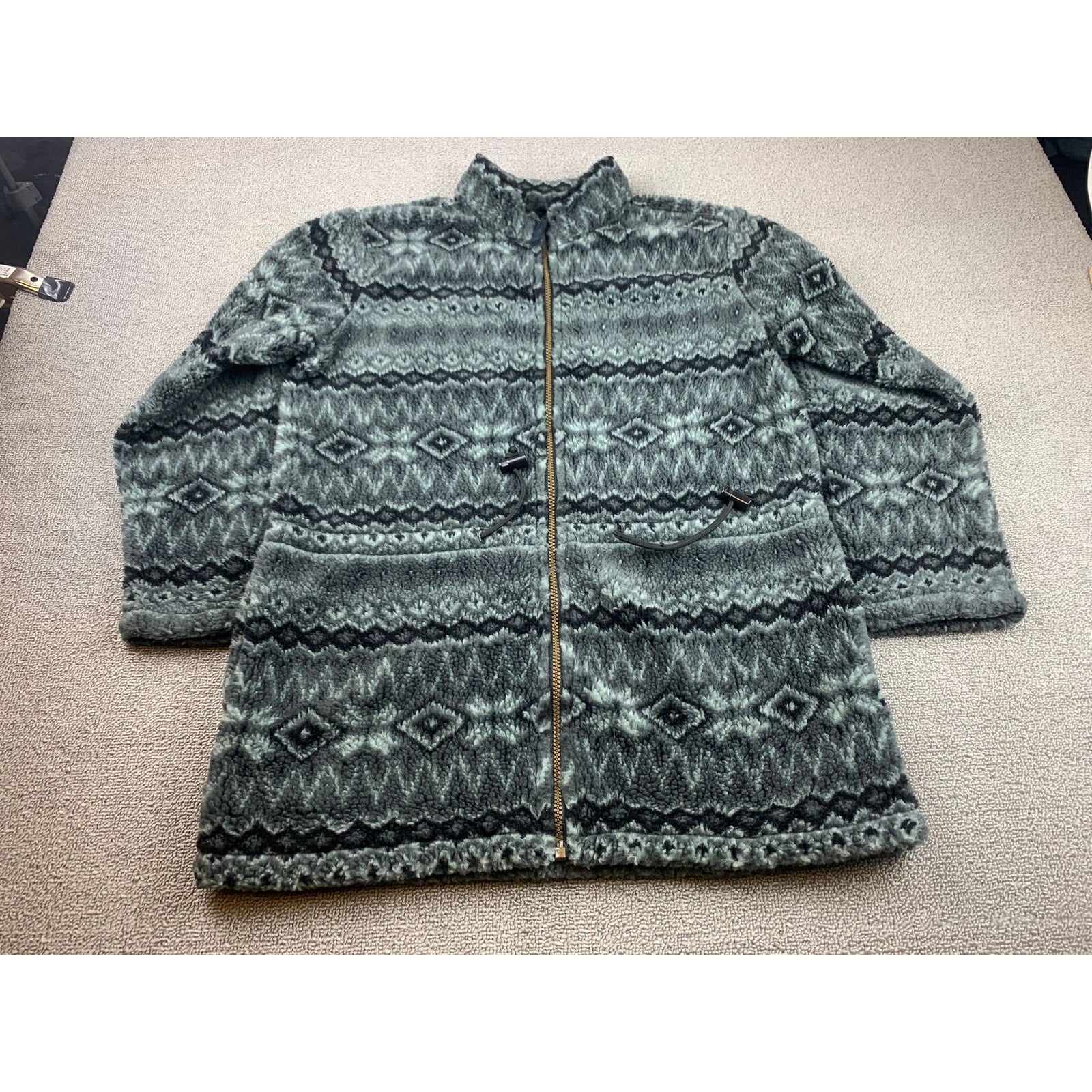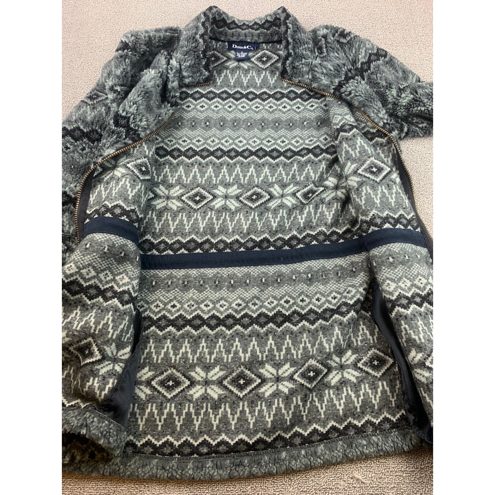 Denim & Co. Womens Small Gray Aztec Fuzzy Full Zip Sweater
