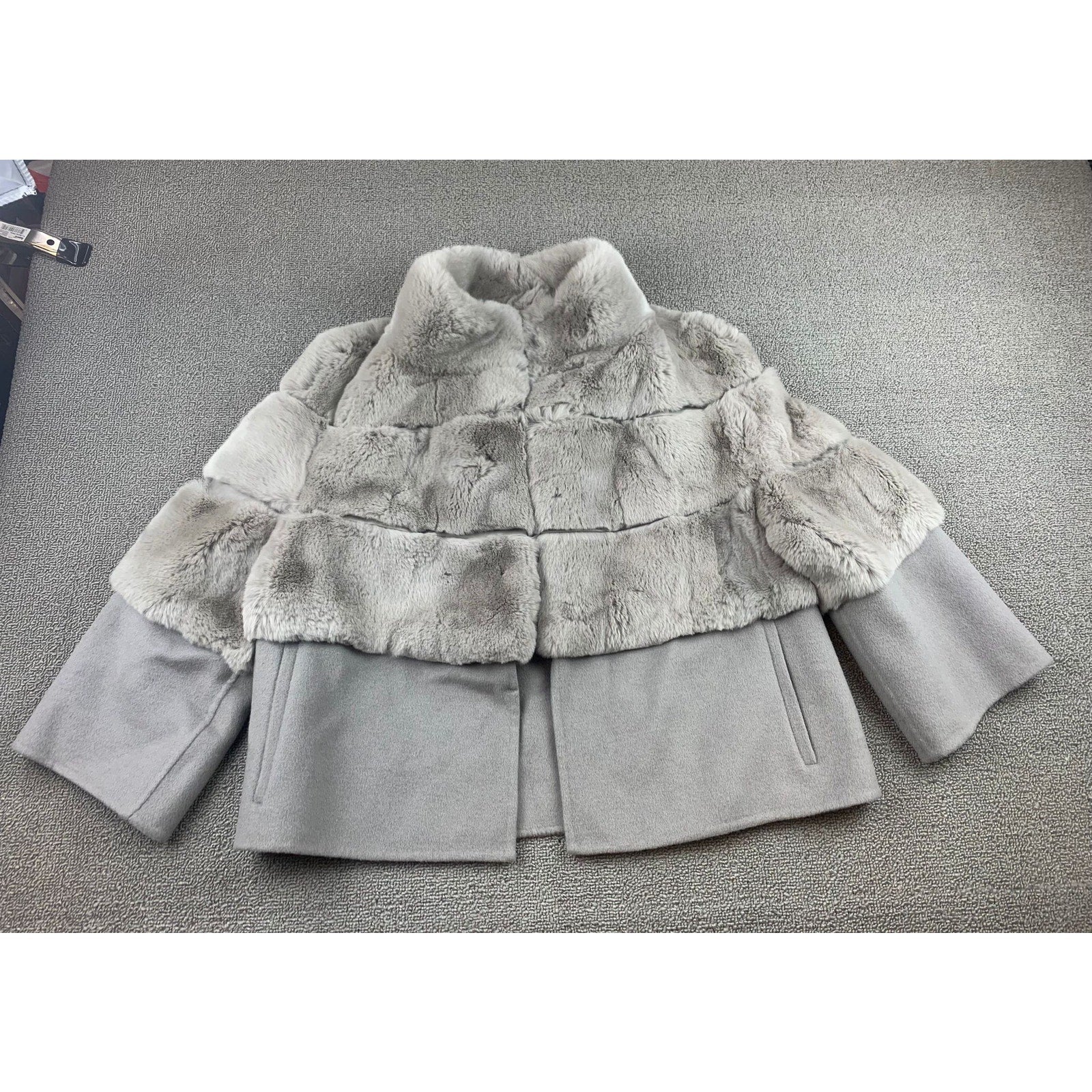 Diana Rosh New York Gray Coat Size XS %100 DOUBLE PLY WOOL WITH REX RABBIT