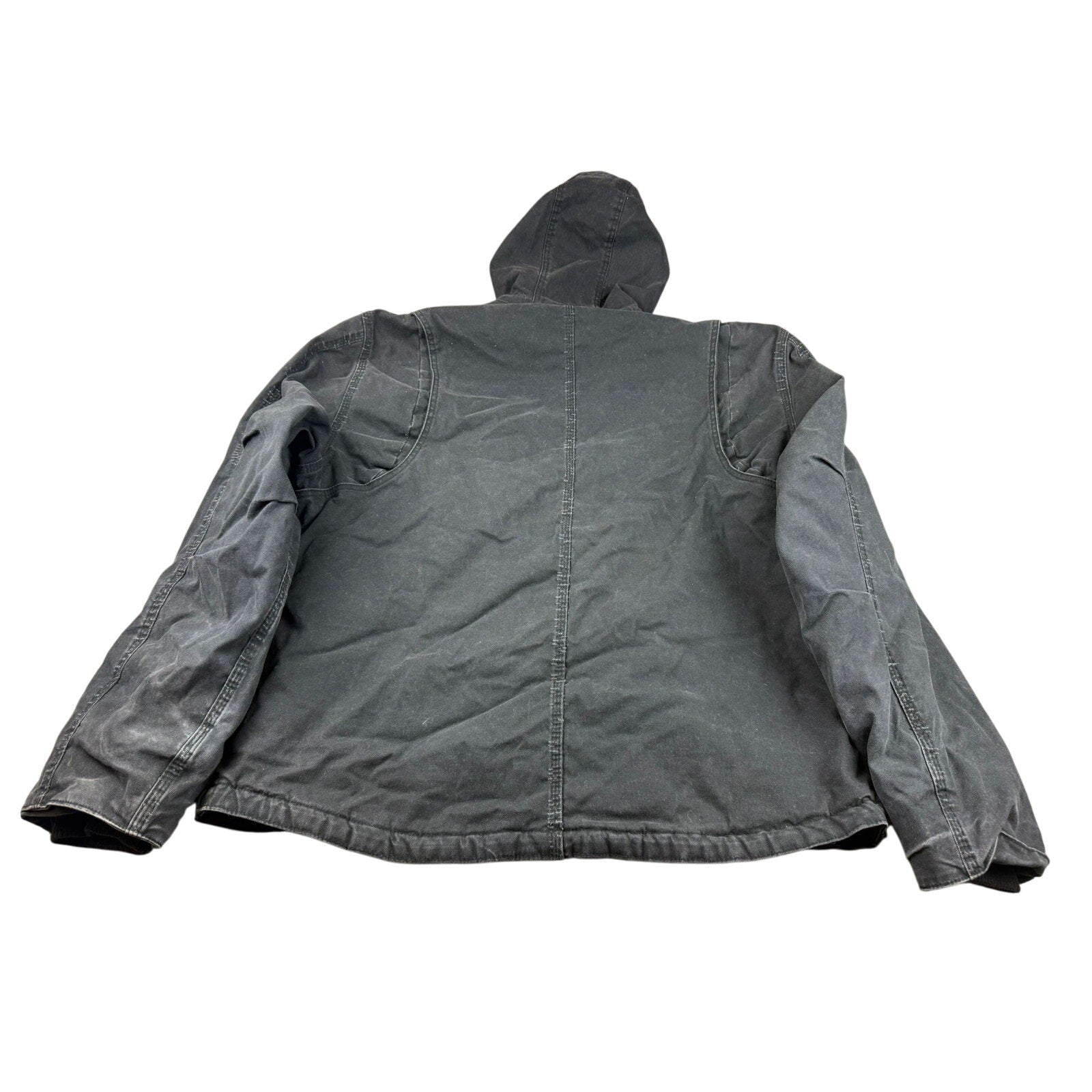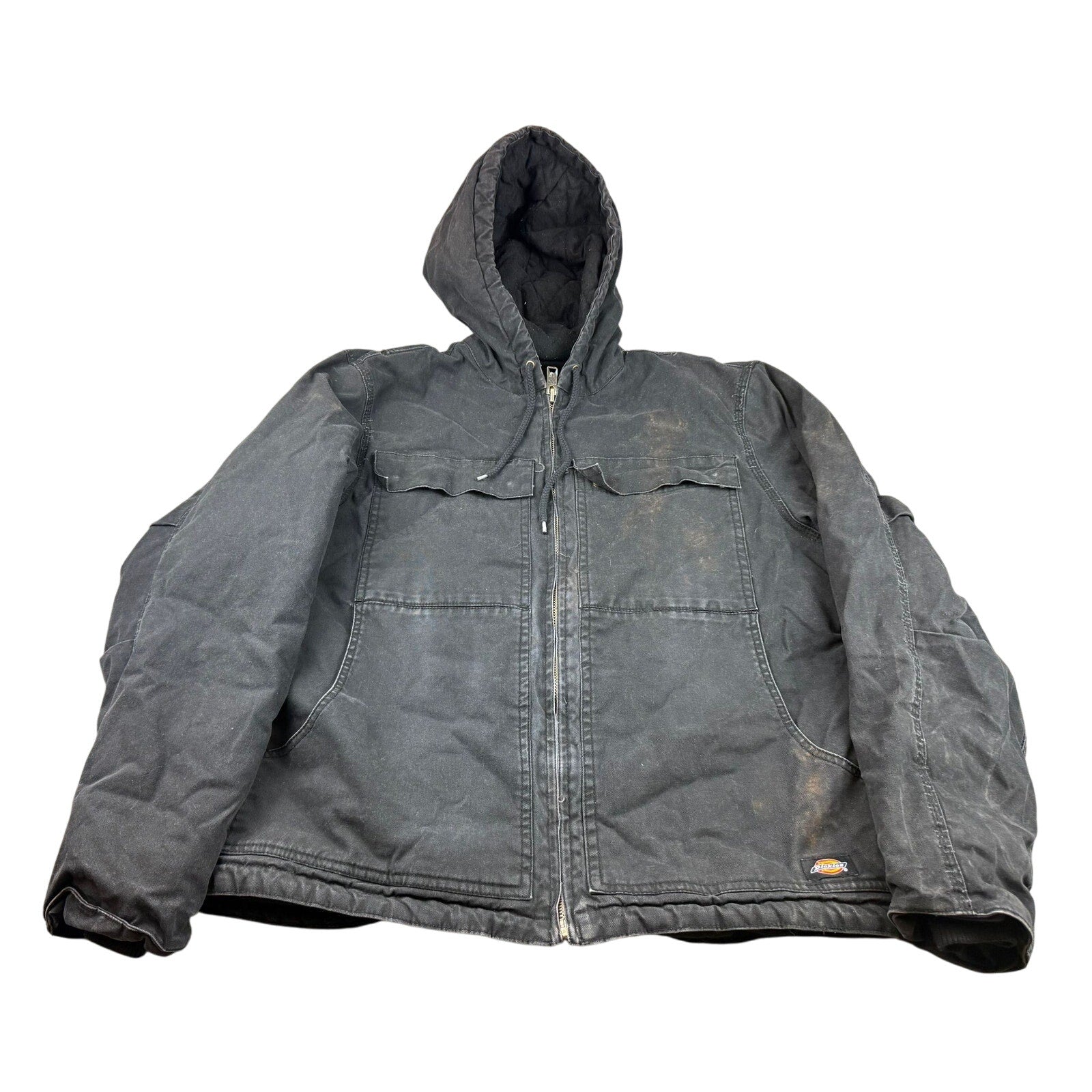 A rugged hooded workwear jacket from Dickies, crafted in black cotton canvas with quilted polyester lining and full zip closure. Features large front patch pockets, a roomy hood, and durable stitching—built for warmth and utility.