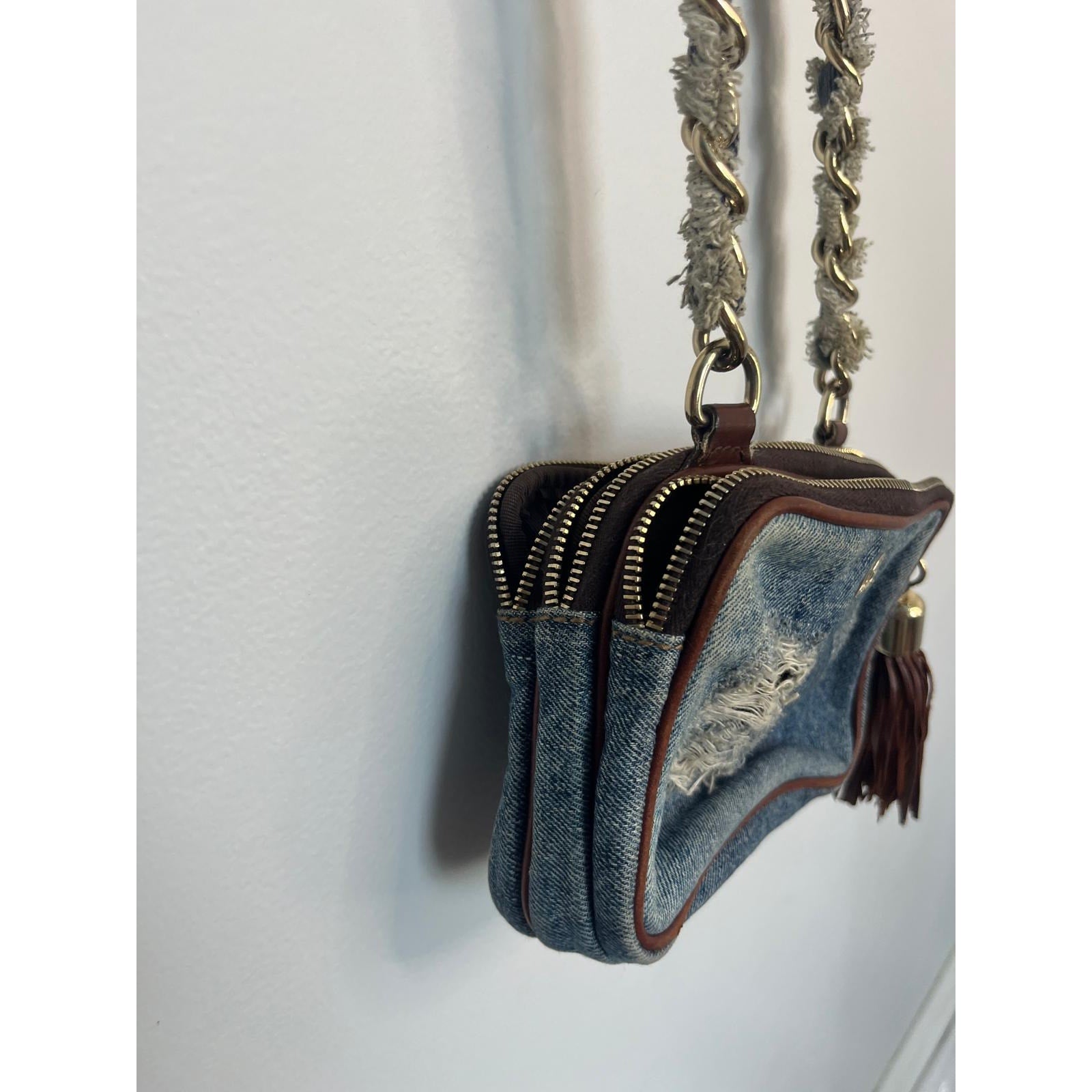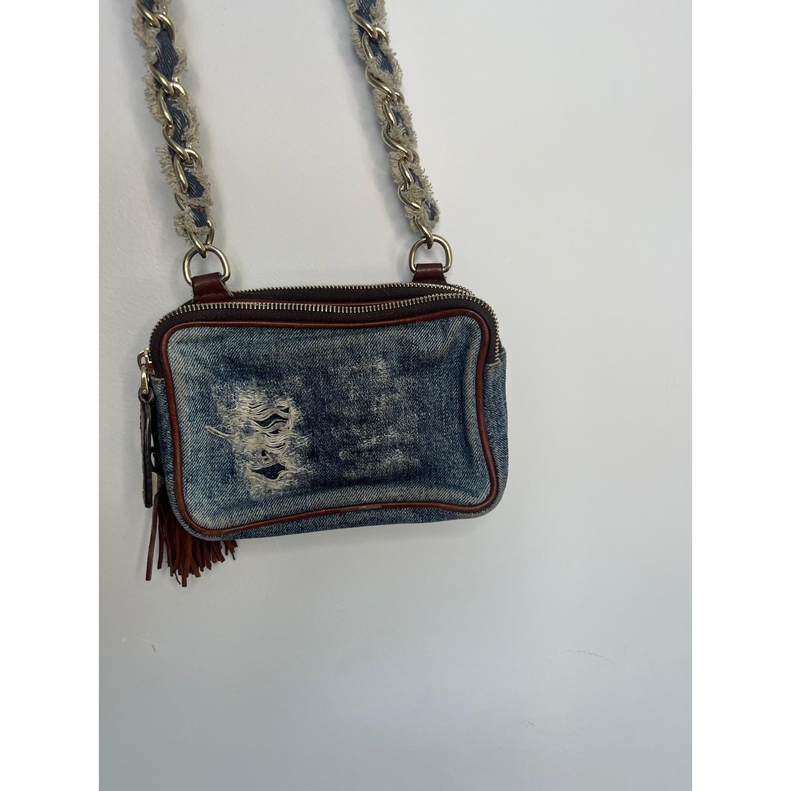 Dolce & Gabbana Denim Mini Crossbody Bag Distressed Tassel Chain Strap