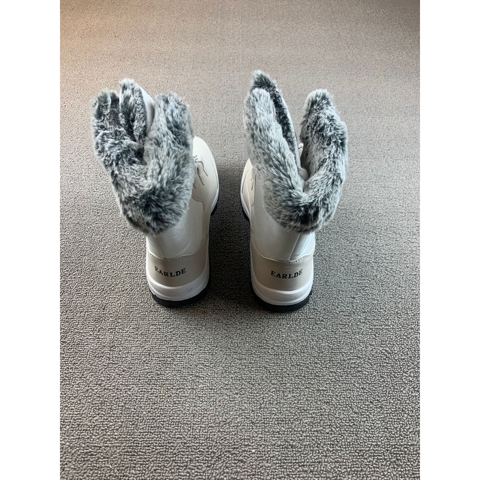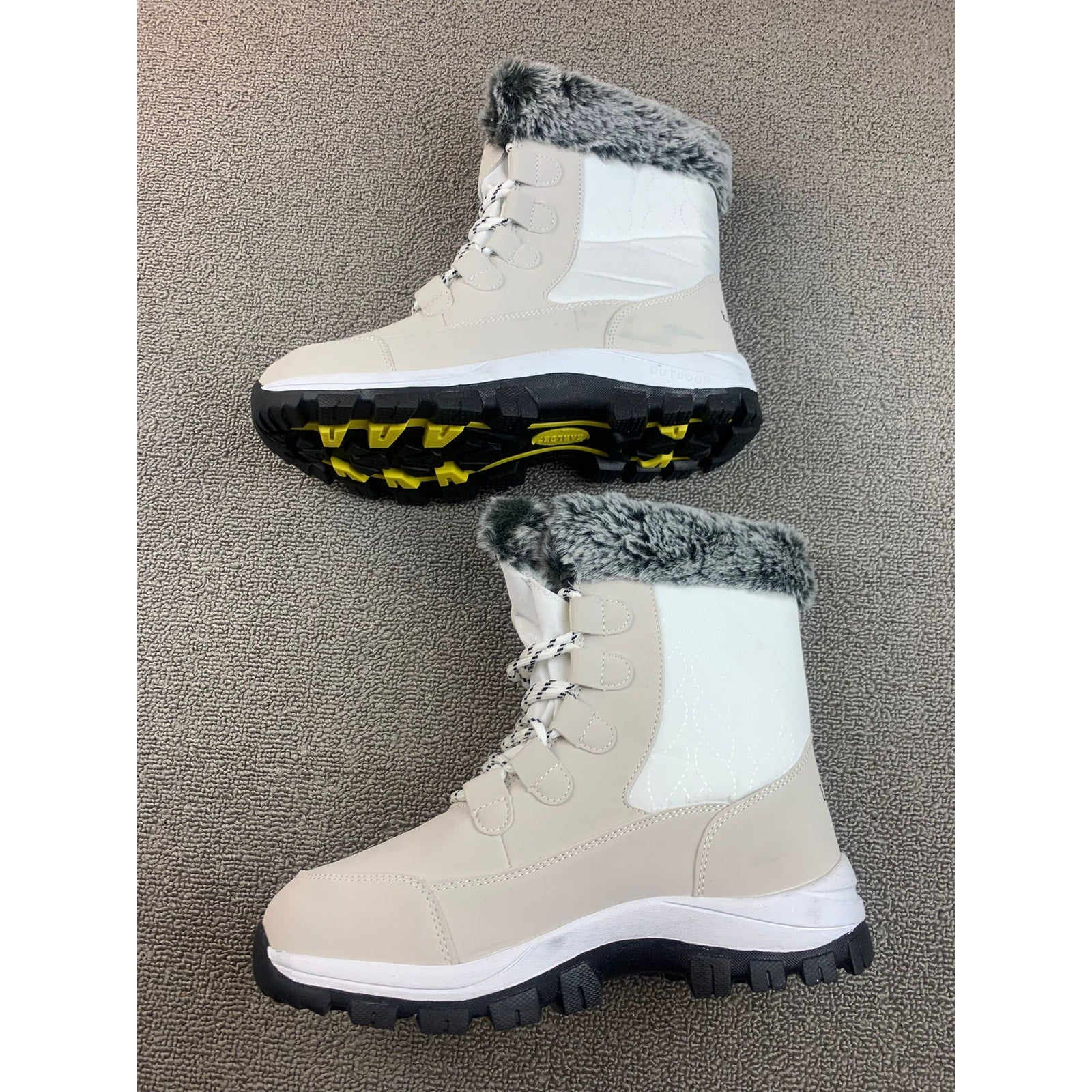 Earlde Women 40 Beige Gray Black Faux Fur Insulated Snow Boots Casual