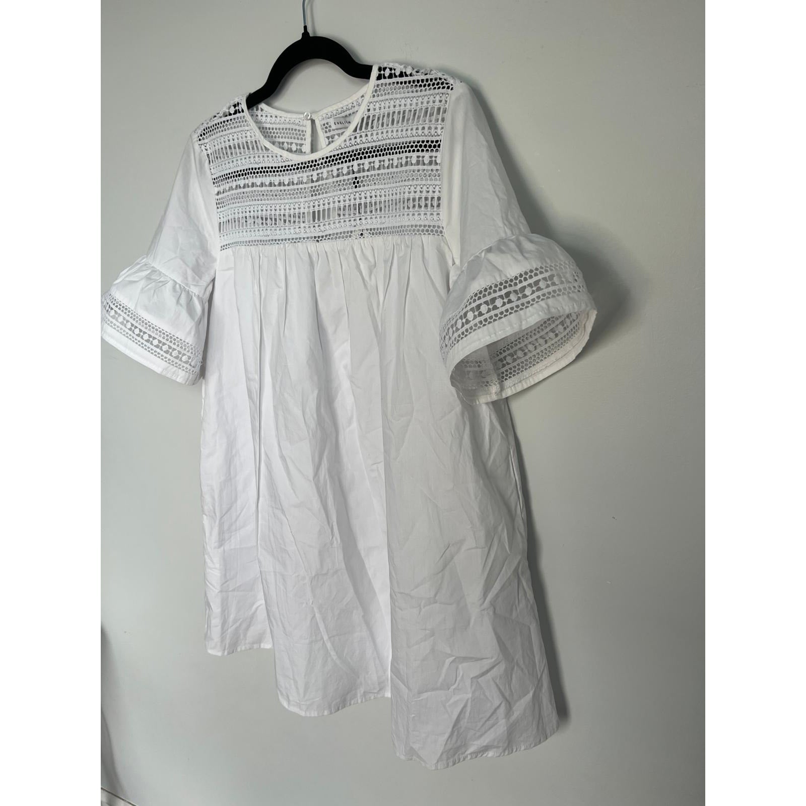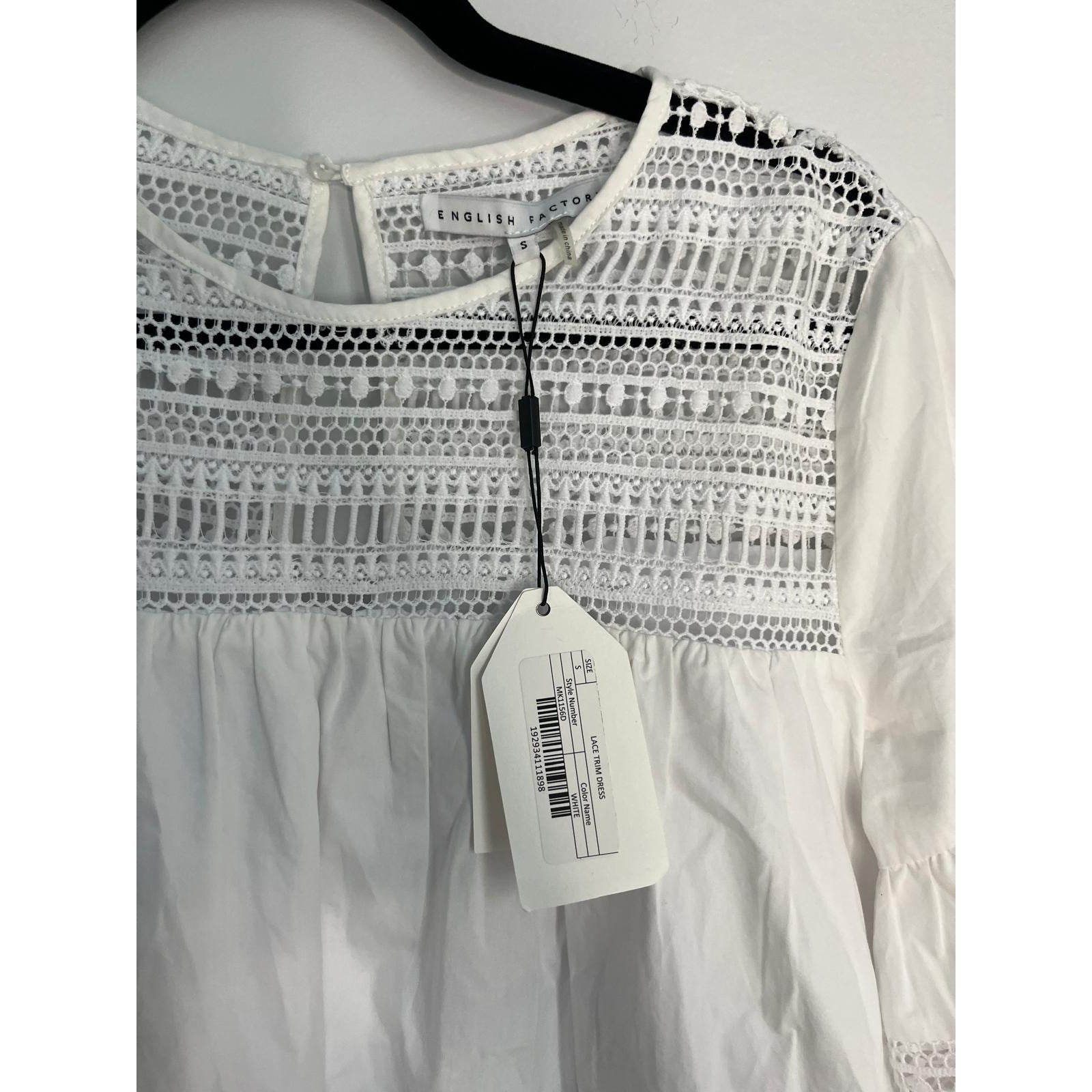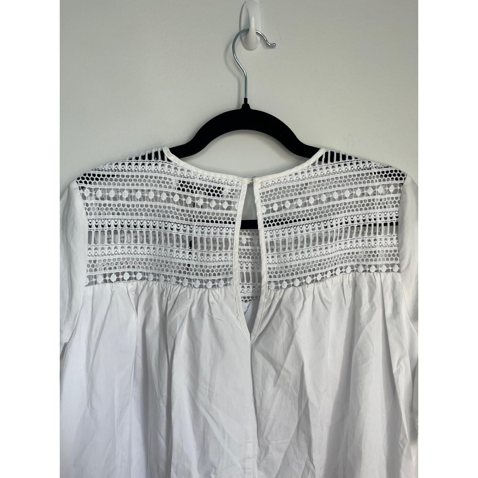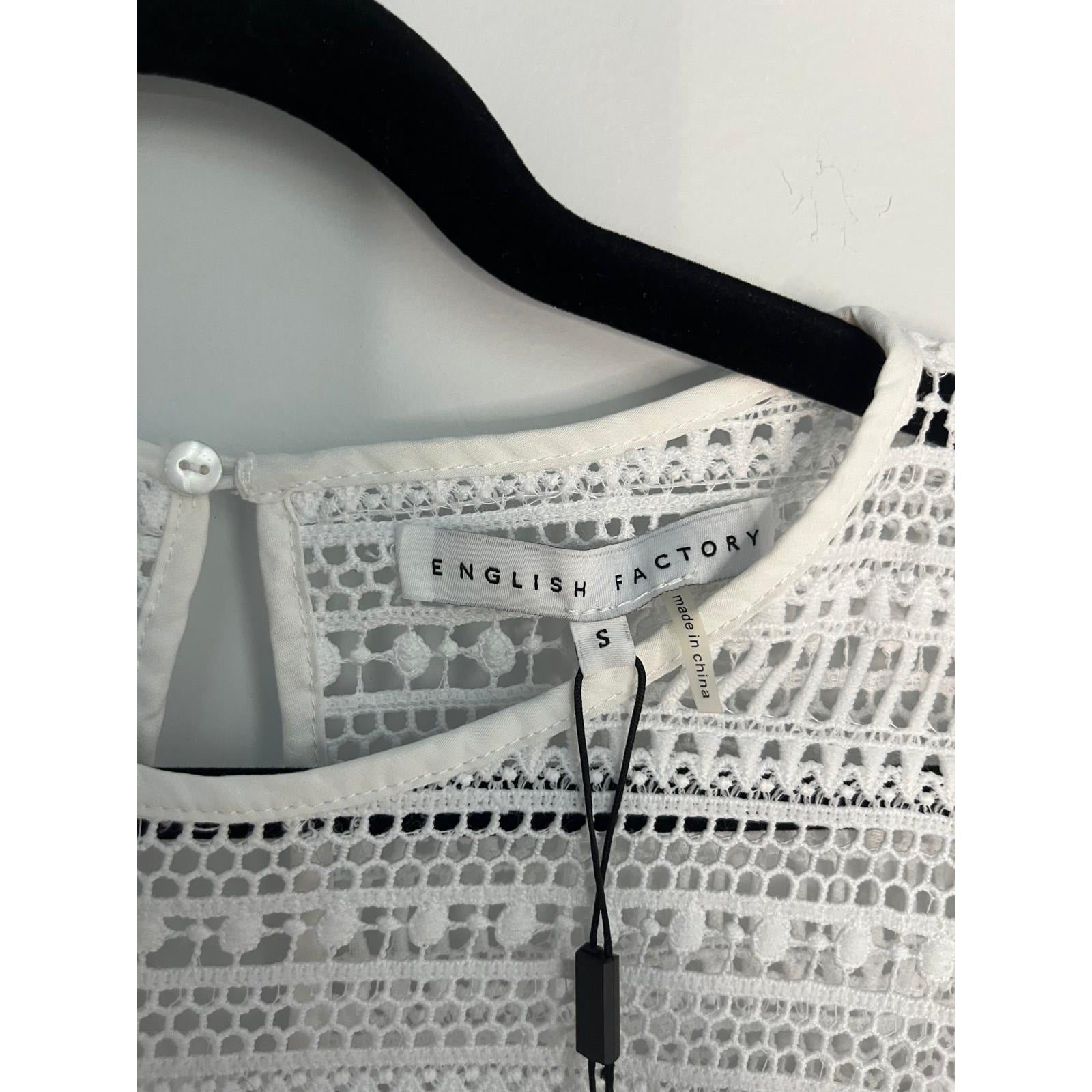 English Factory Eyelet Lace Babydoll Blouse Women Small White Short Sleeve NWT