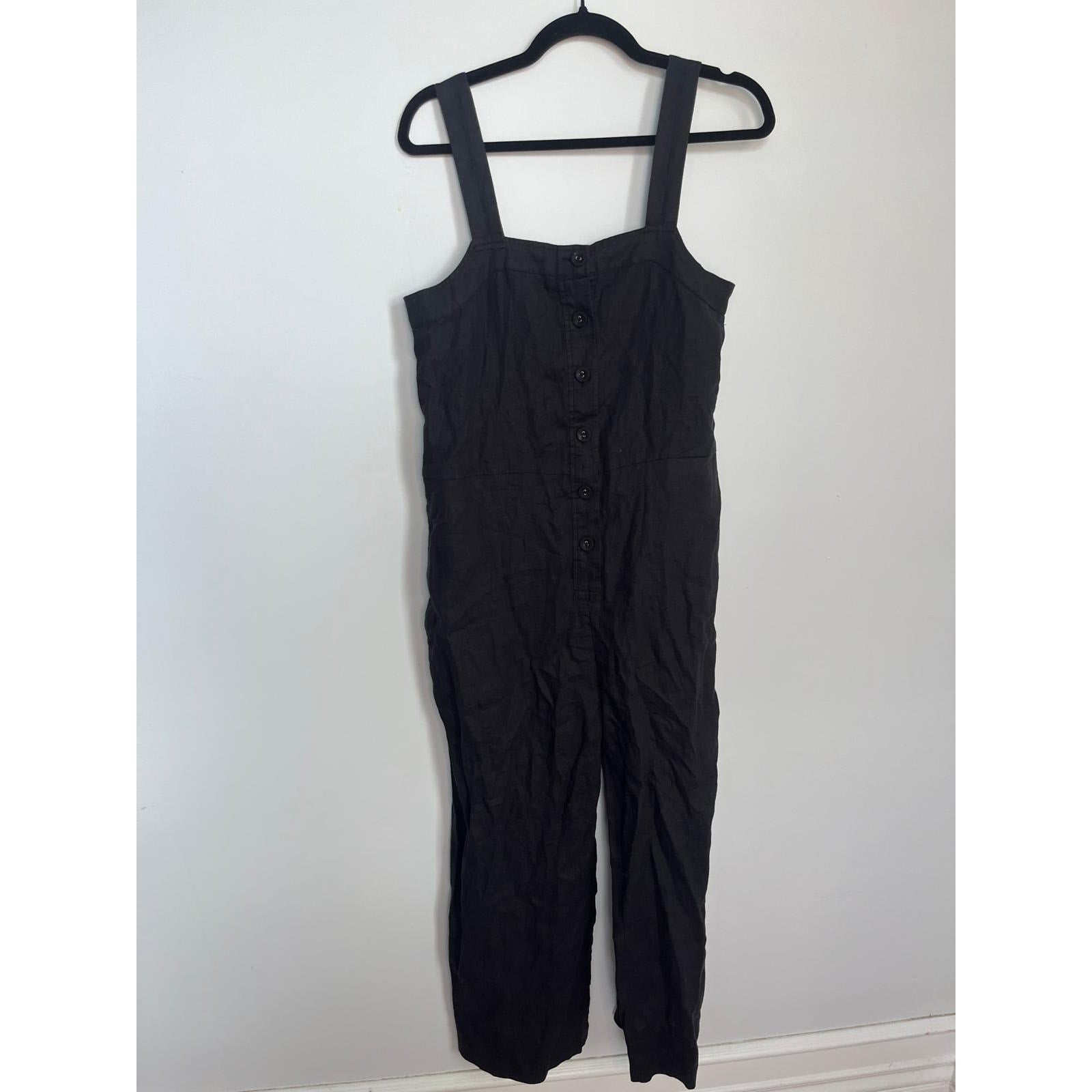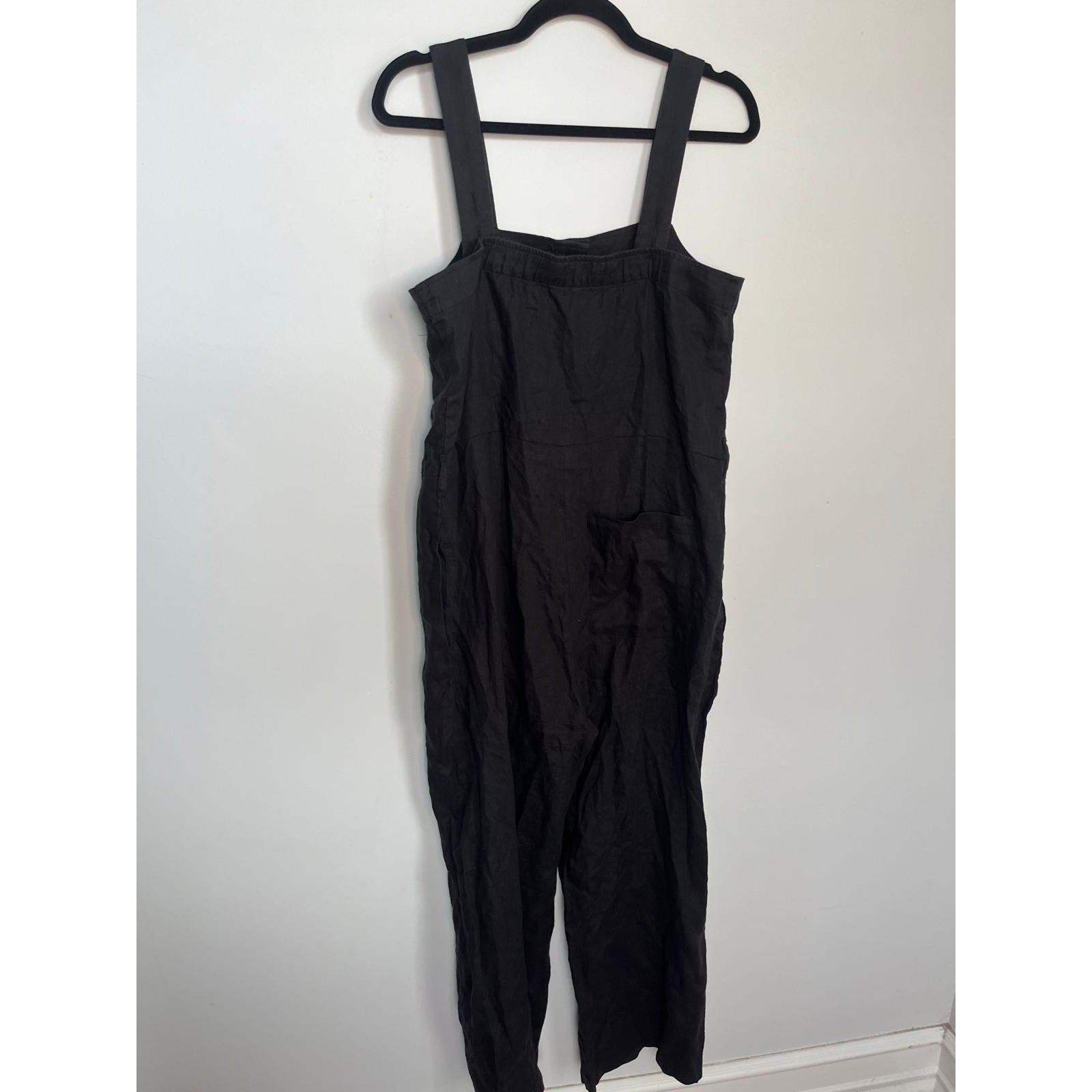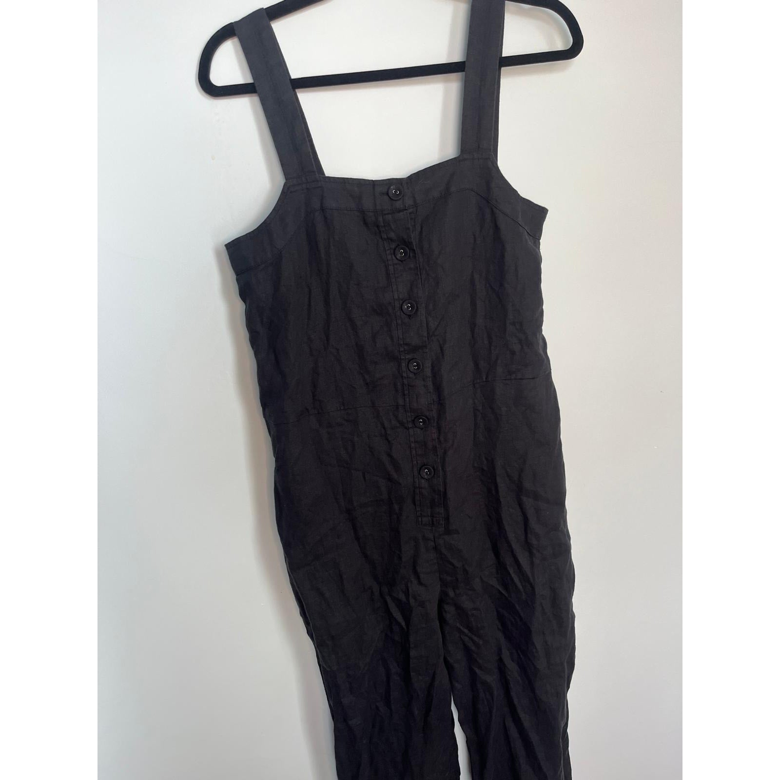 Everlane Linen Overalls Women 4 Black Wide Leg Jumpsuit