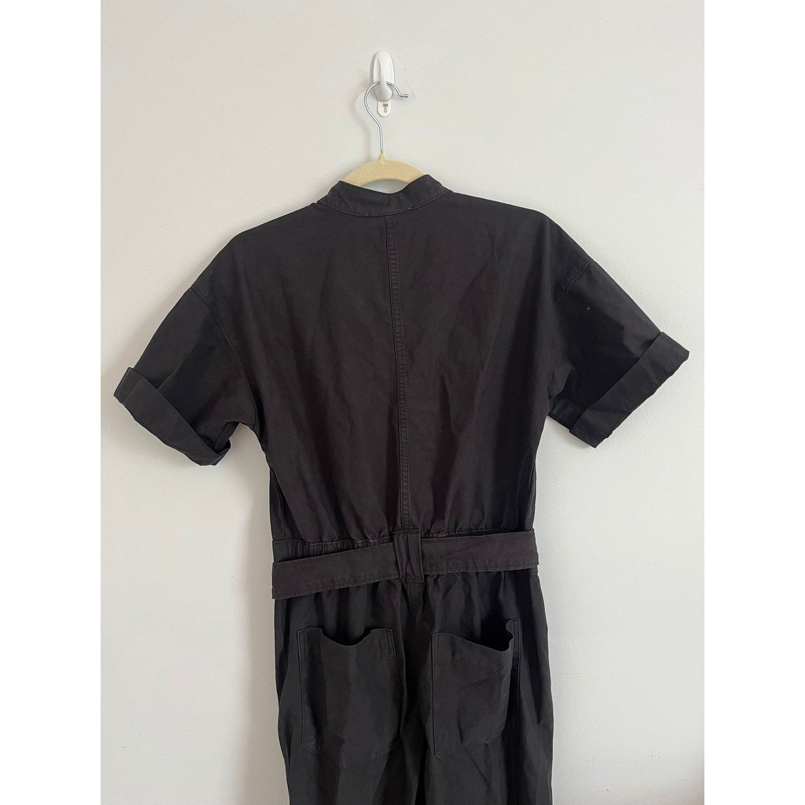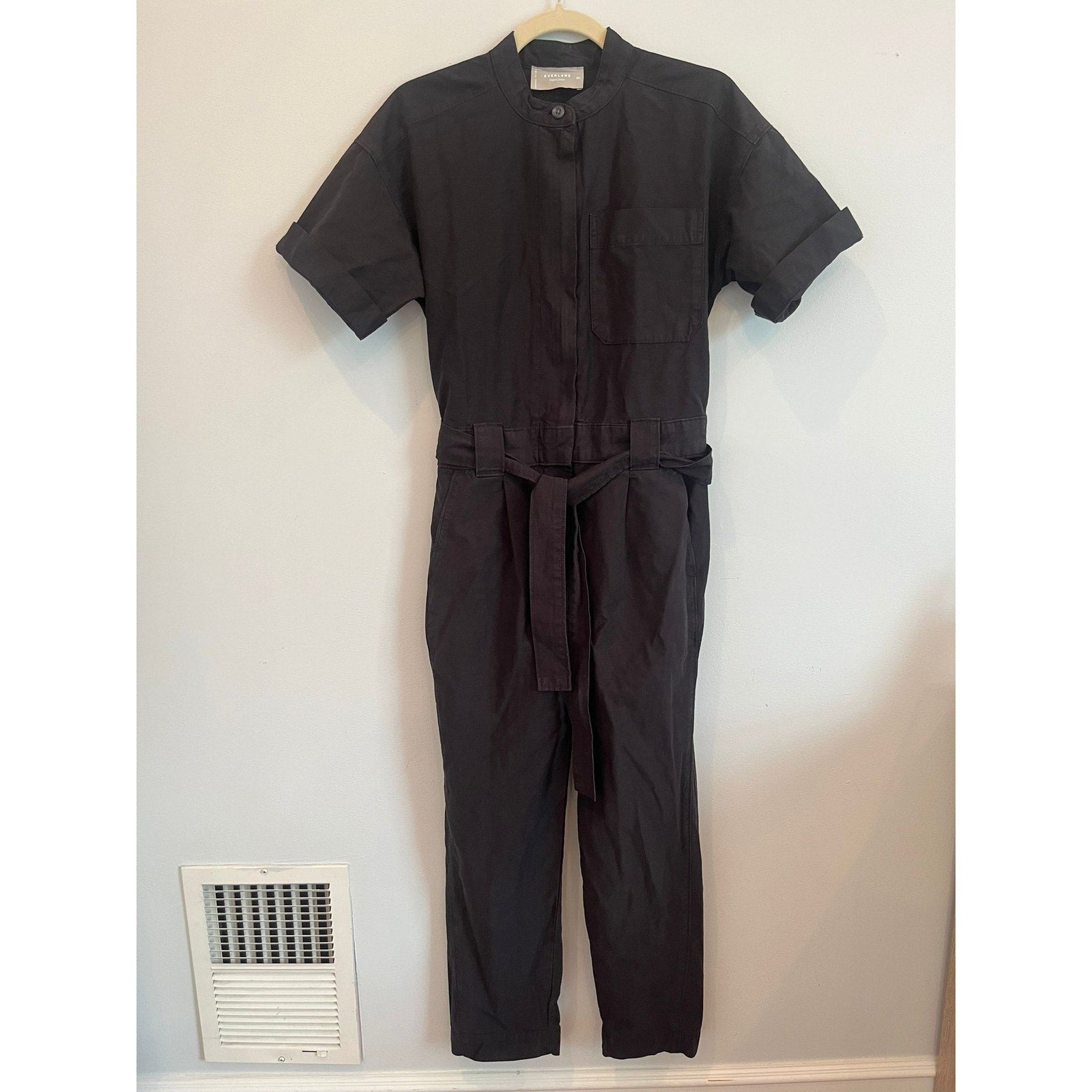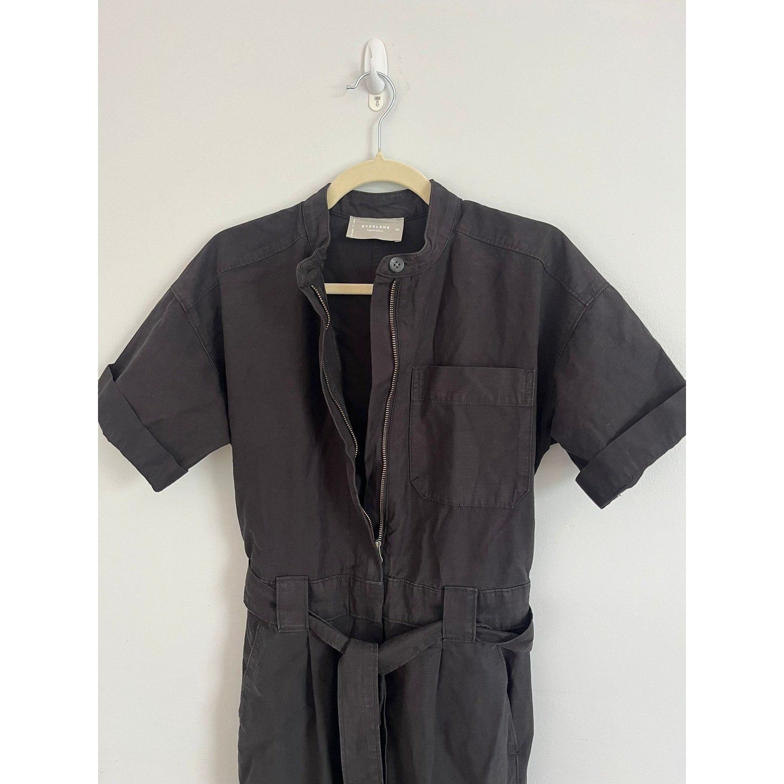 Everlane Utility Jumpsuit Women 00 Black Organic Cotton Short Sleeve Belted