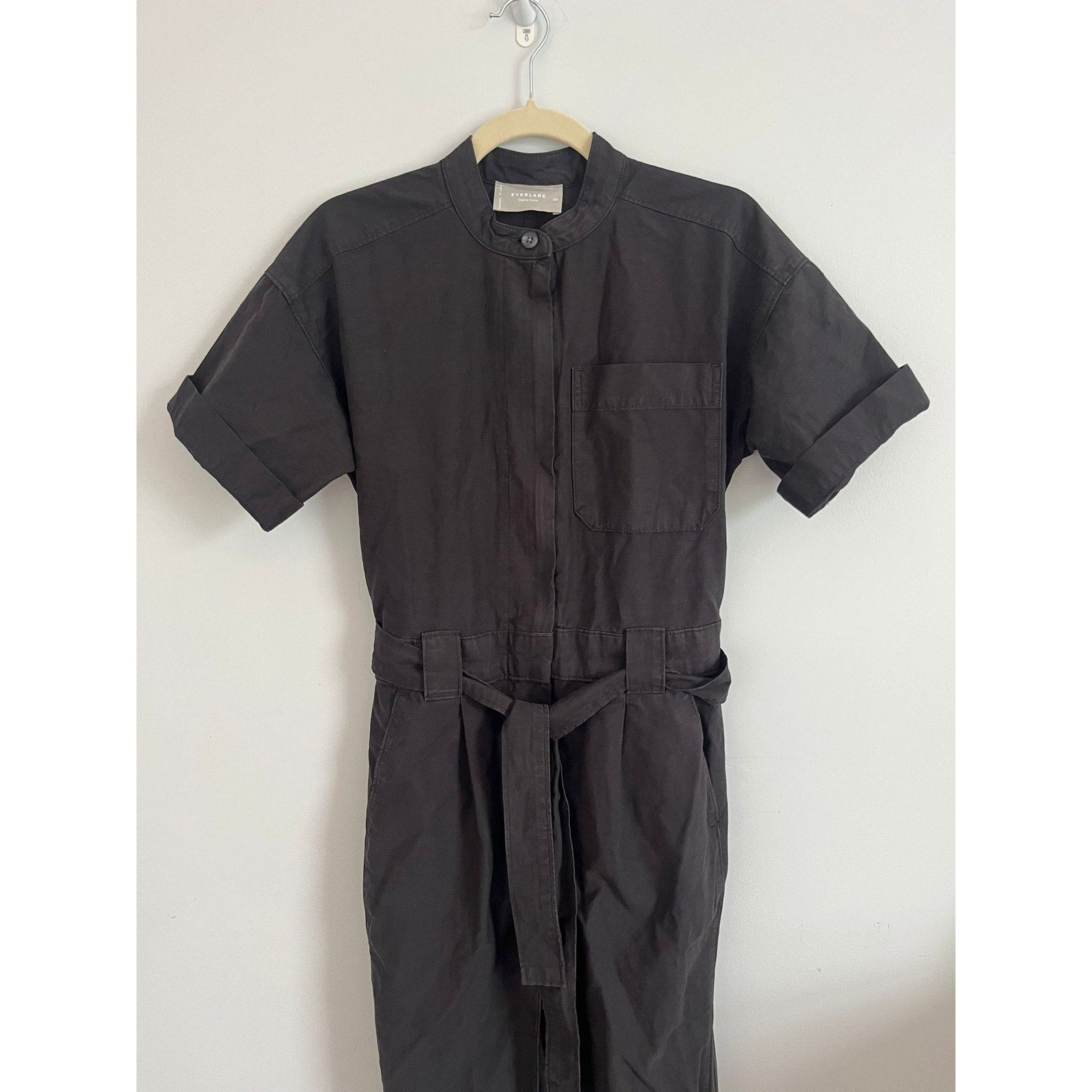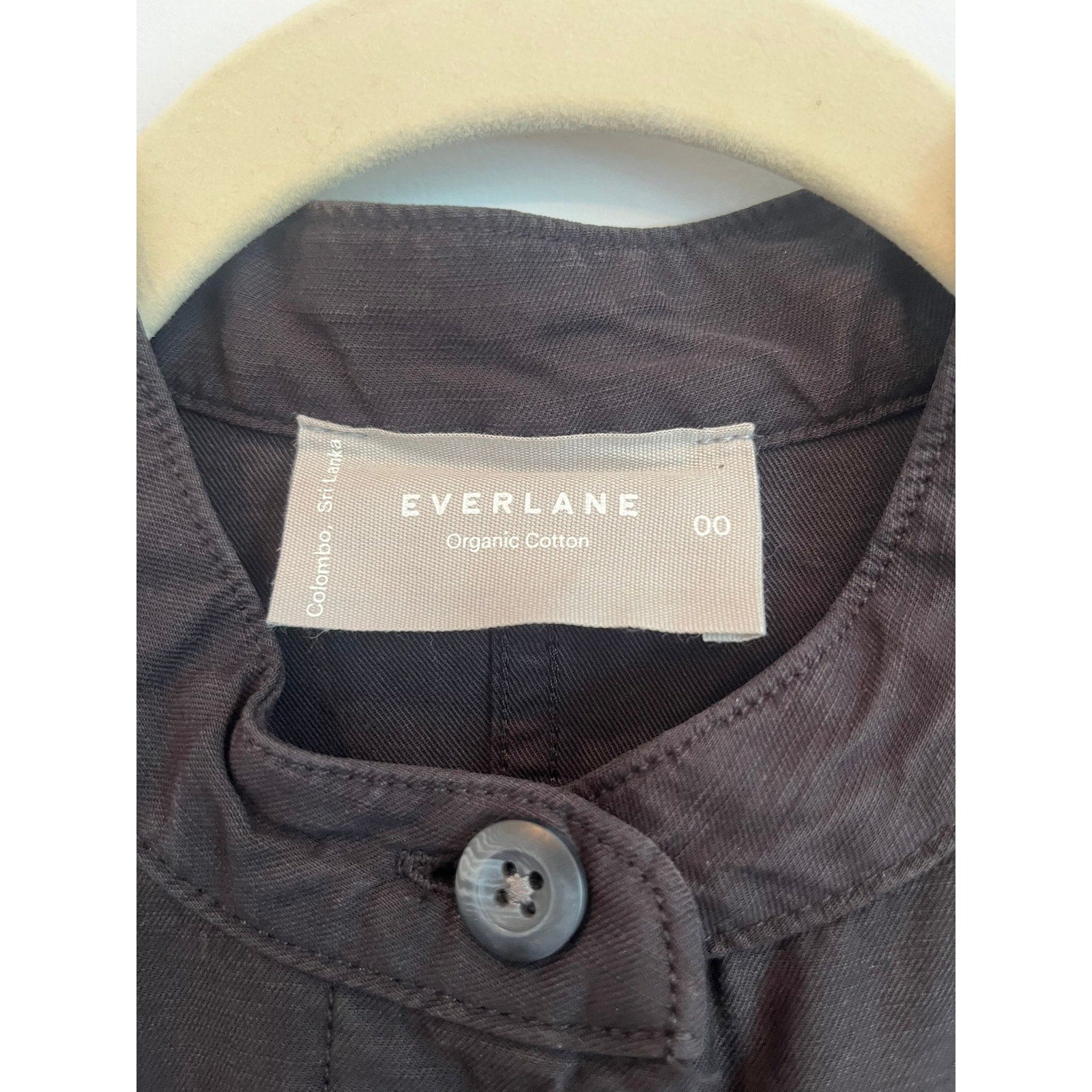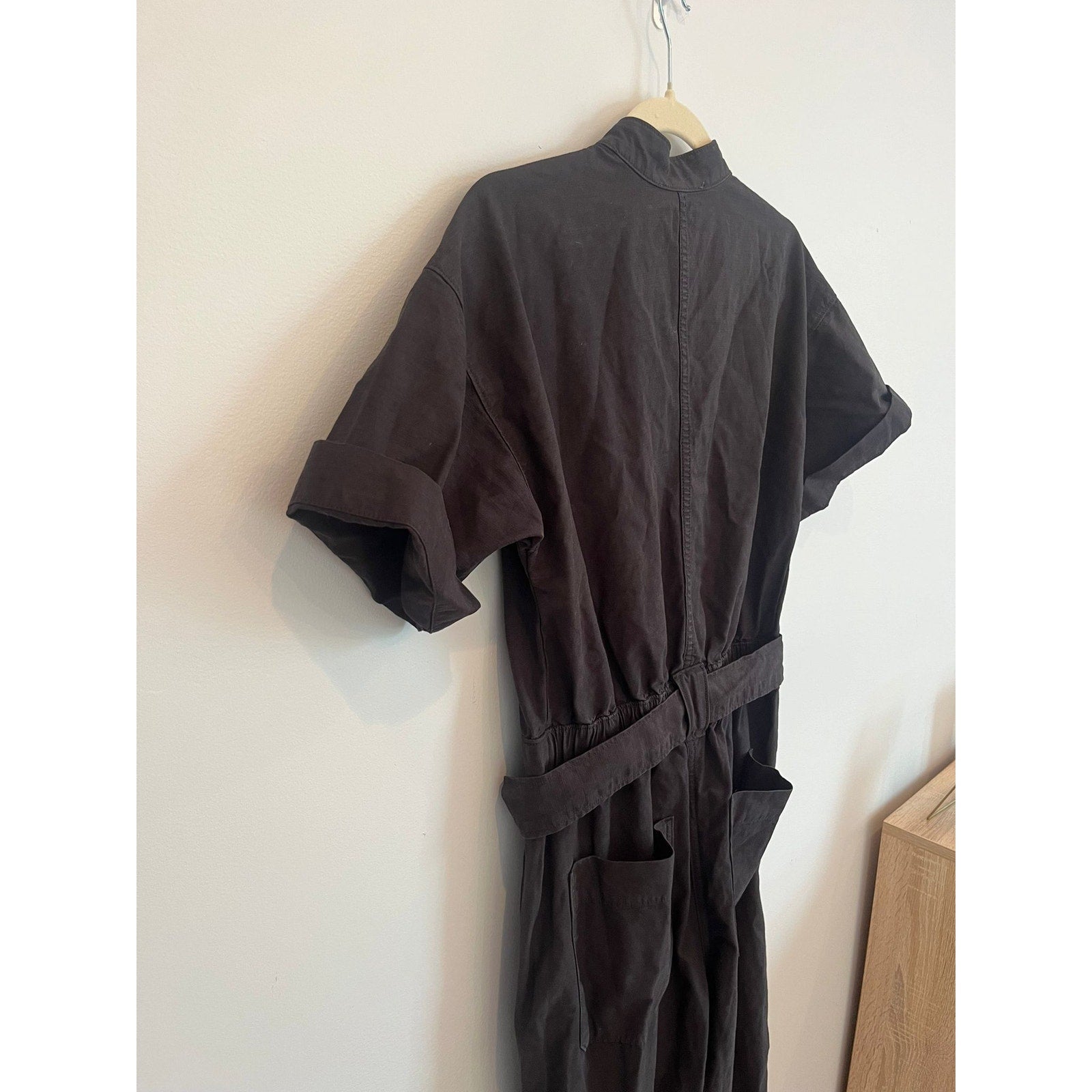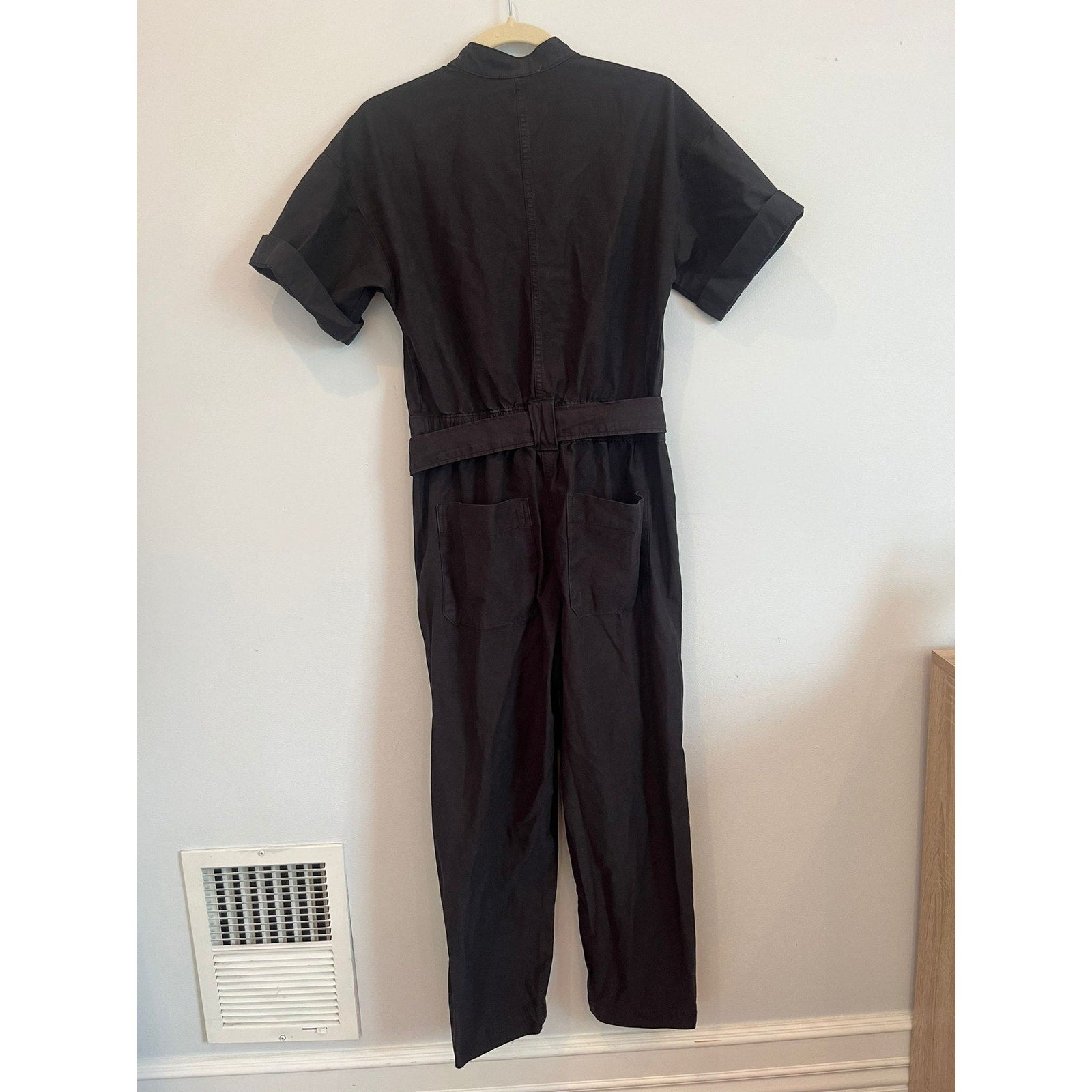 Everlane Utility Jumpsuit Women 00 Black Organic Cotton Short Sleeve Belted