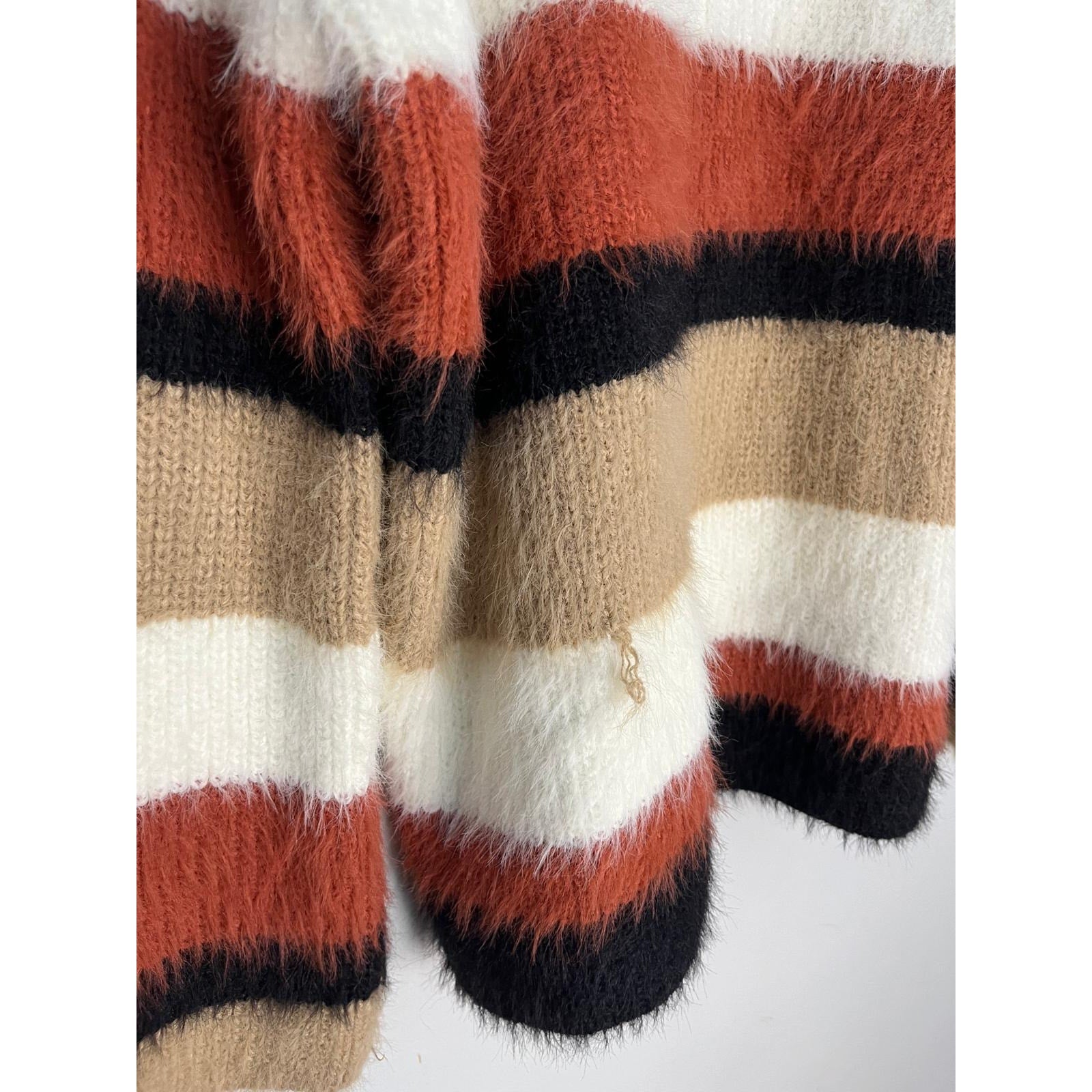 Fashion On Earth Striped Fuzzy Sweater Women S Multicolor Soft Knit Pullover