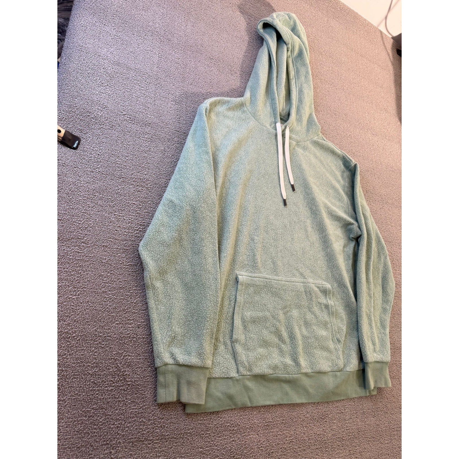 A plush hoodie from Feat’s BlanketBlend line in a soft light green fleece with a roomy kangaroo pocket and drawstring hood—perfect for lounging or casual layering.