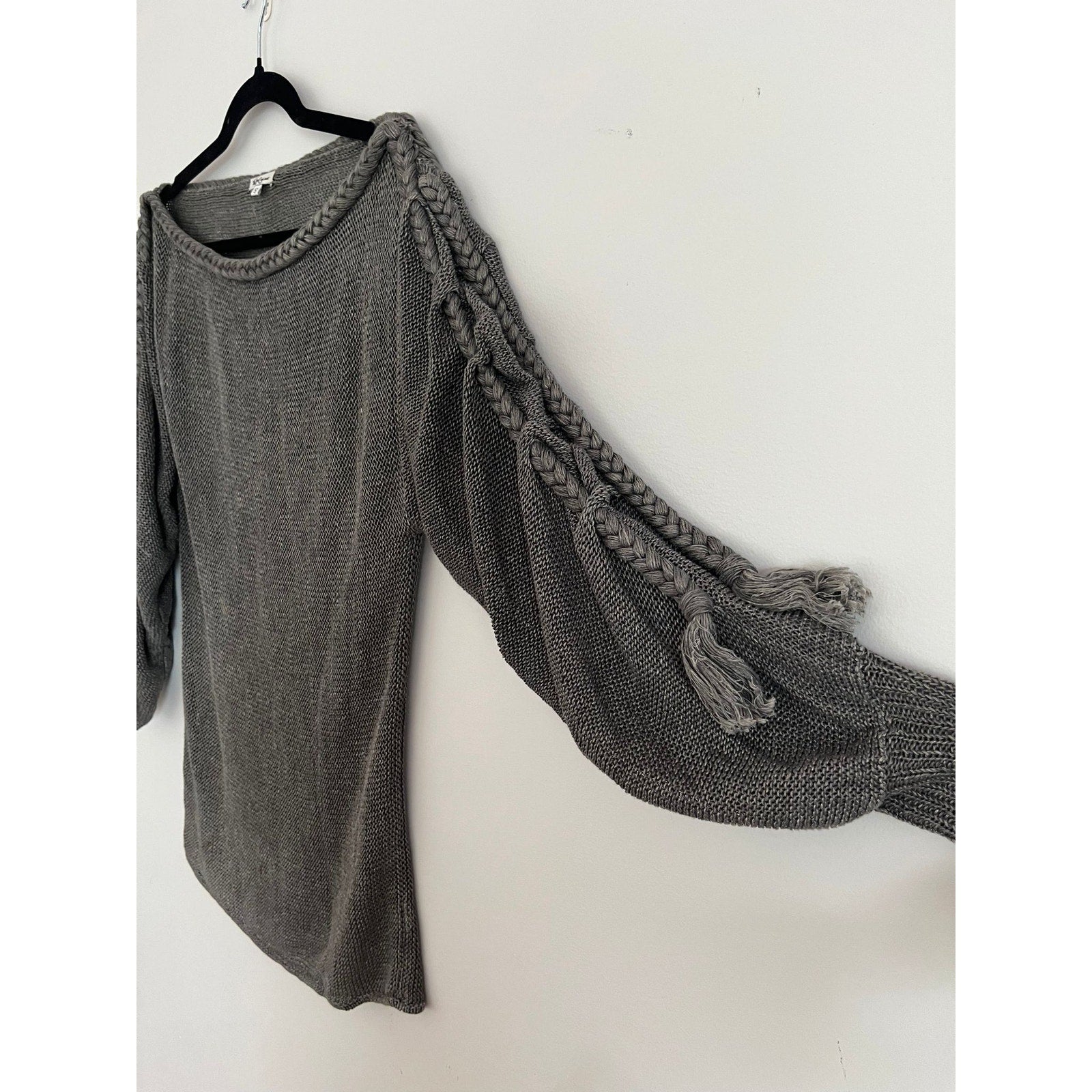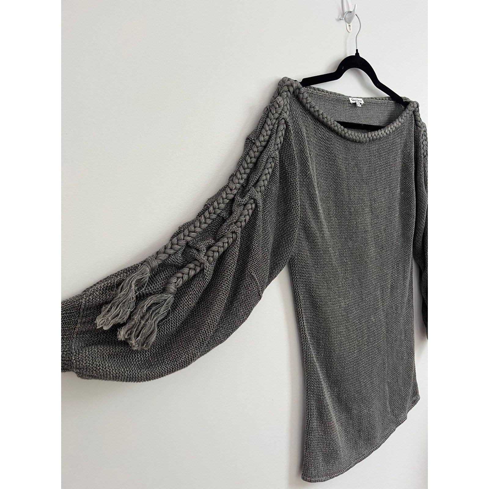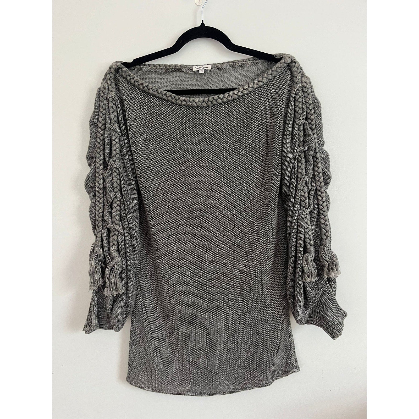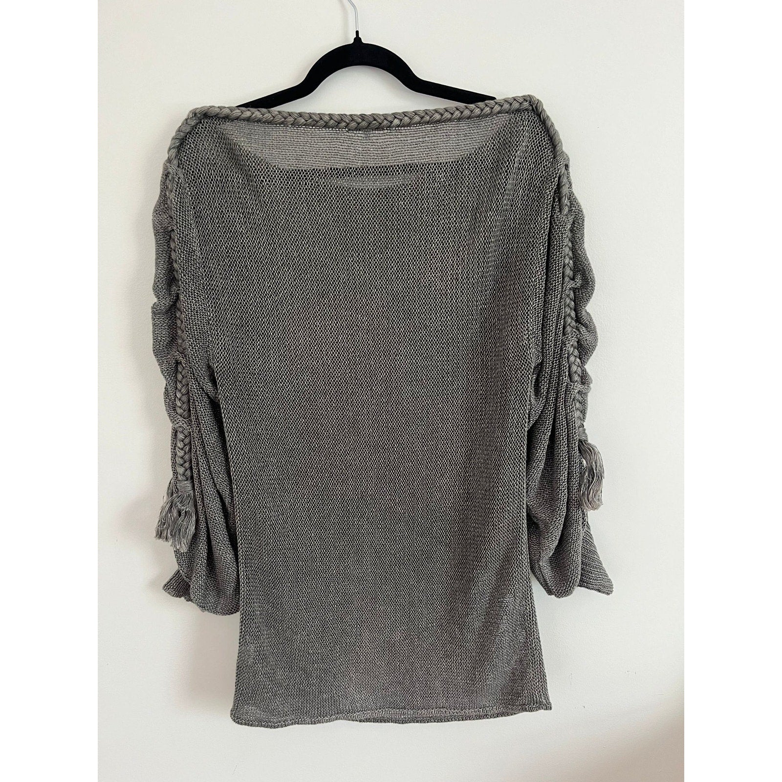 Foley + Corinna Sweater Women S Gray Knit Boatneck Braided Sleeve Boho Pullover