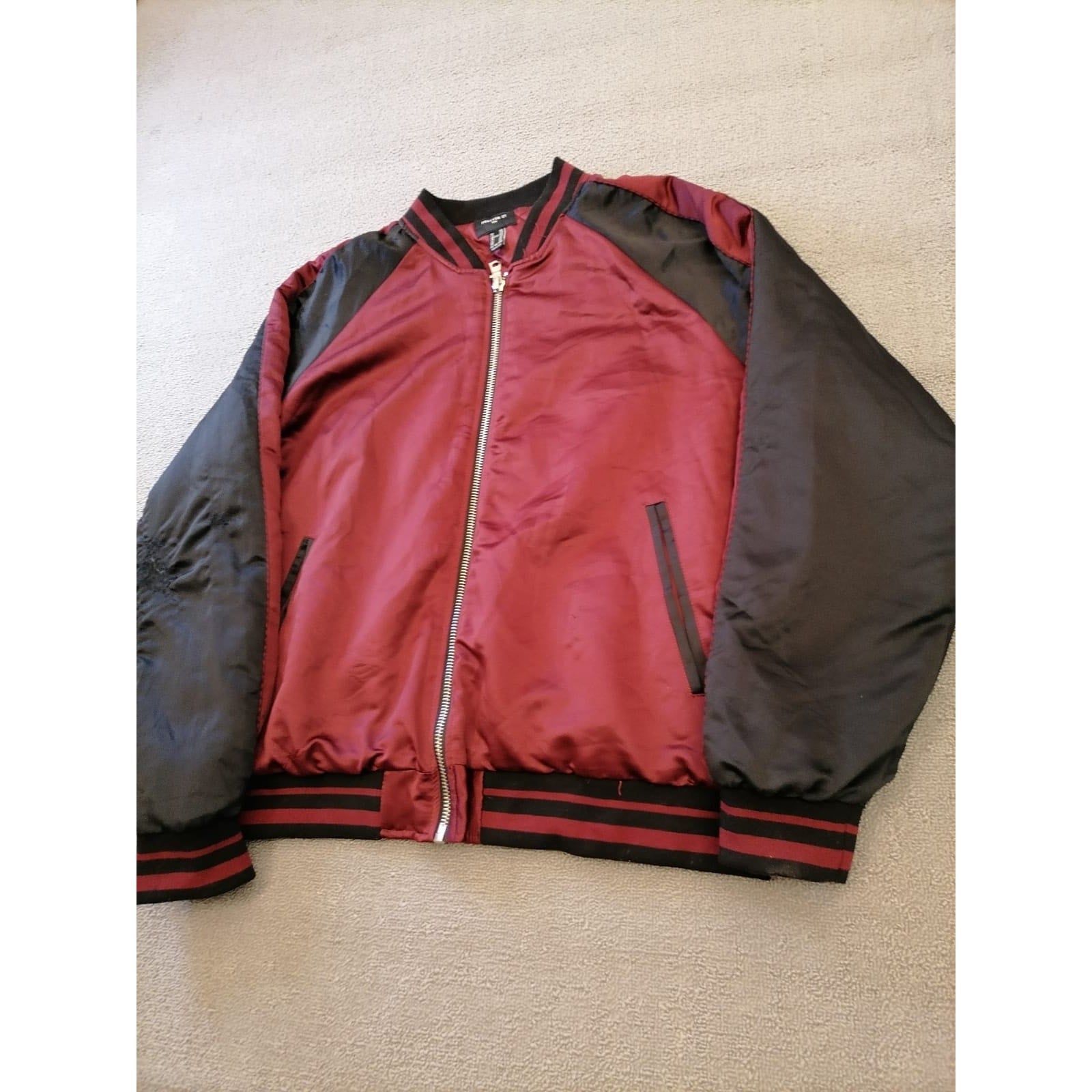 Forever 21 Men XXL Maroon Black Bomber Jacket Stylish Casual Everyday Outerwear