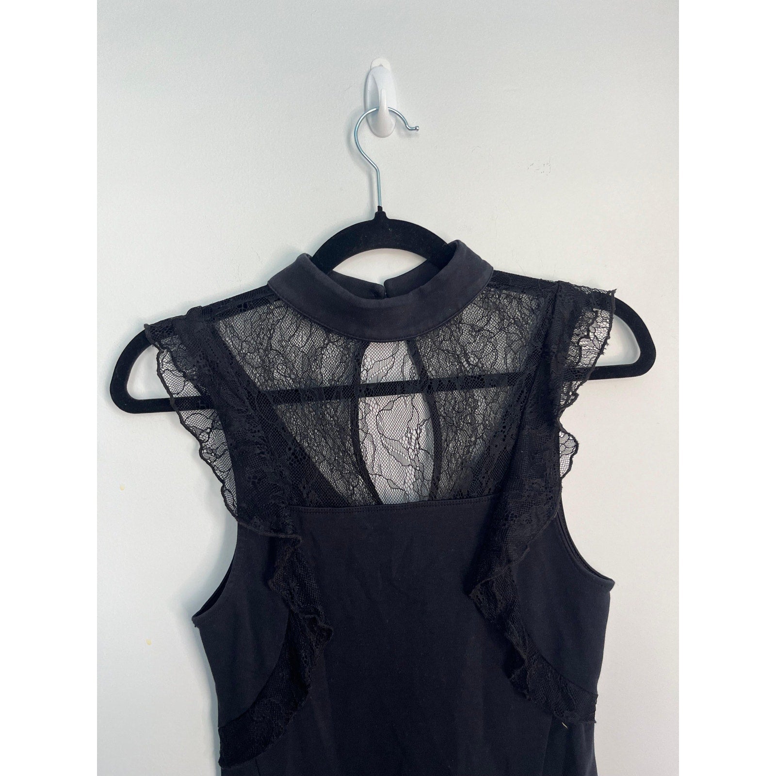 Free People Black Lace Back Sleeveless Mini Dress Women XS Gothic Mesh Detail