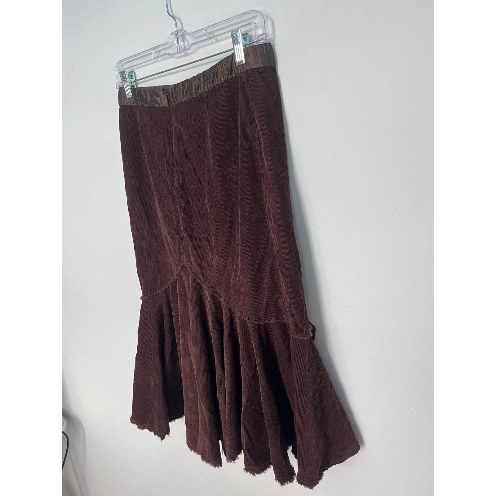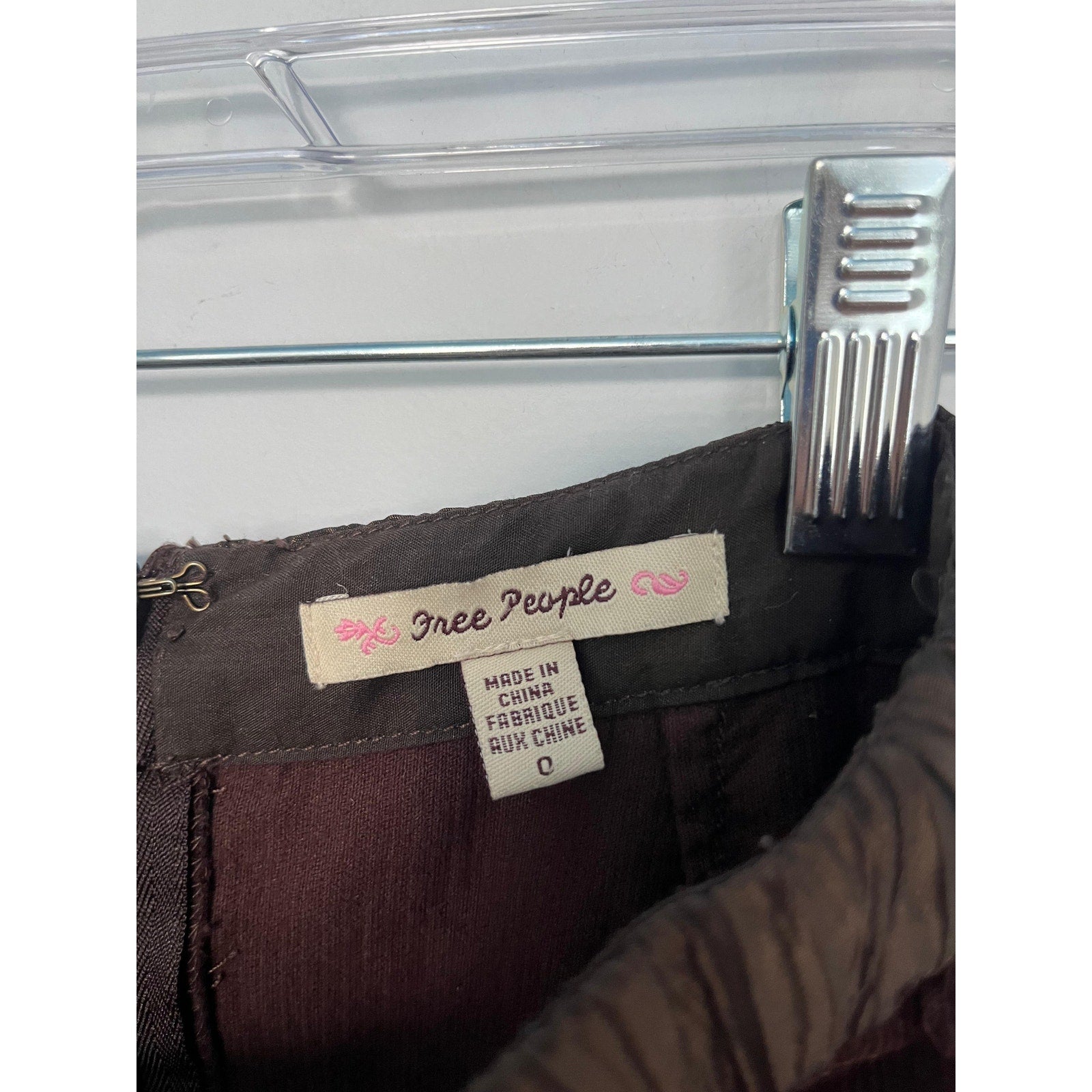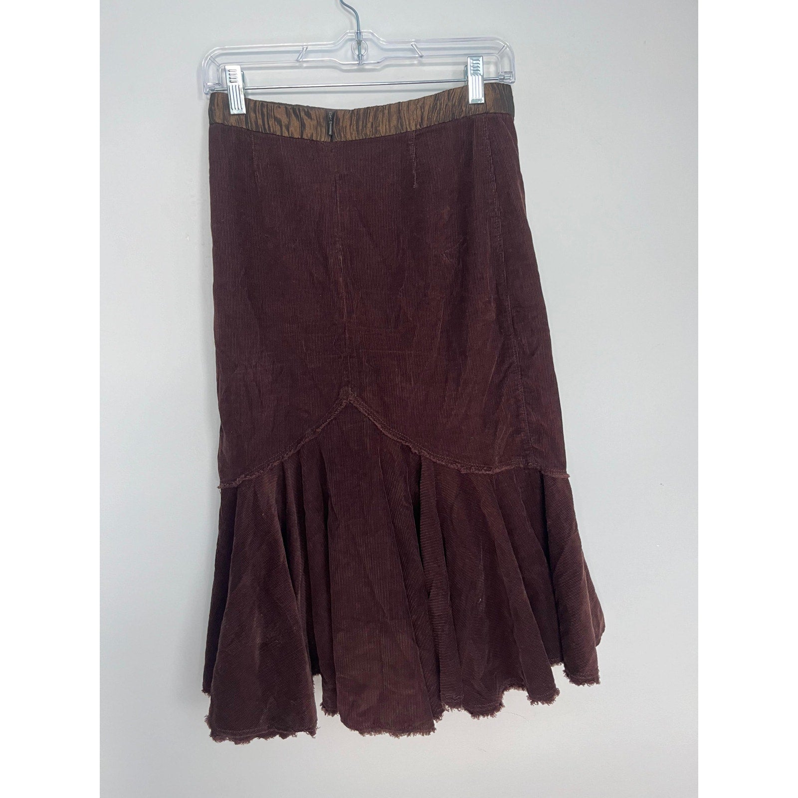 Free People Corduroy Skirt Women 0 Brown Floral Embroidered Ruffle Hem Boho