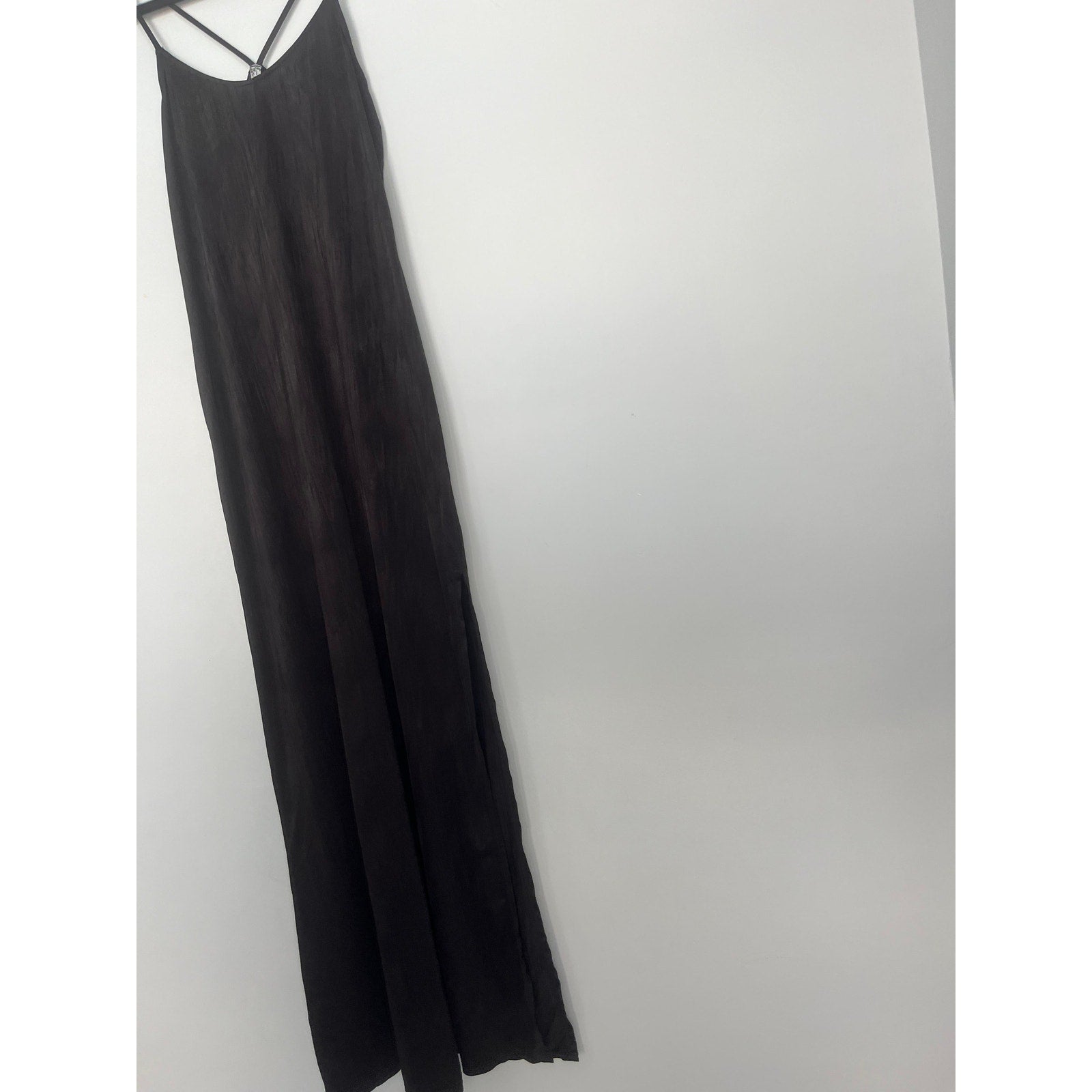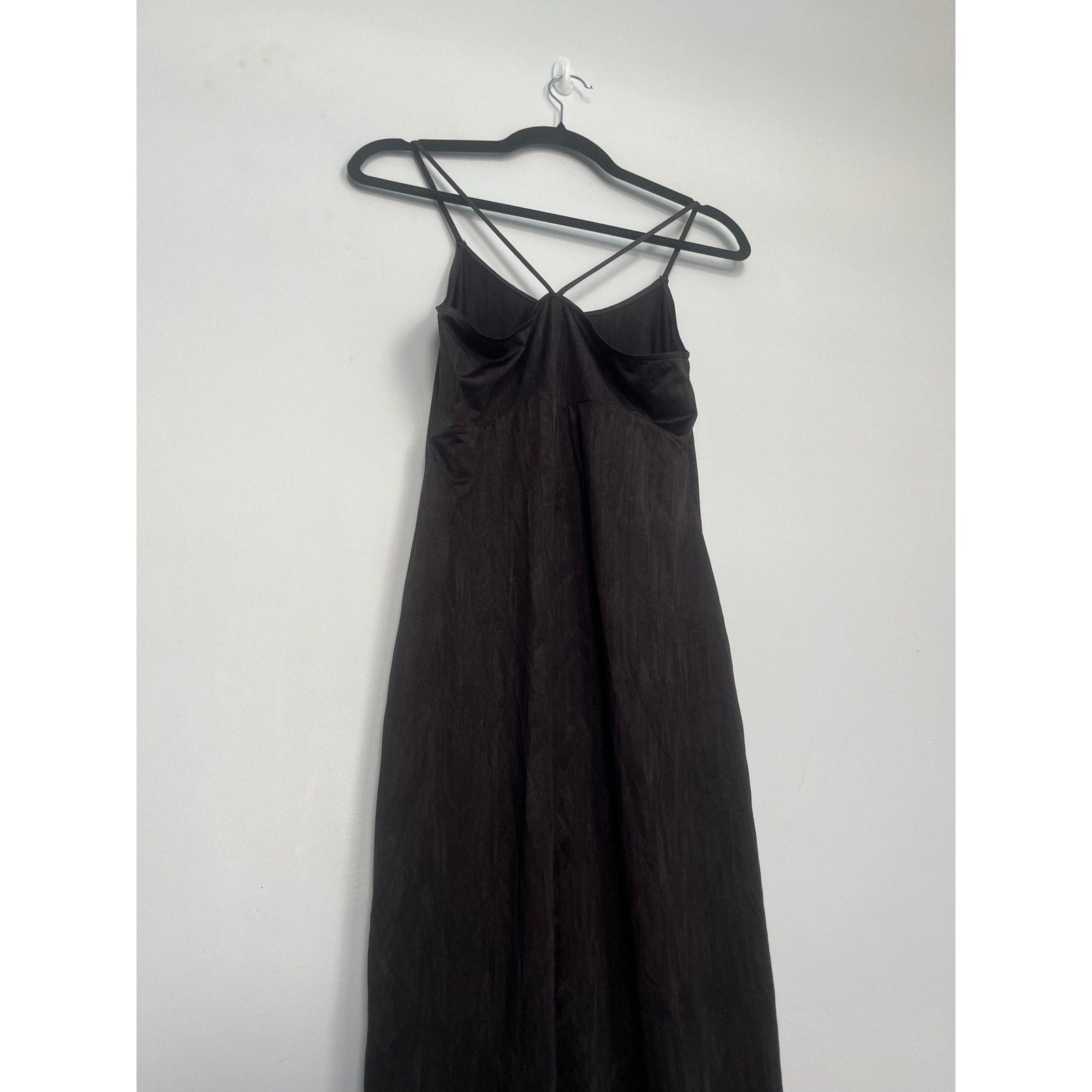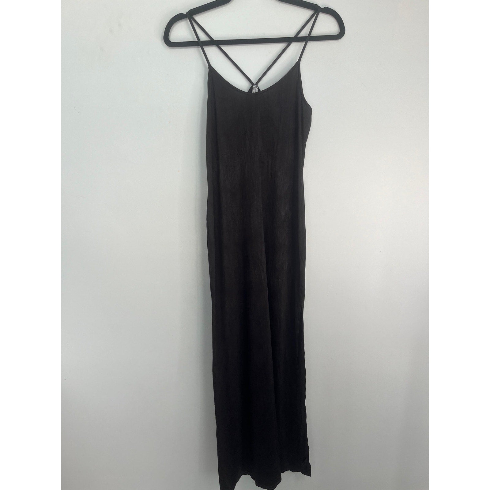 Free people Slip Dress Women XS Black Satin Crinkle Strappy Maxi