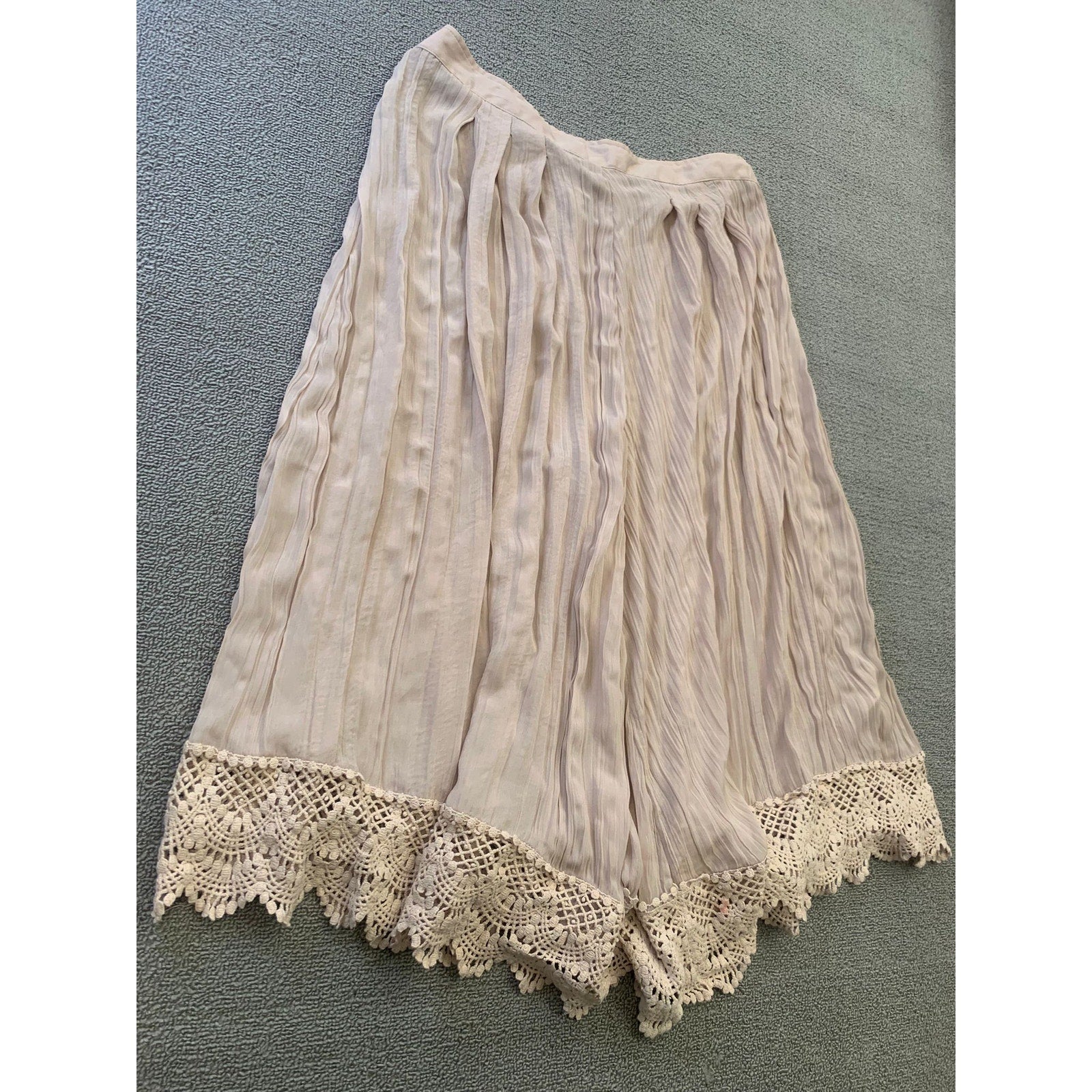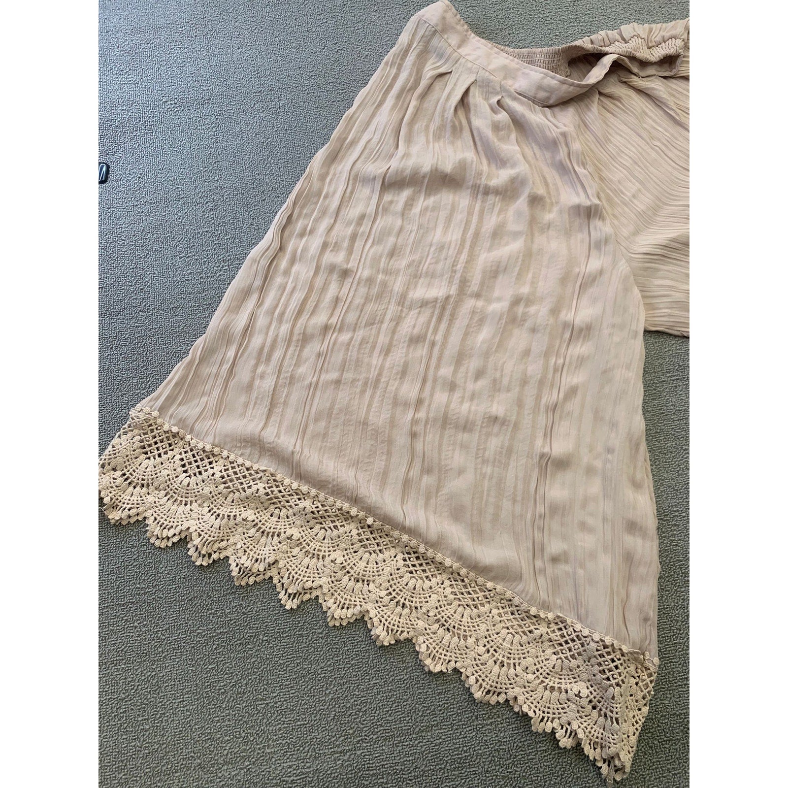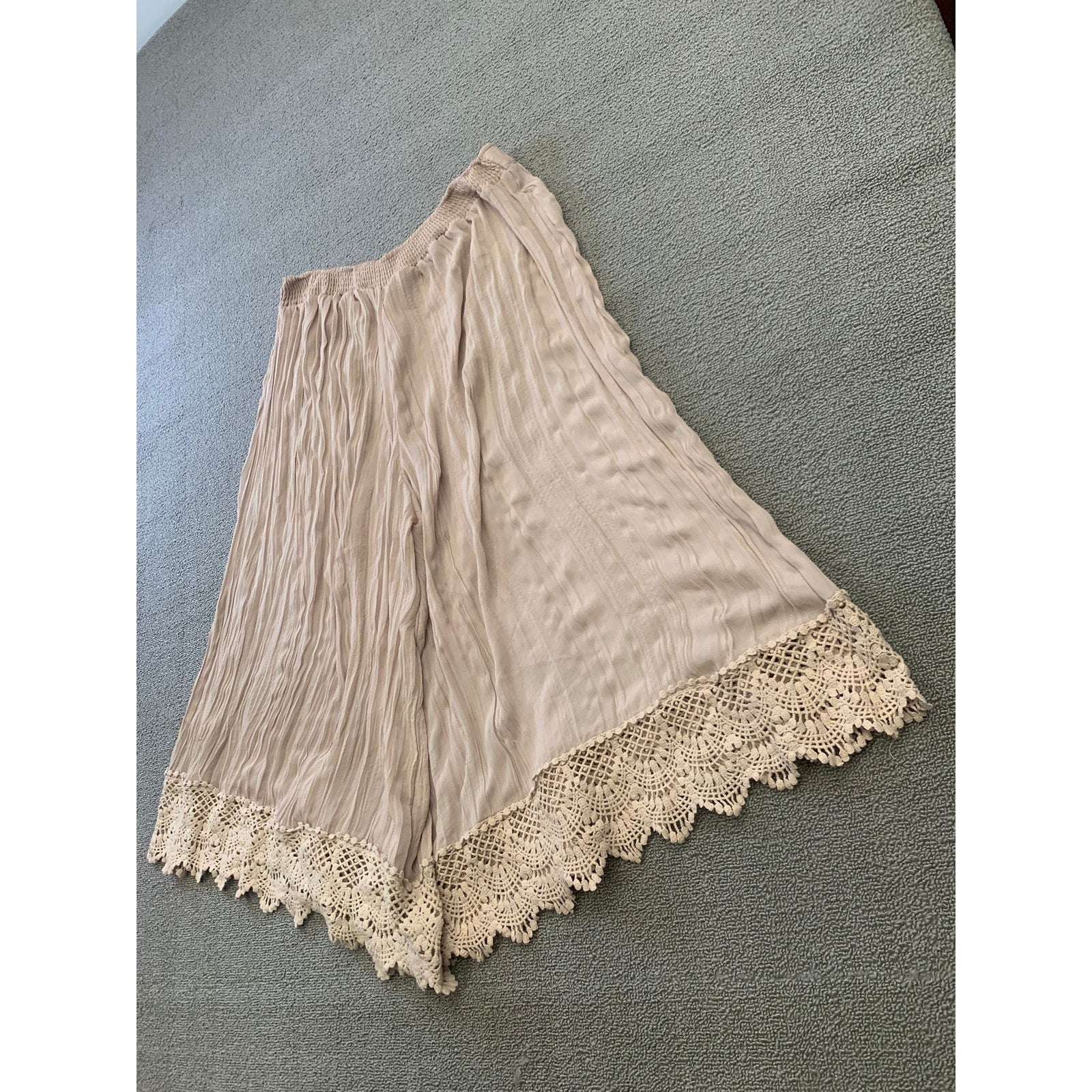 Free People Women's L Flowy Shorts Beige Cropped Culottes Crochet Lace Hem