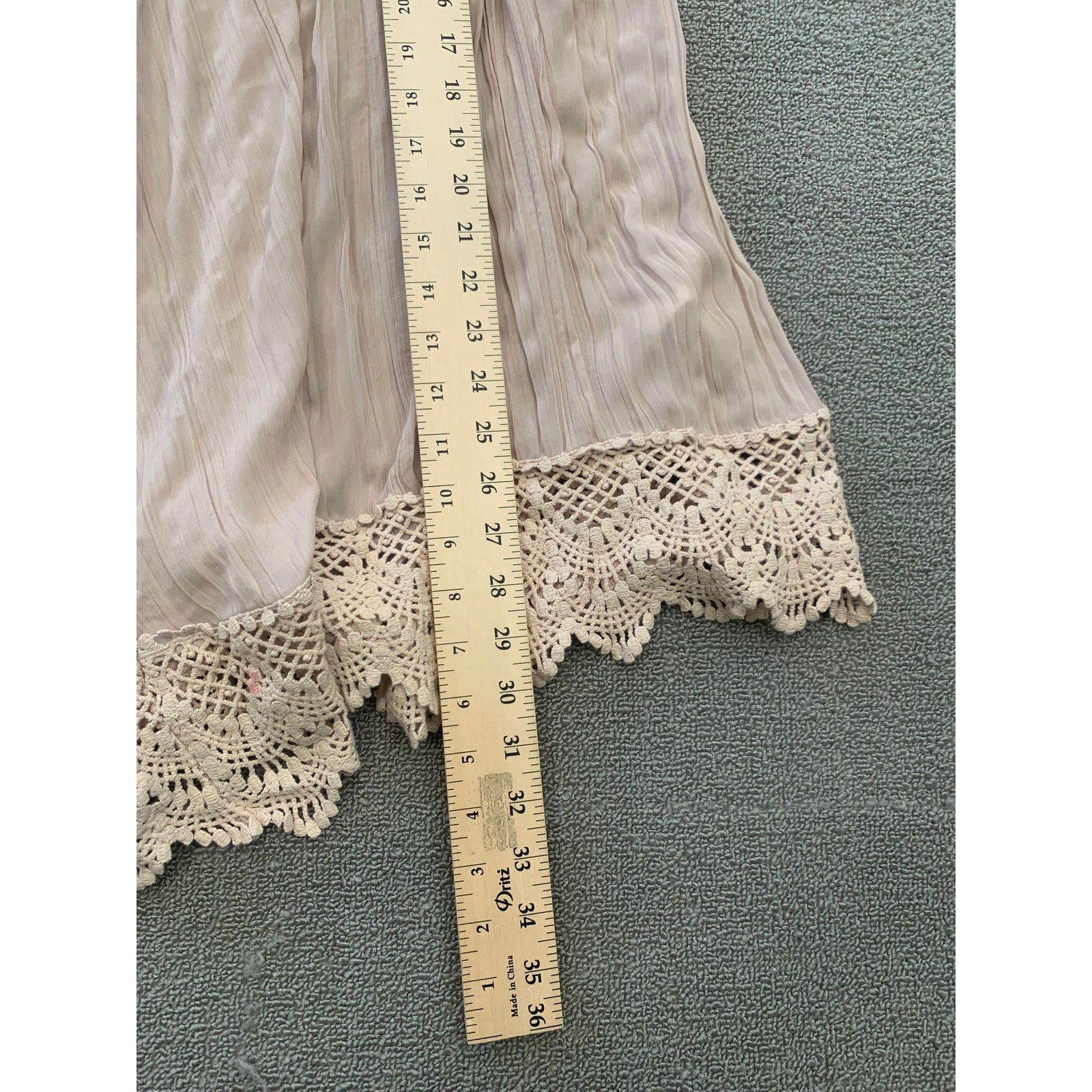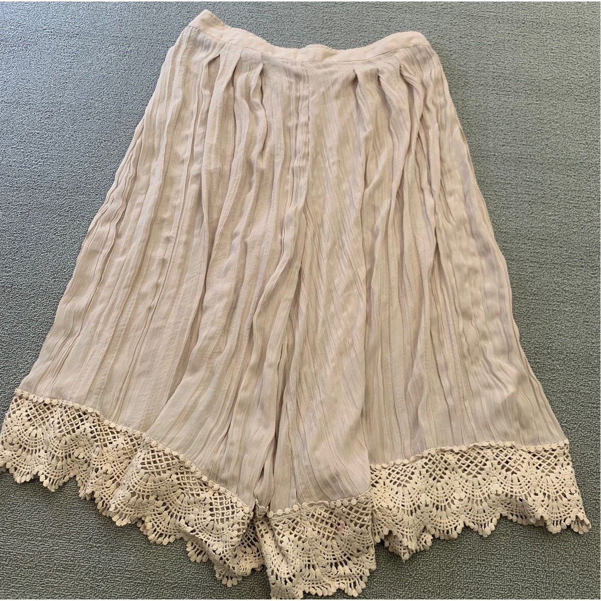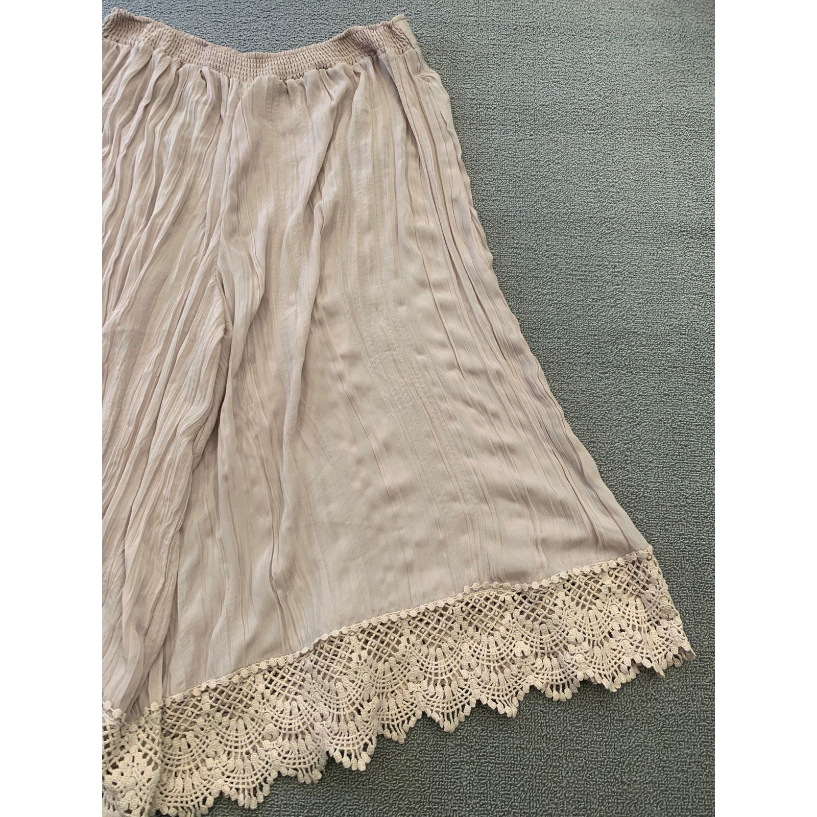 Free People Women's L Flowy Shorts Beige Cropped Culottes Crochet Lace Hem