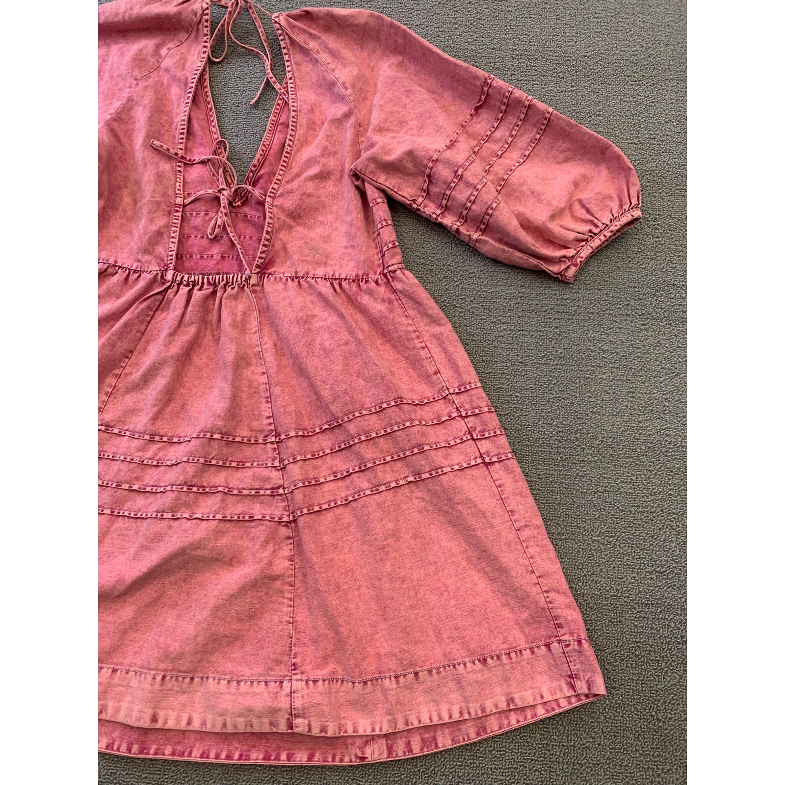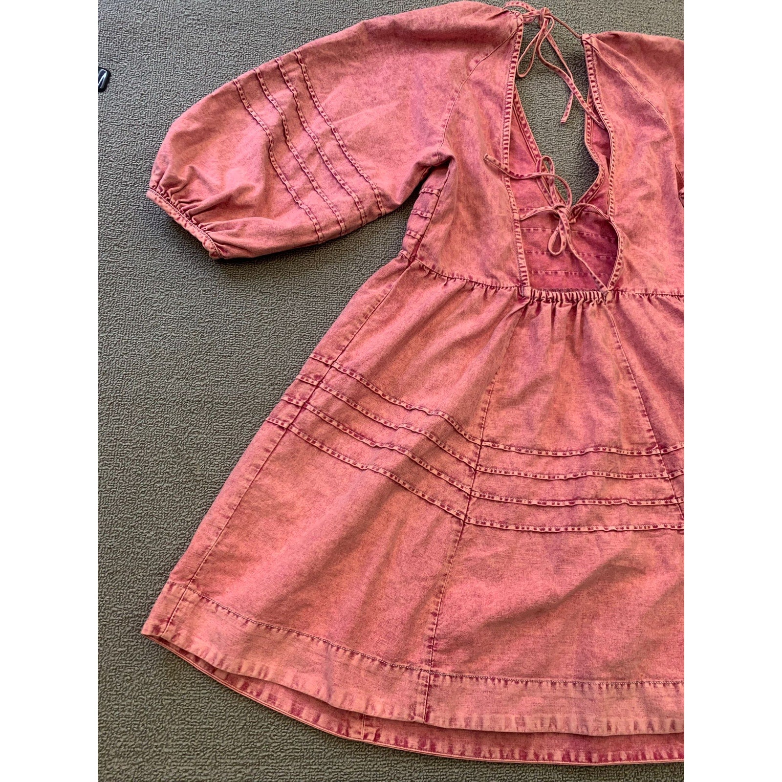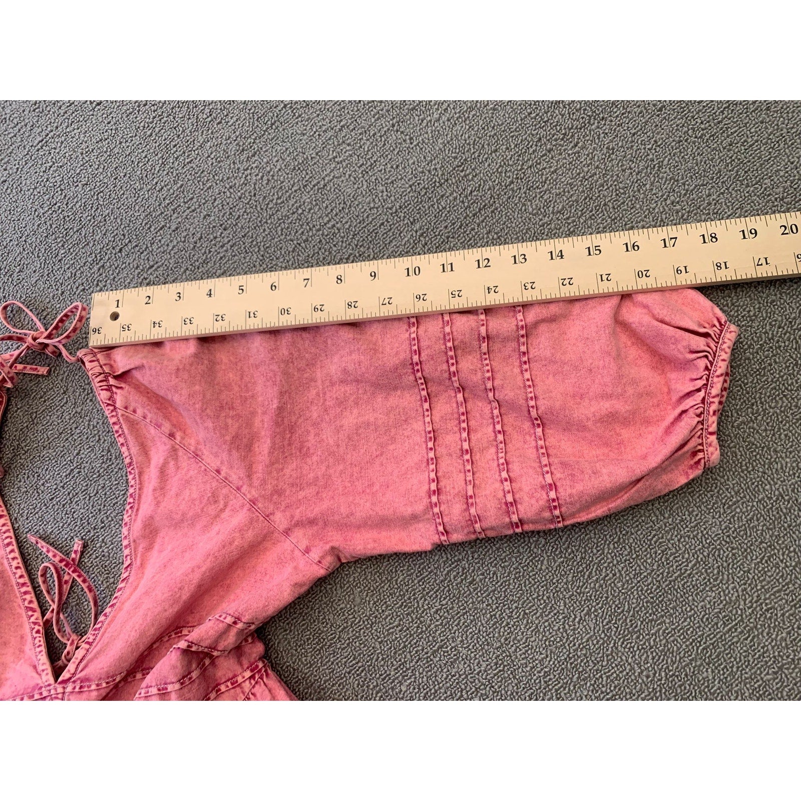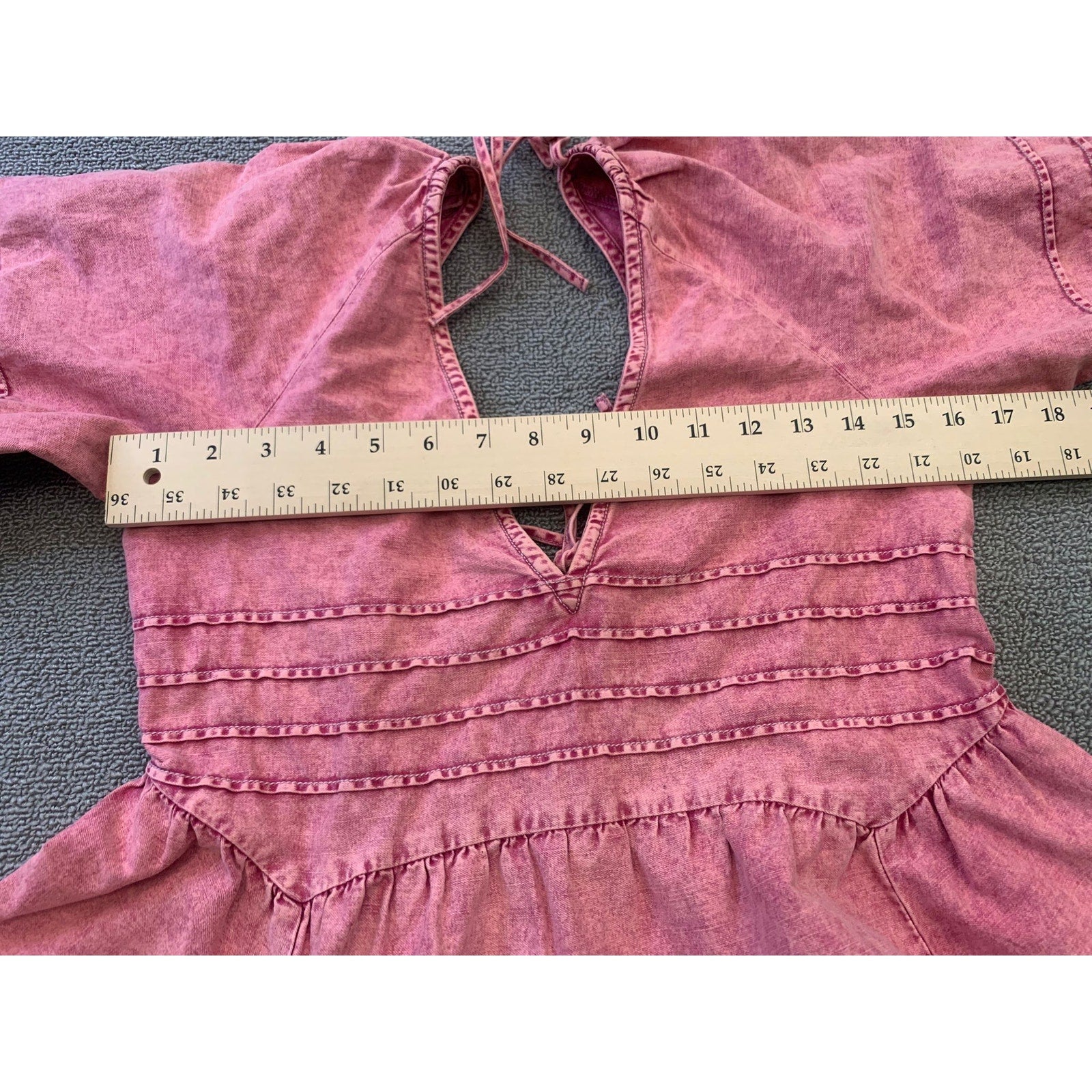 Free People Women's XS Petite Pink Acid Wash Mini Dress Tie Back