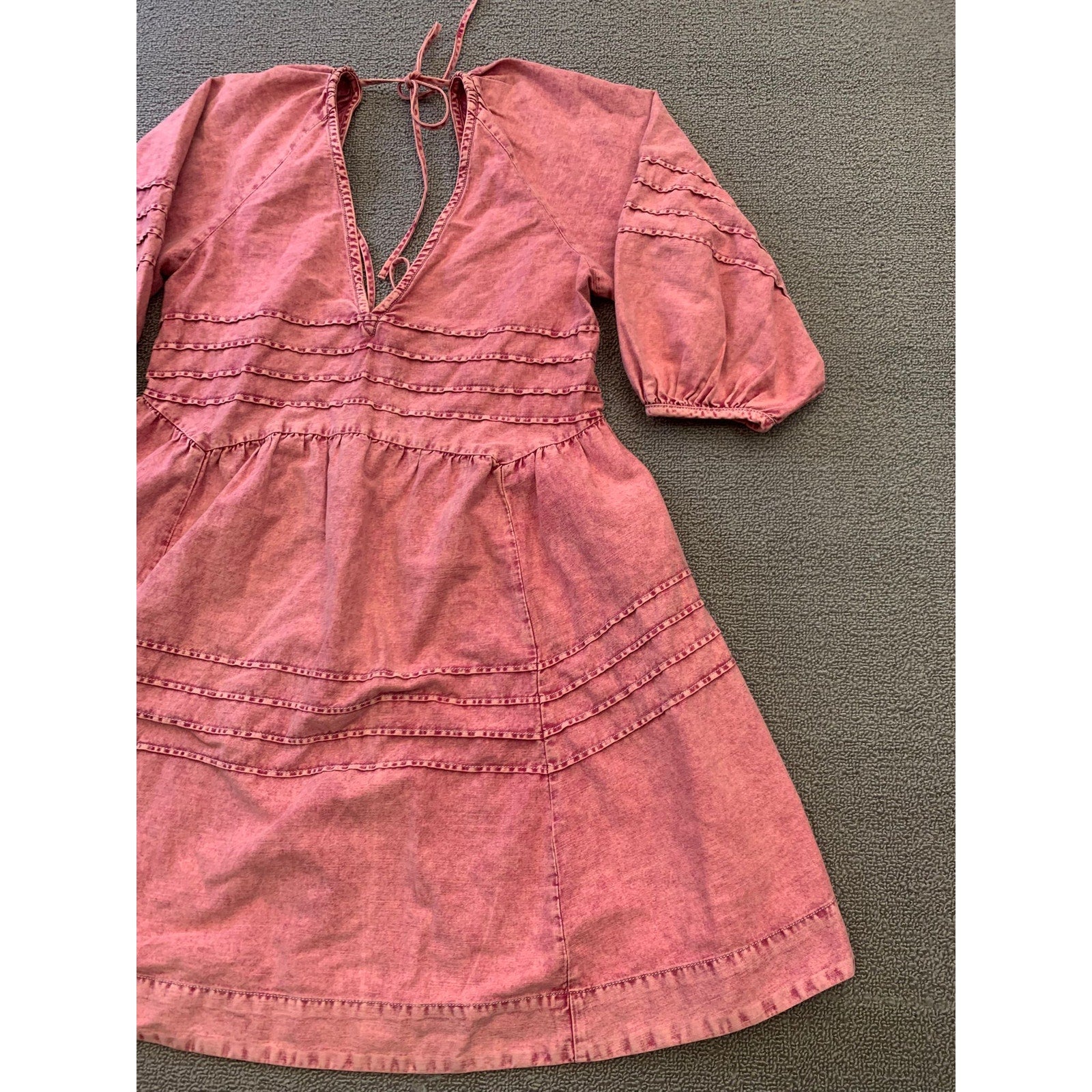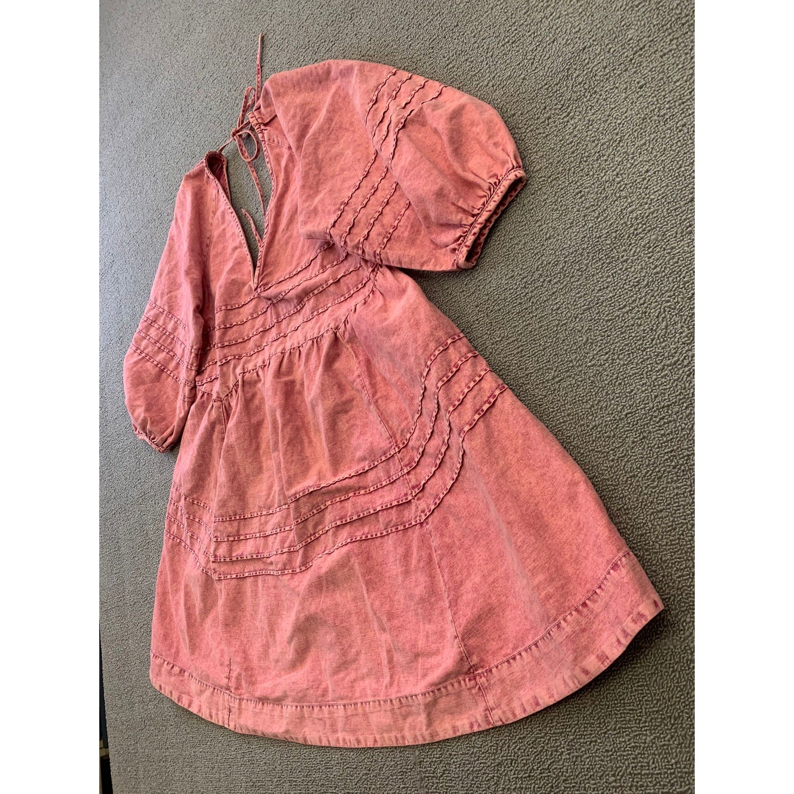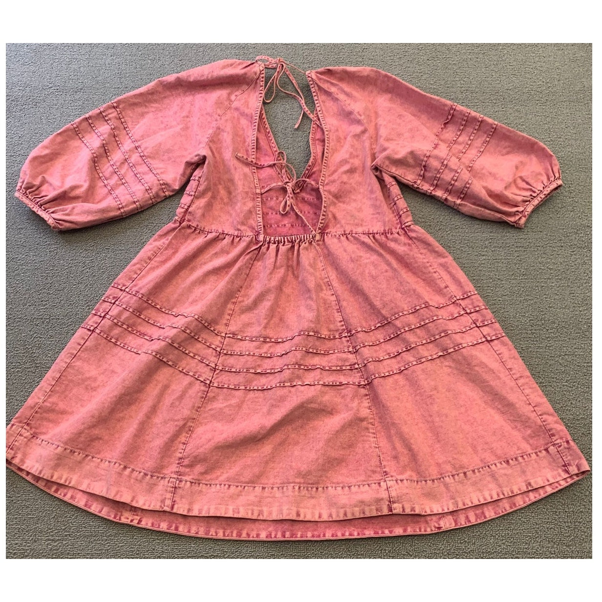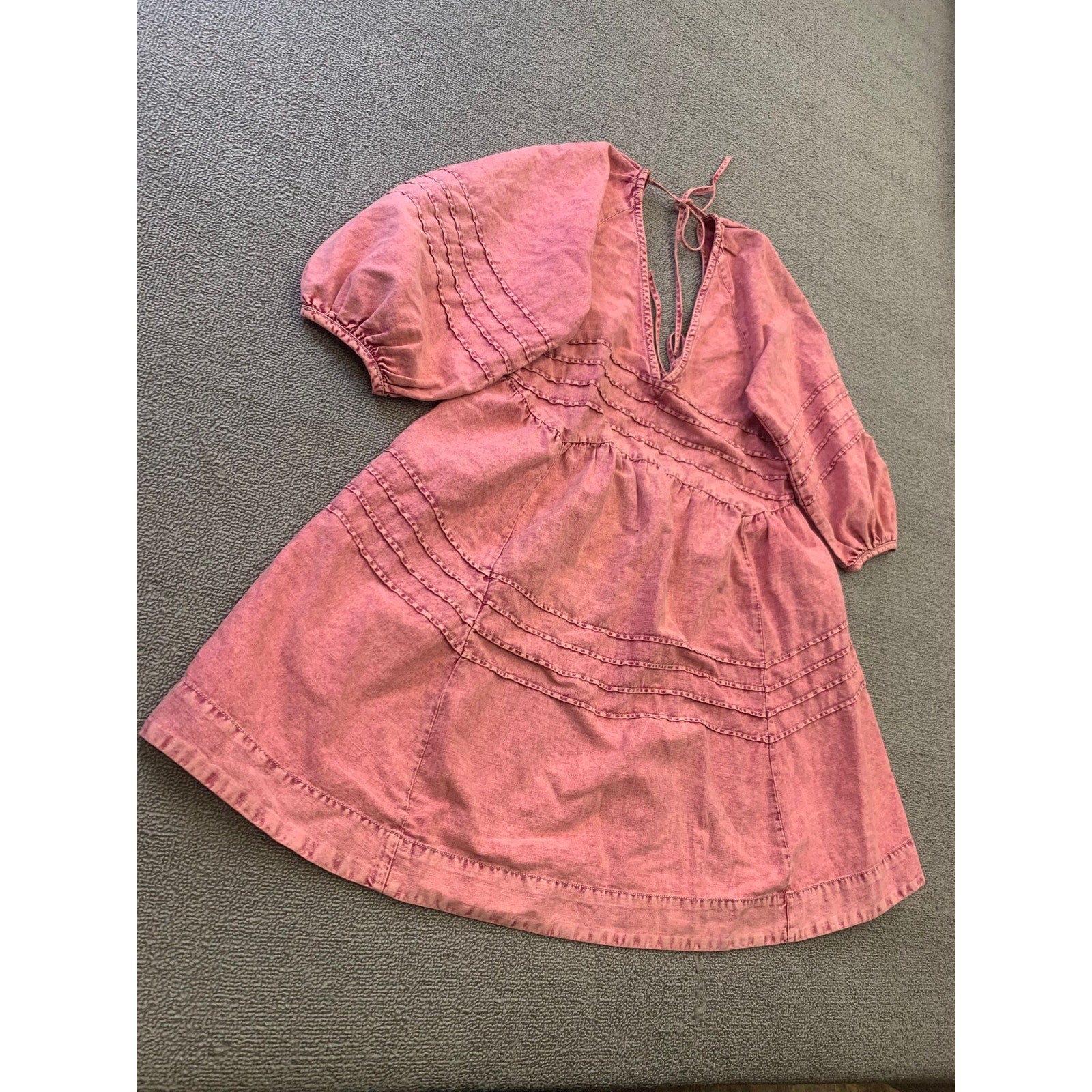 Free People Women's XS Petite Pink Acid Wash Mini Dress Tie Back