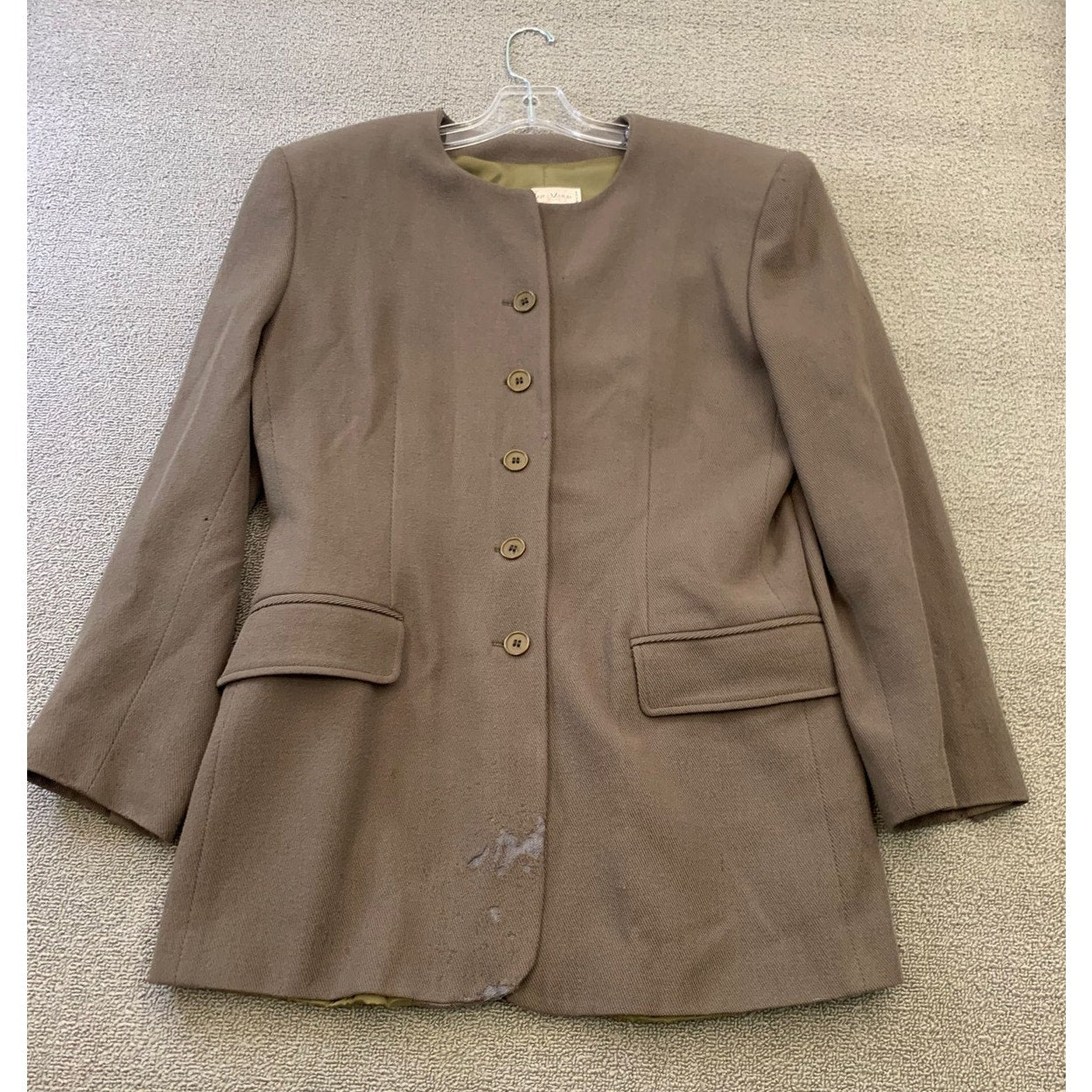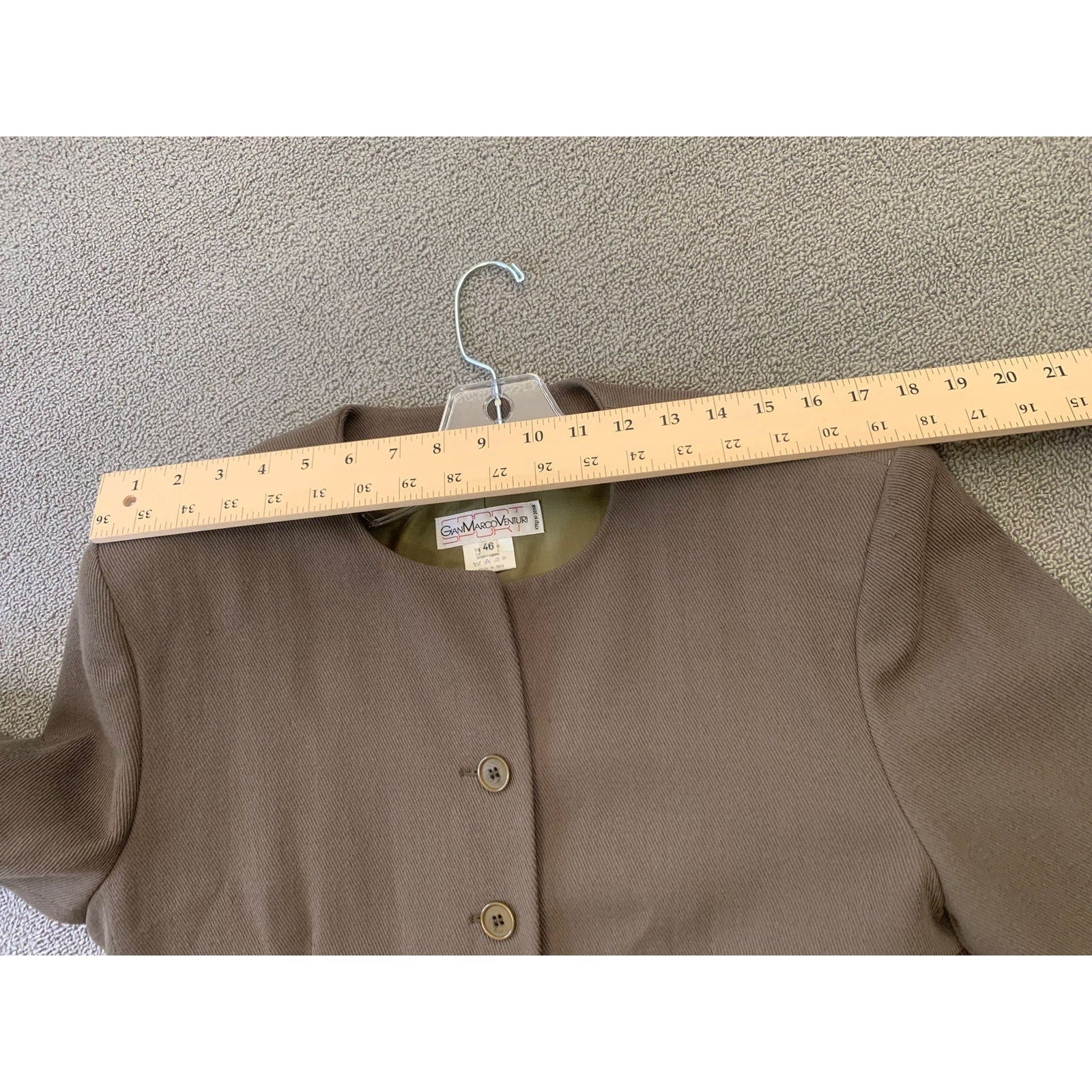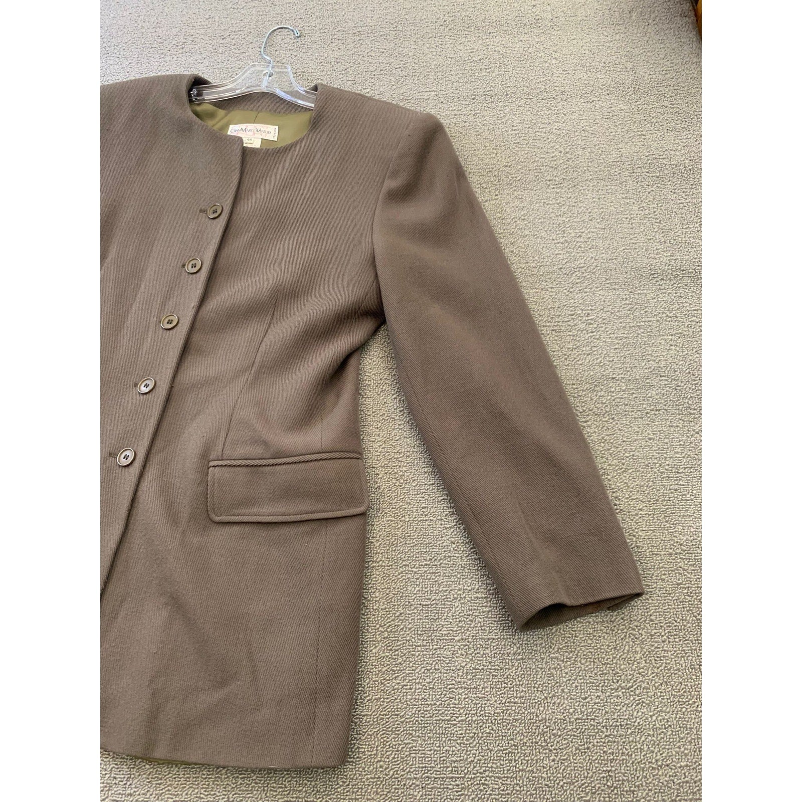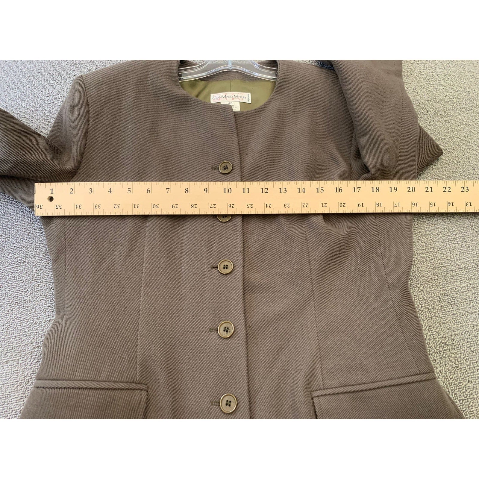 An elegant Gian Marco Venturi women’s blazer crafted in Italy—featuring a clean round neckline, five-button front, flap pockets, and fully lined wool construction. Timeless design with a tailored, minimalist silhouette.
