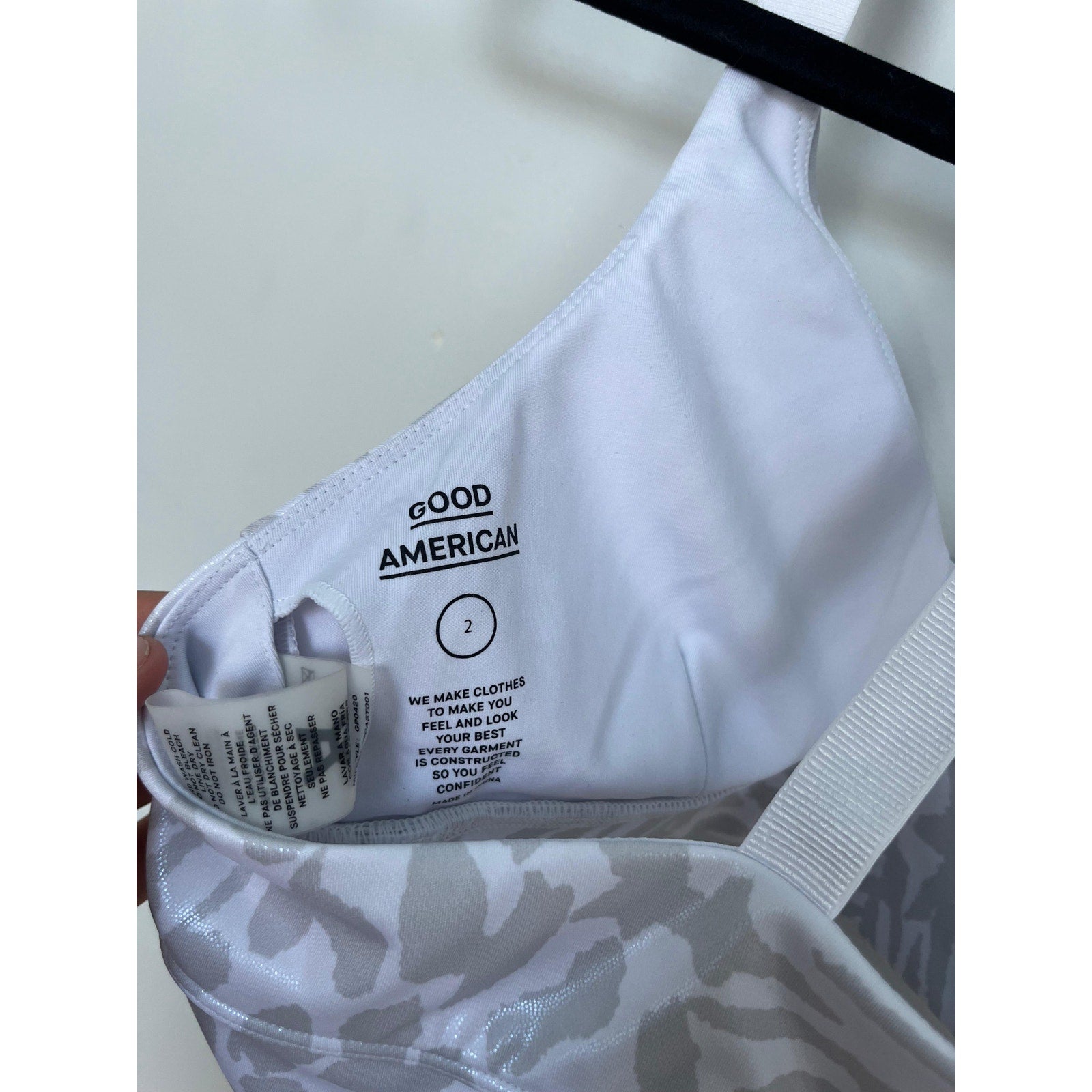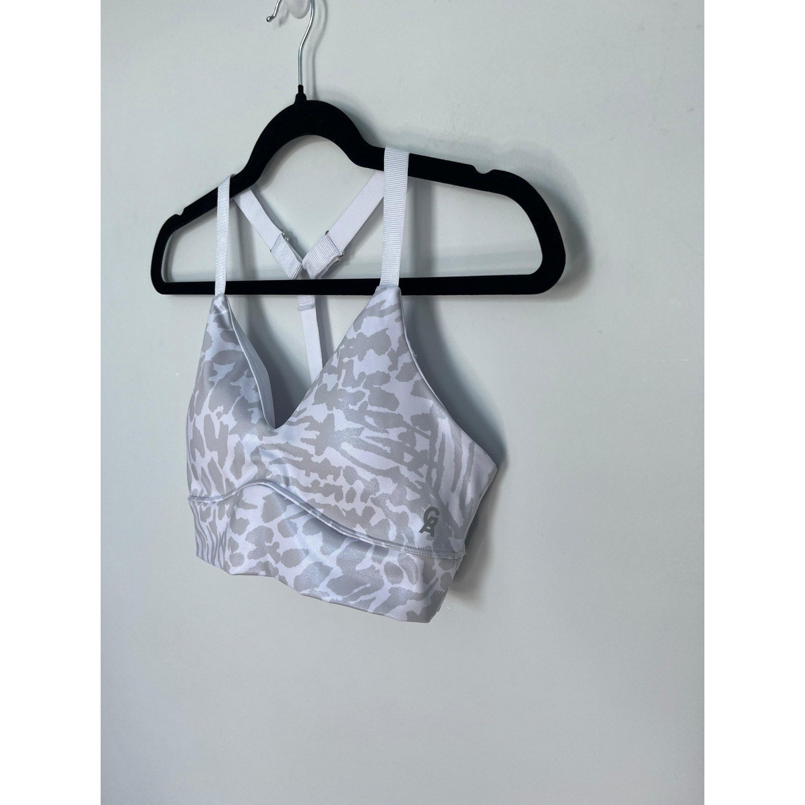 Good American Sports Bra Women Size 2 White Leopard Print Stretch Crossback