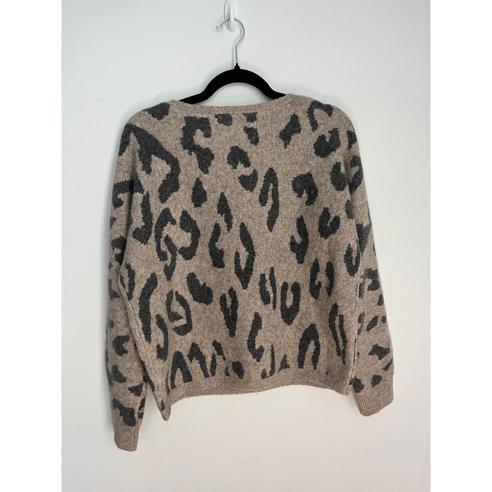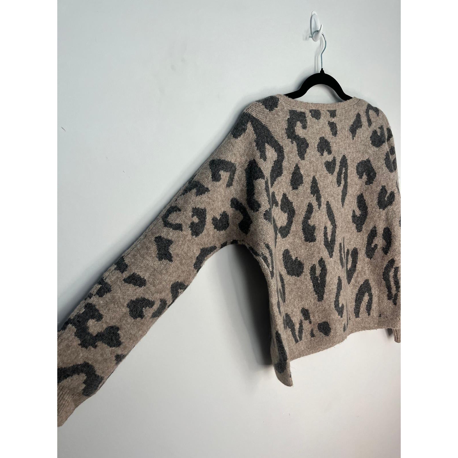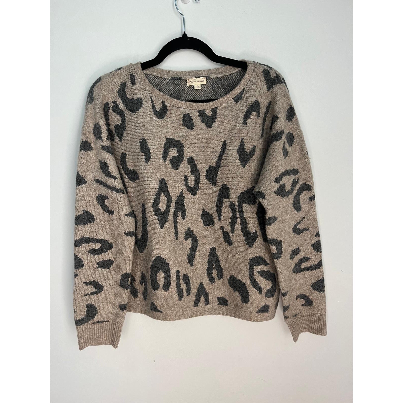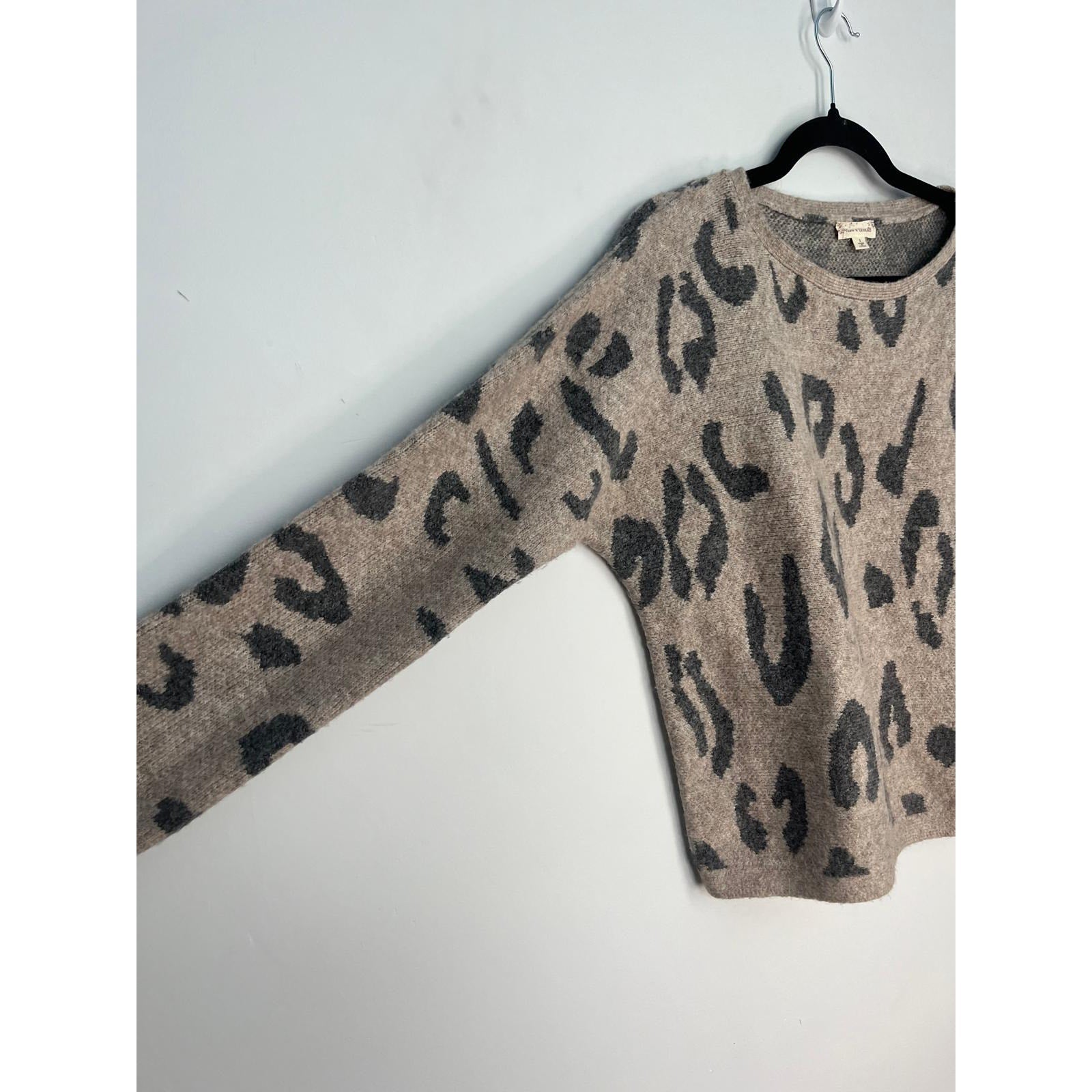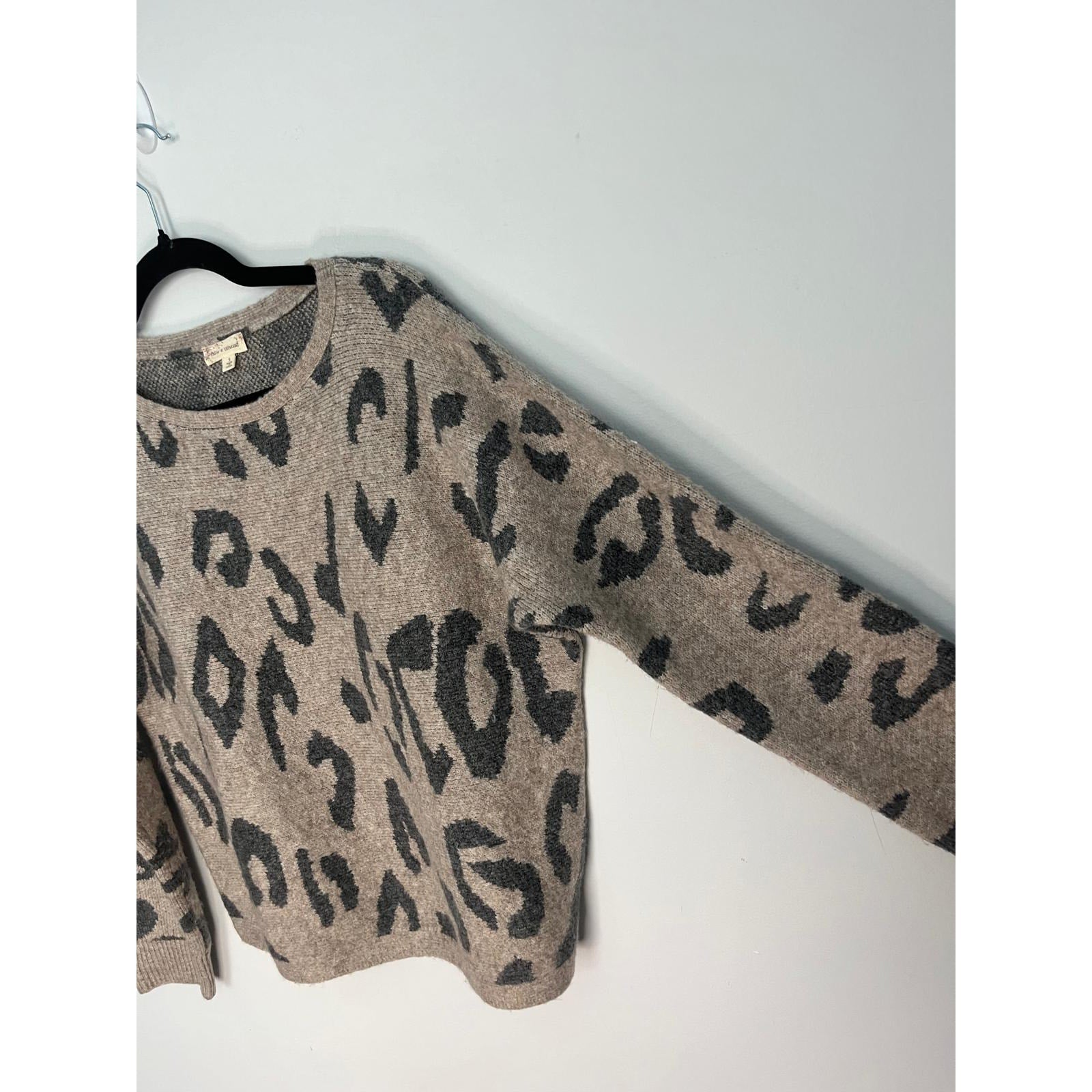 Hem & Thread Leopard Print Sweater Women Small Taupe Gray Pullover Fuzzy Knit