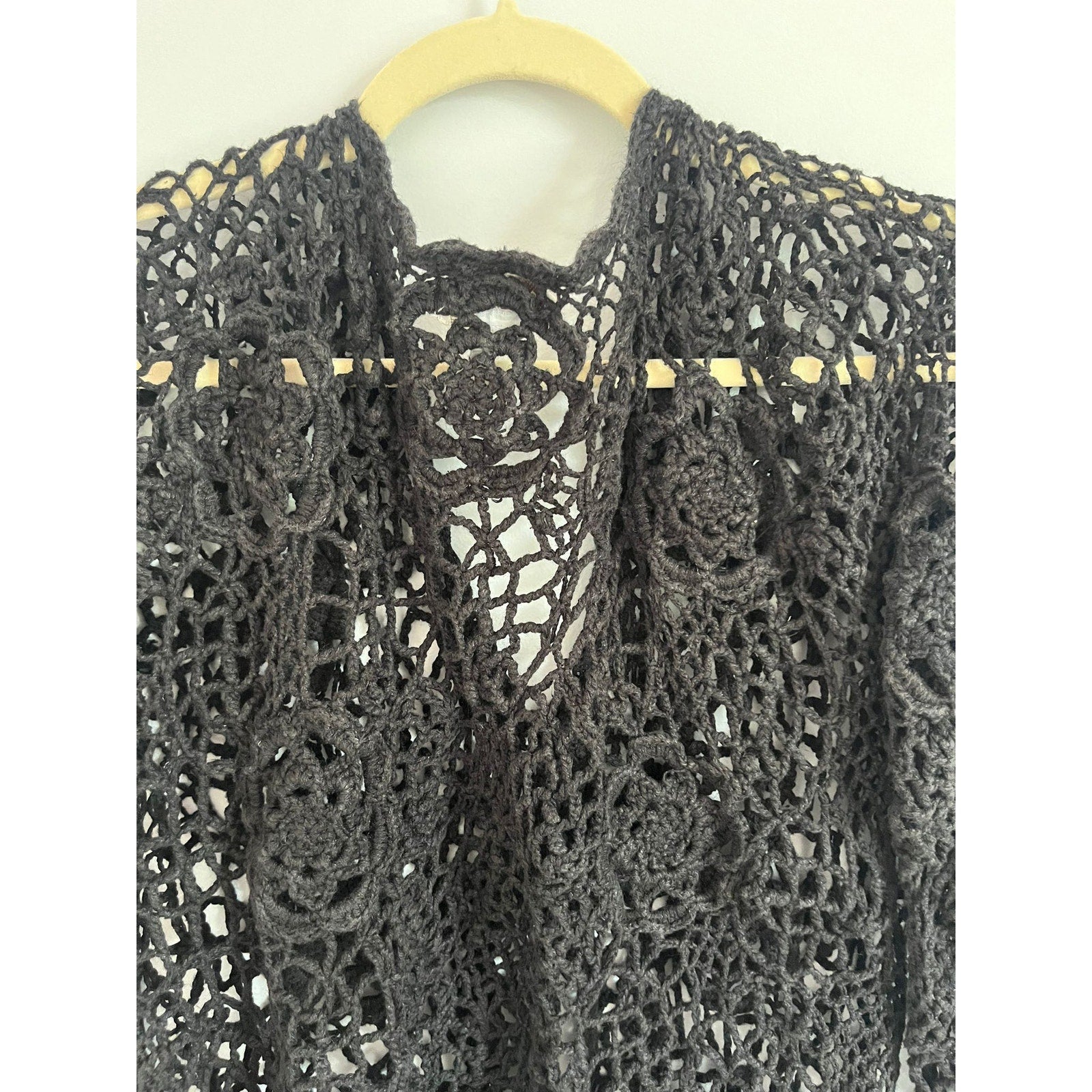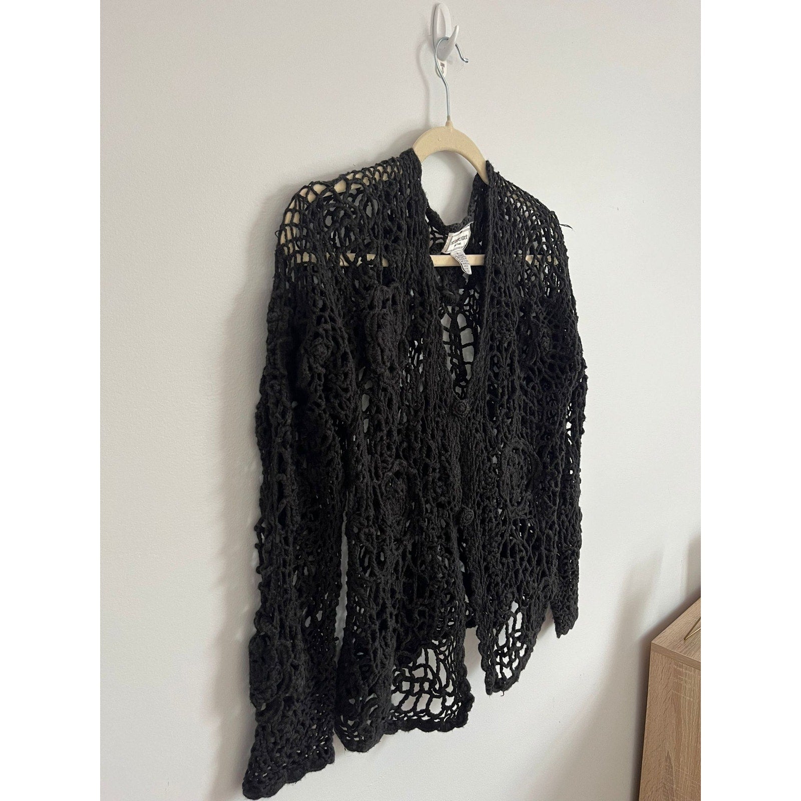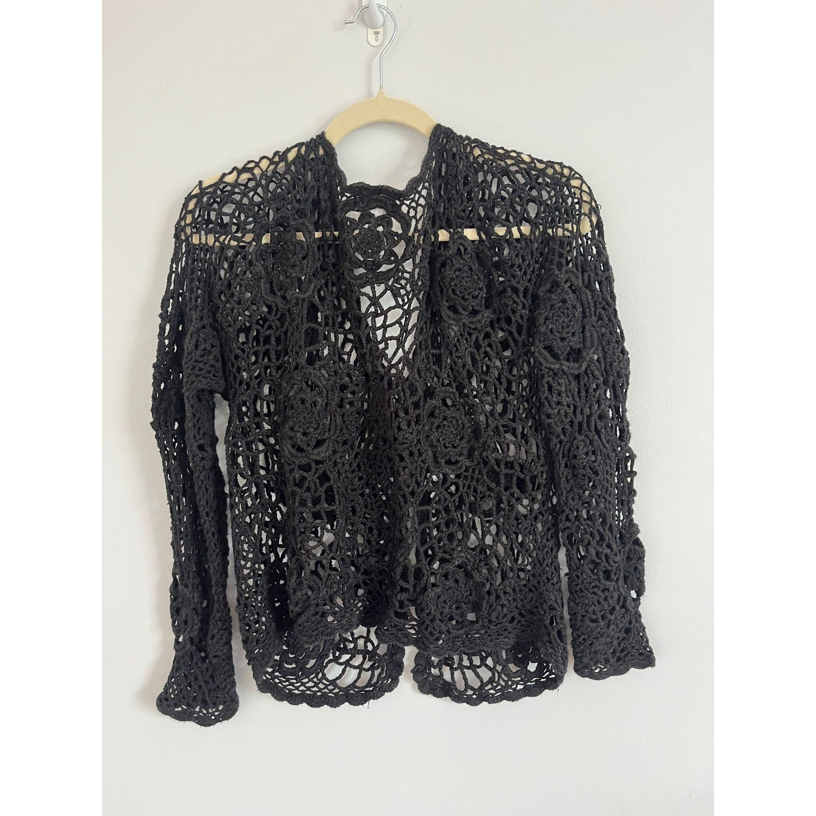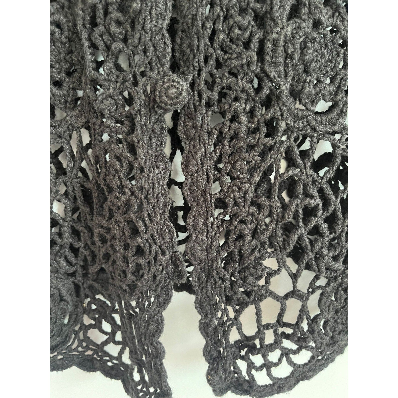 Henri Bendel Cardigan Women Size M Black Open Crochet Knit Button Front Vintage