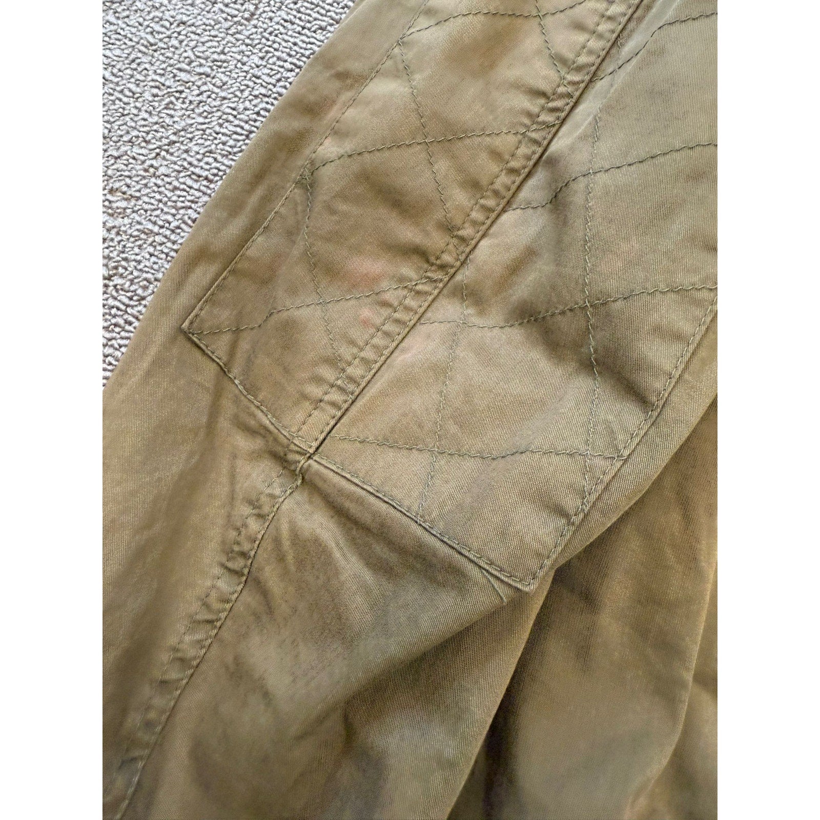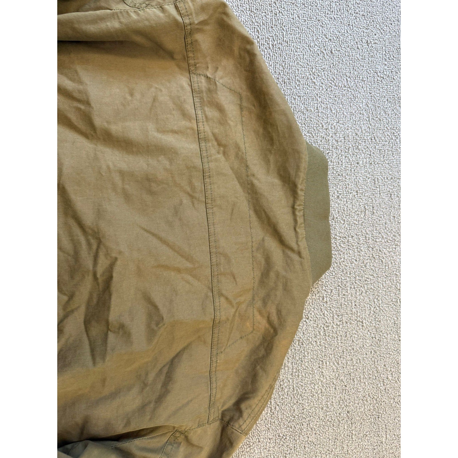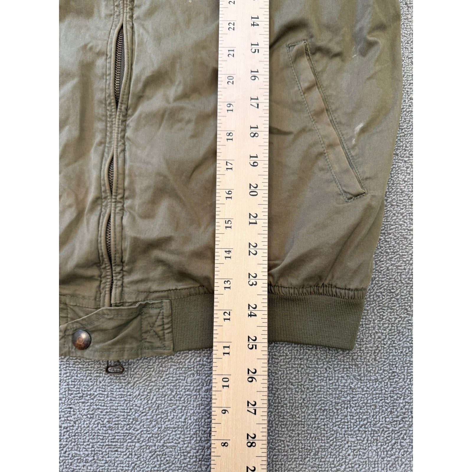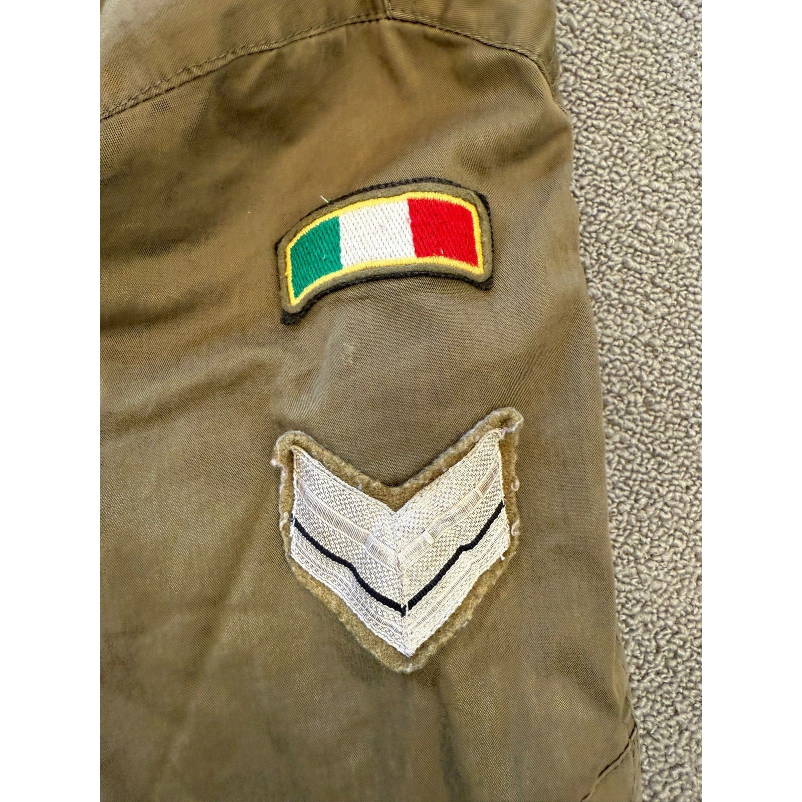 A vintage olive green bomber jacket by History Repeats, designed by Femme by Michele Rossi—crafted in Italy with classic military flair including name‑patch detailing ("Bill"), zip‑arm pocket, elastic cuffs and hem, and a ribbed collar.