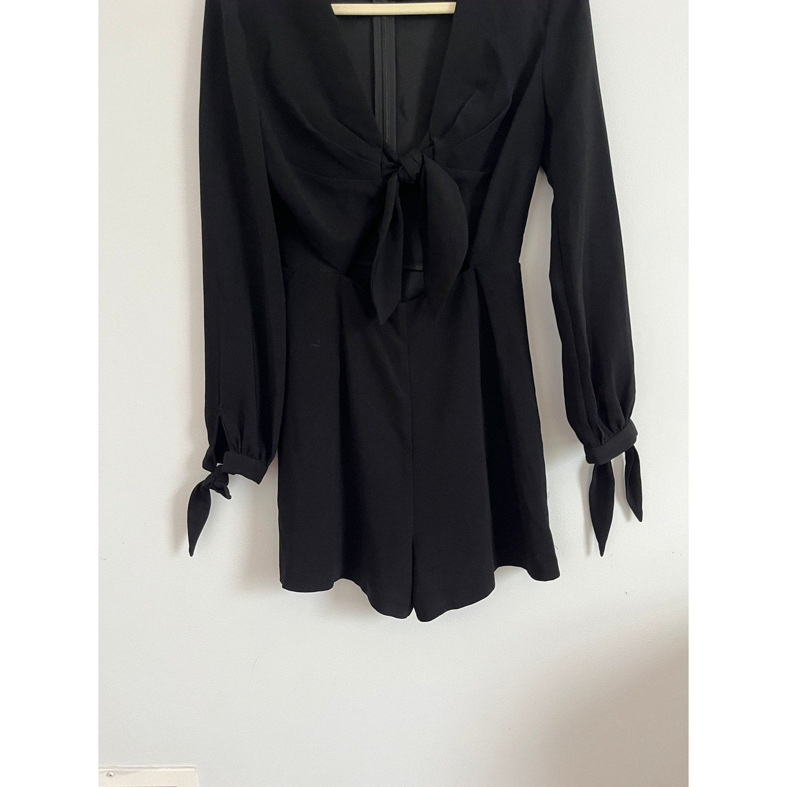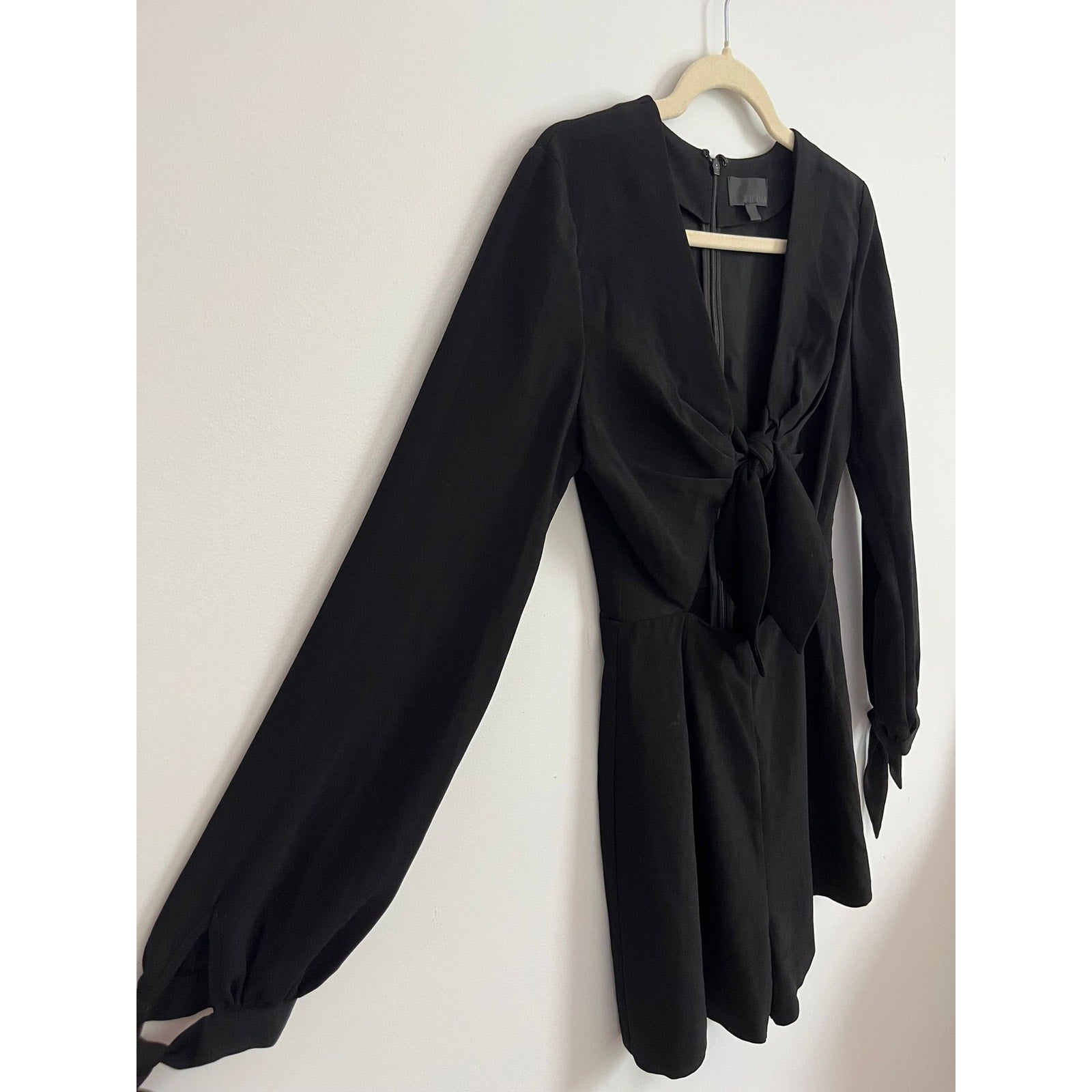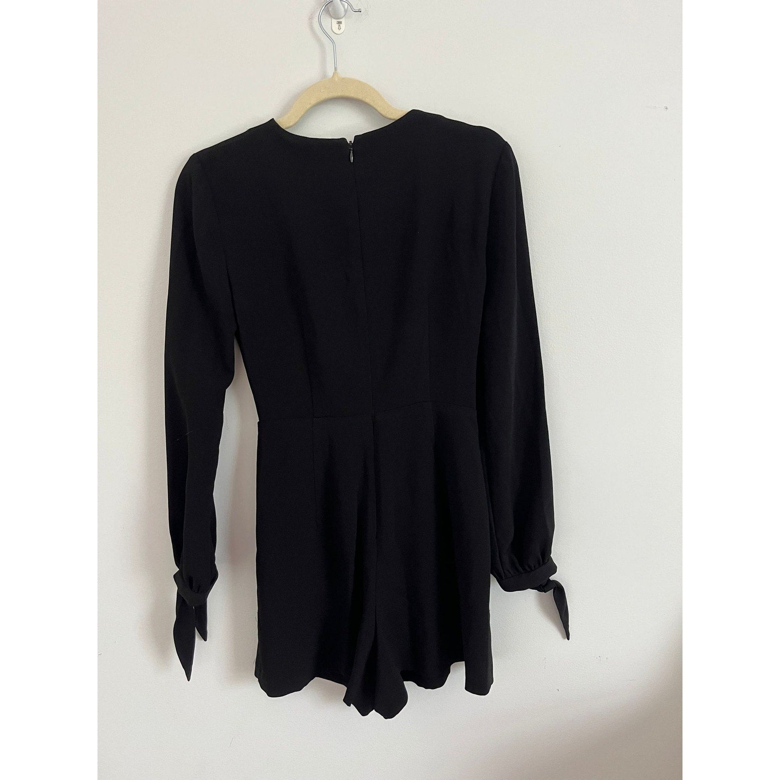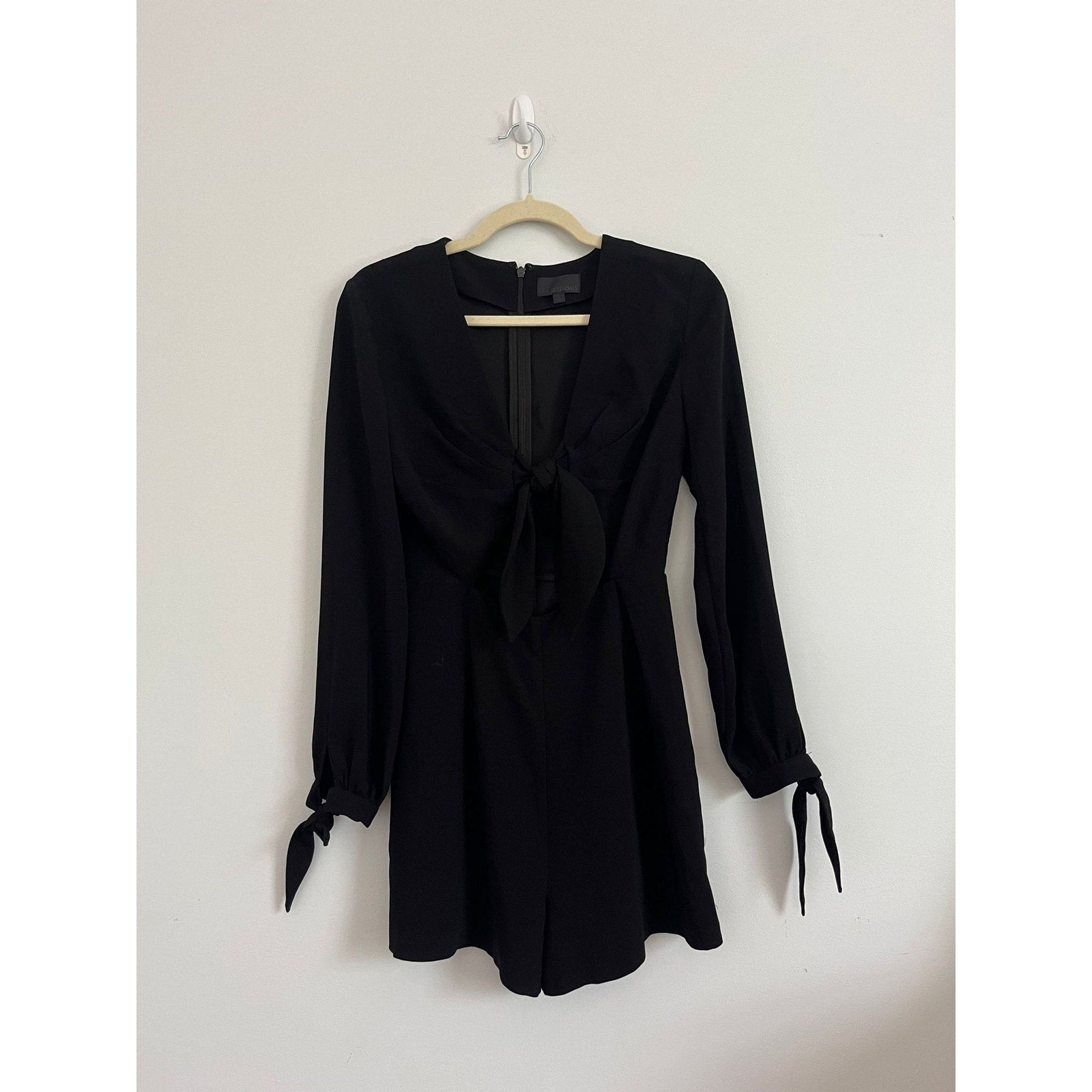 Intermix Romper Women S Black Long Sleeve Front Tie Deep V Back Zip Dressy