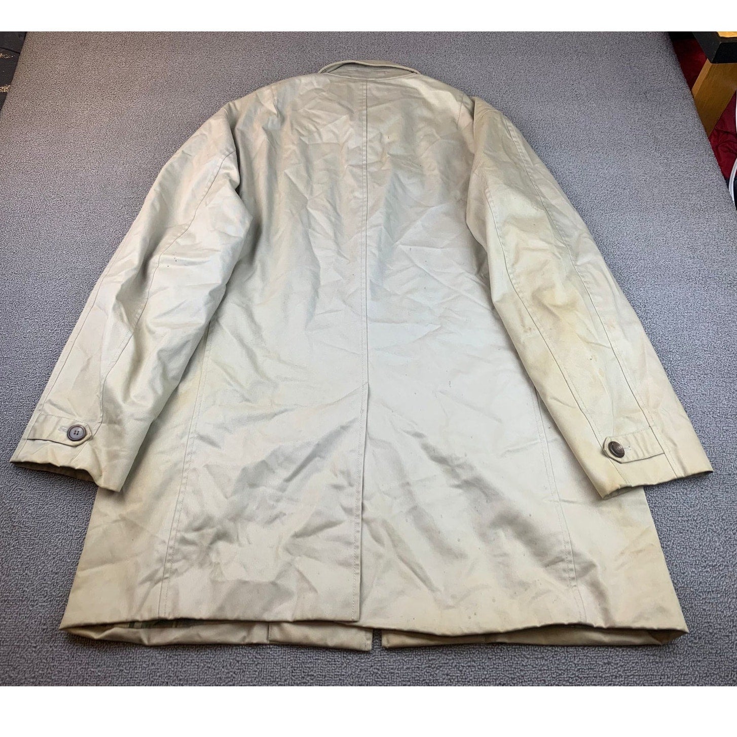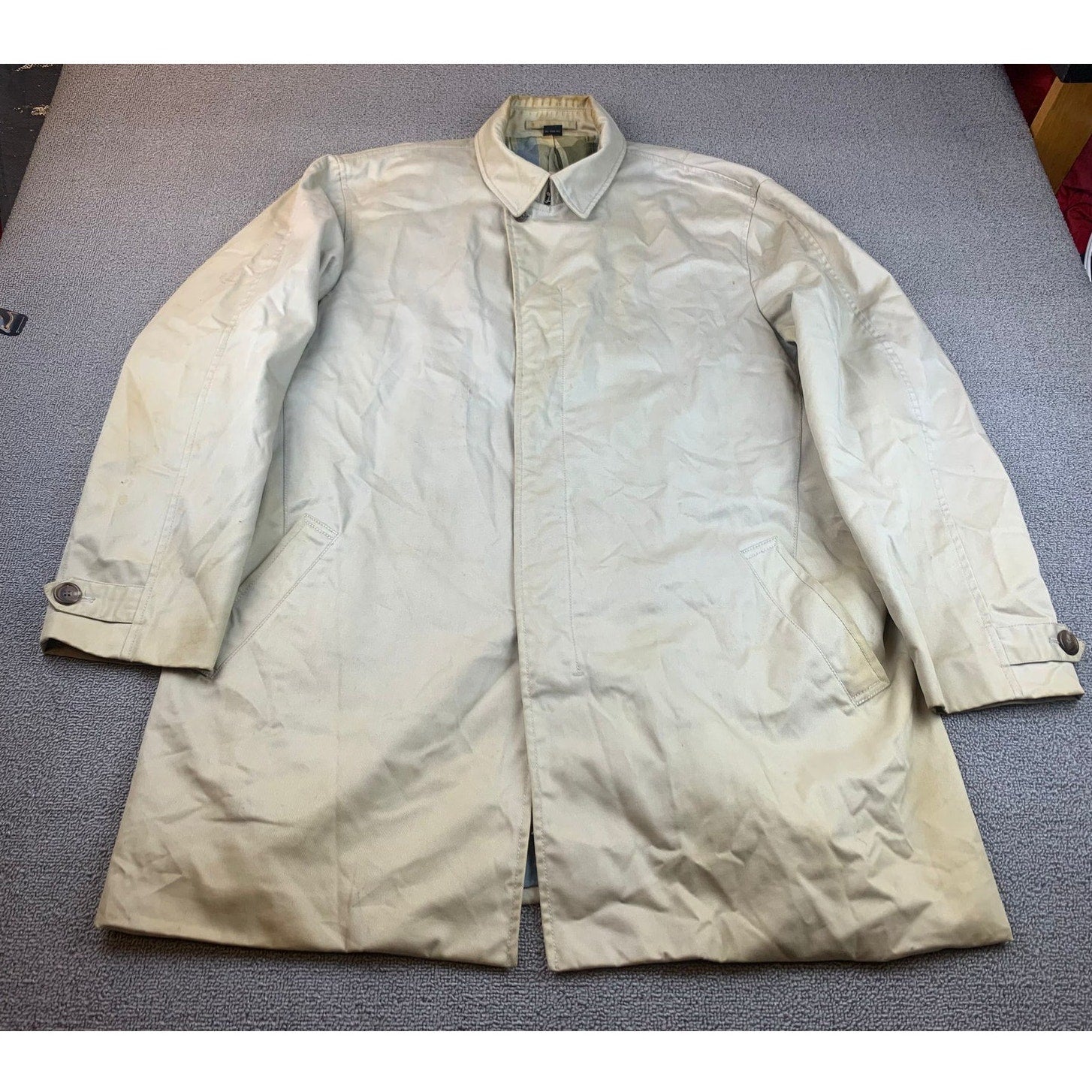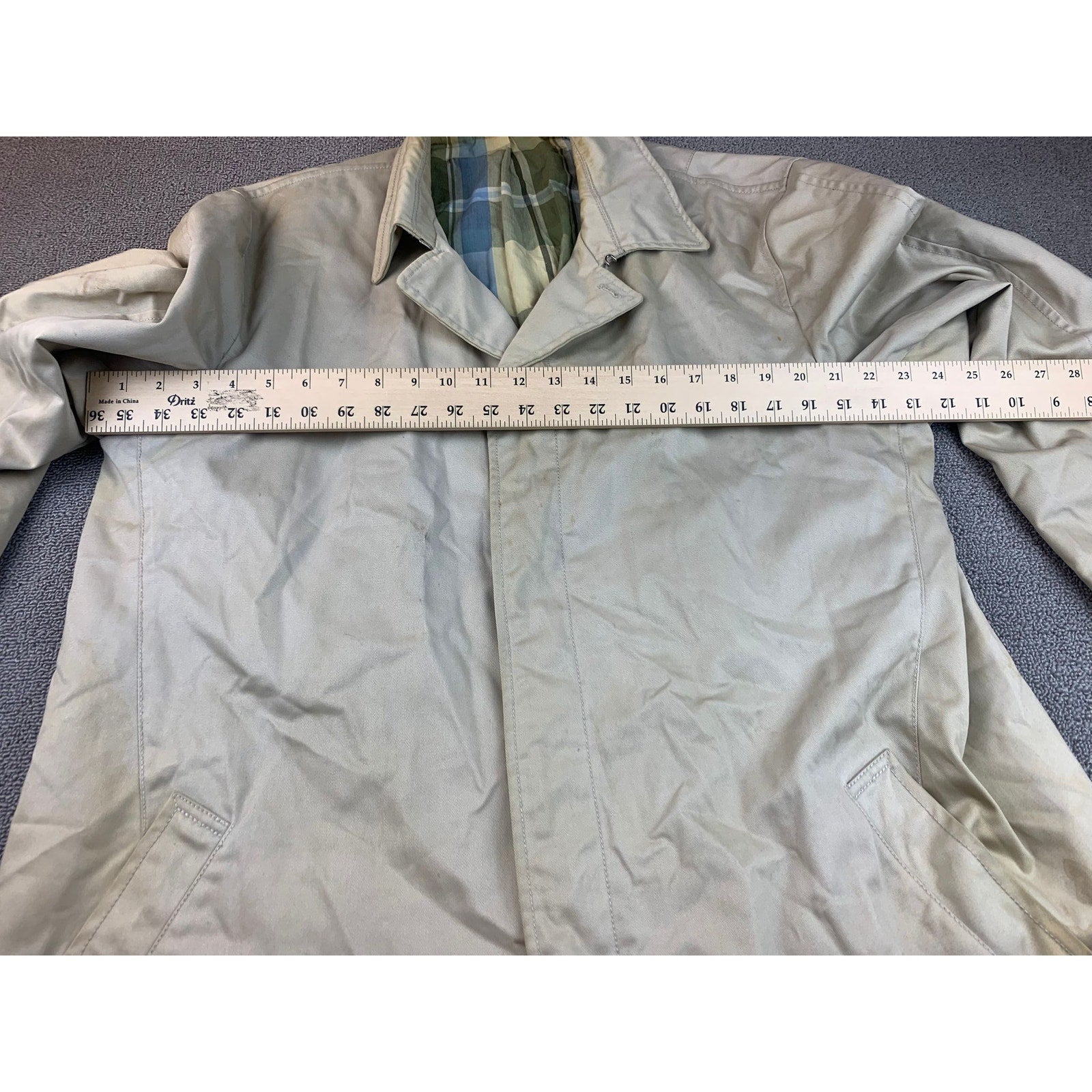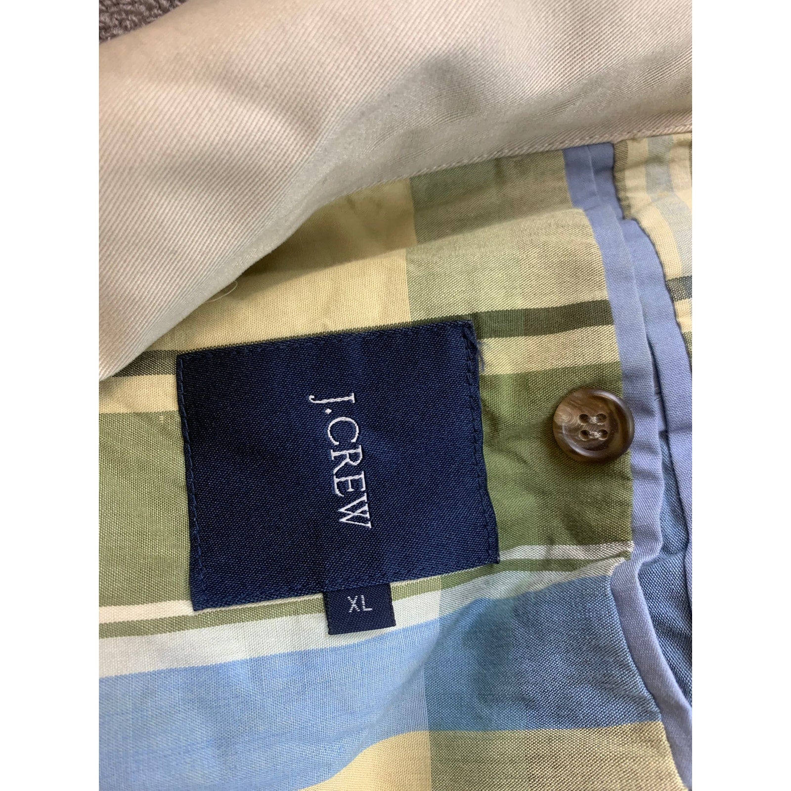 J. Crew Men's XL Beige Green Blue Full Length Checkered Plaid Lined Rain Coat