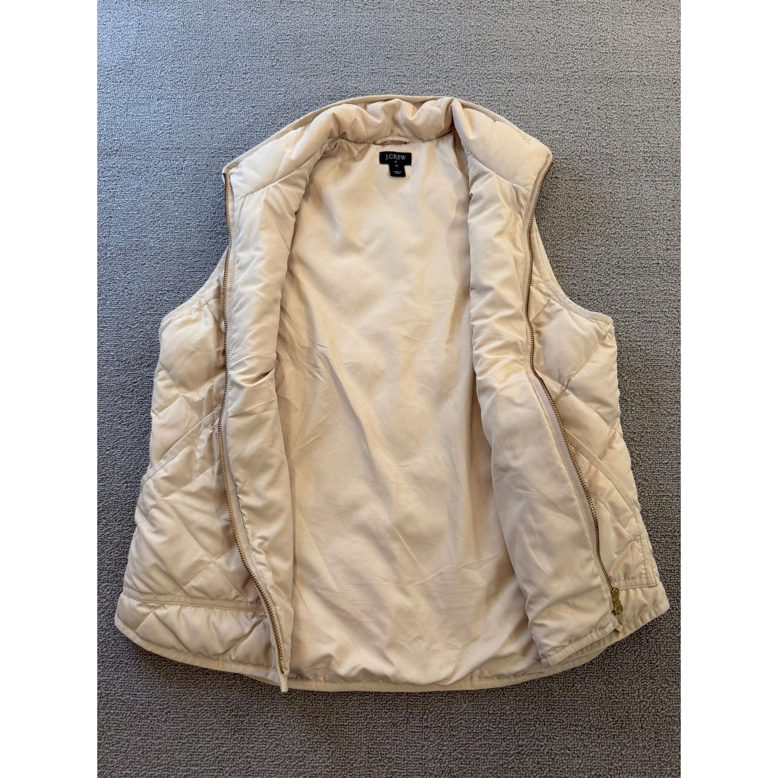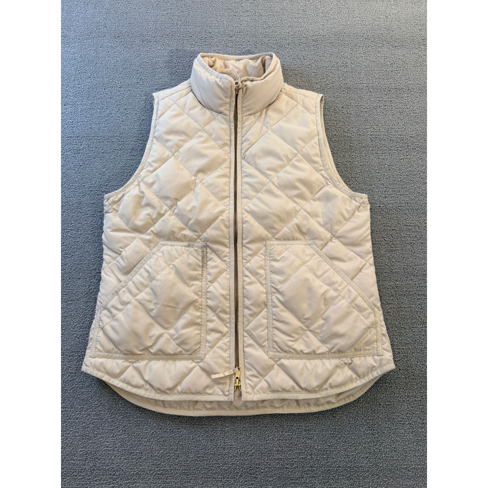 J.Crew Womens Medium Cream Quilted Full Zip Puffer Vest Jacket