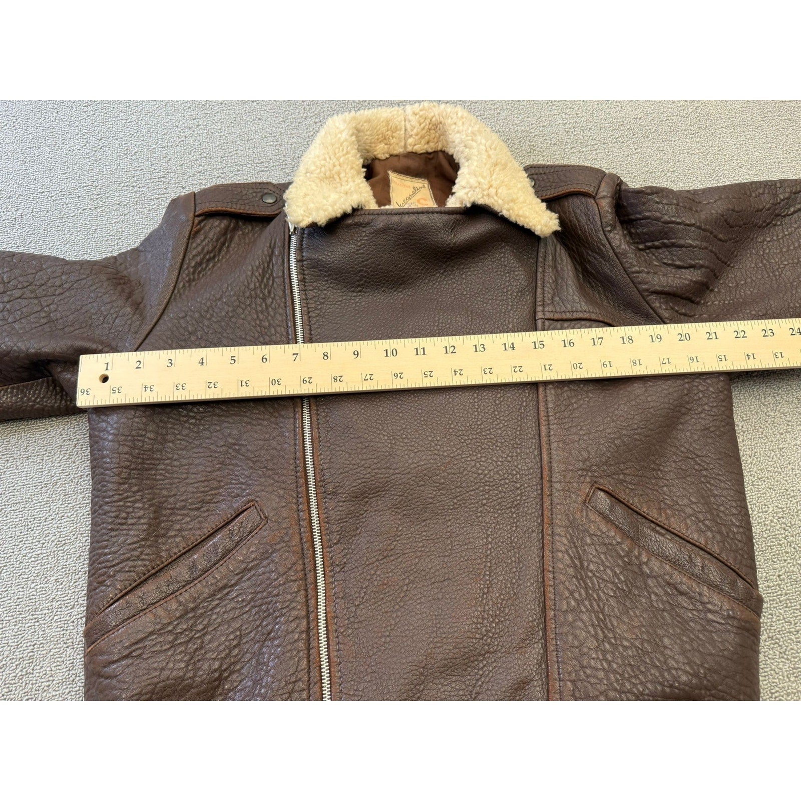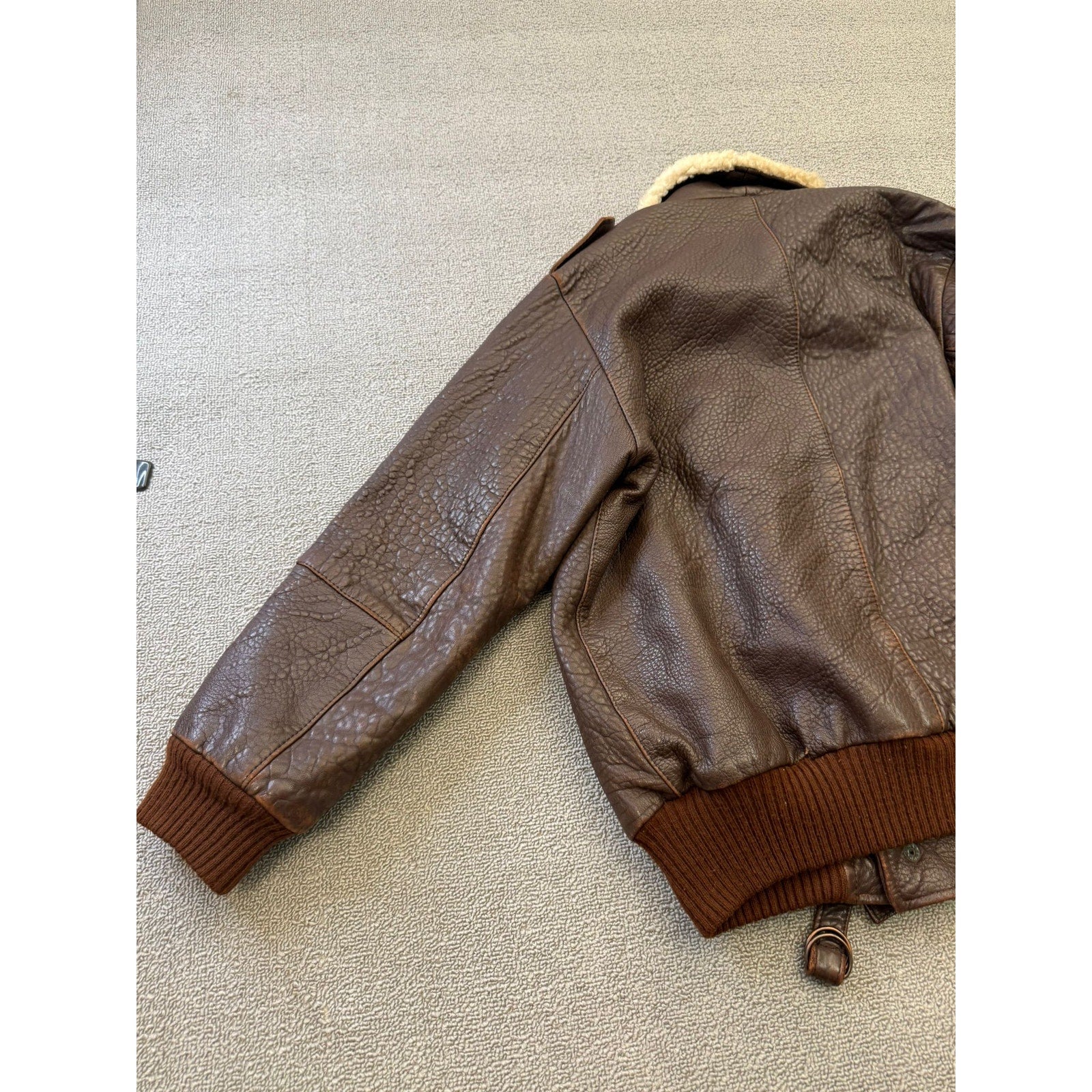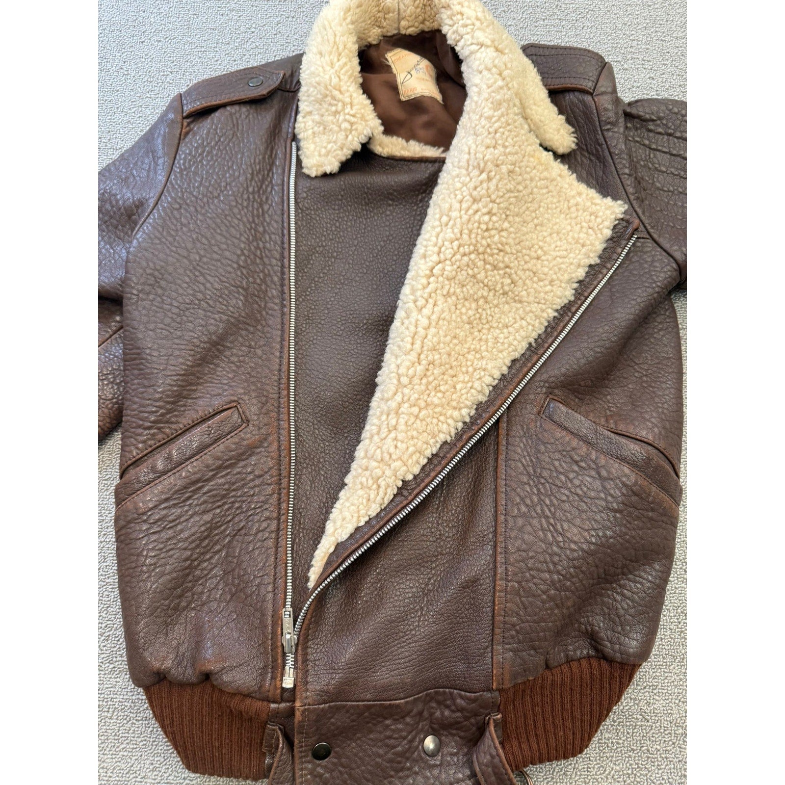 Jacqueline C Paris Leather Bomber Jacket W 36 Shearling Collar Vintage Aviator