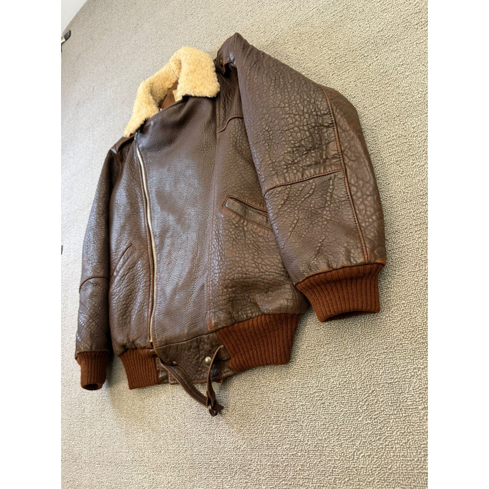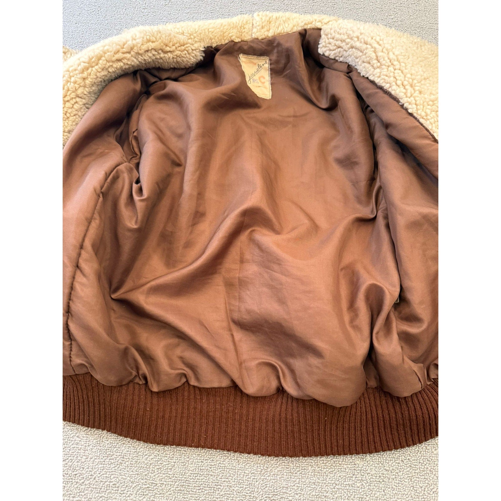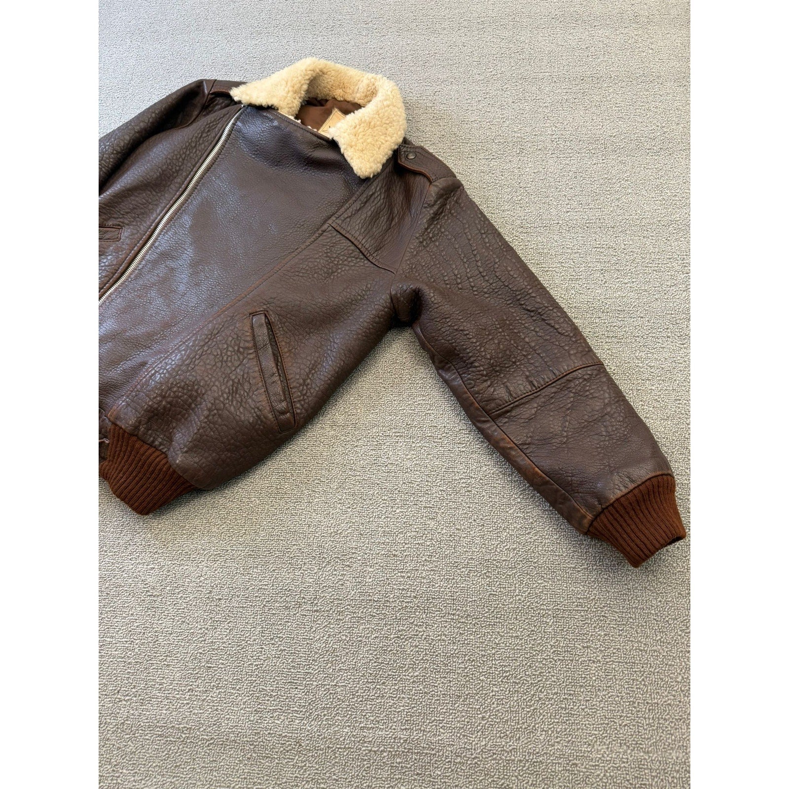Jacqueline C Paris Leather Bomber Jacket W 36 Shearling Collar Vintage Aviator